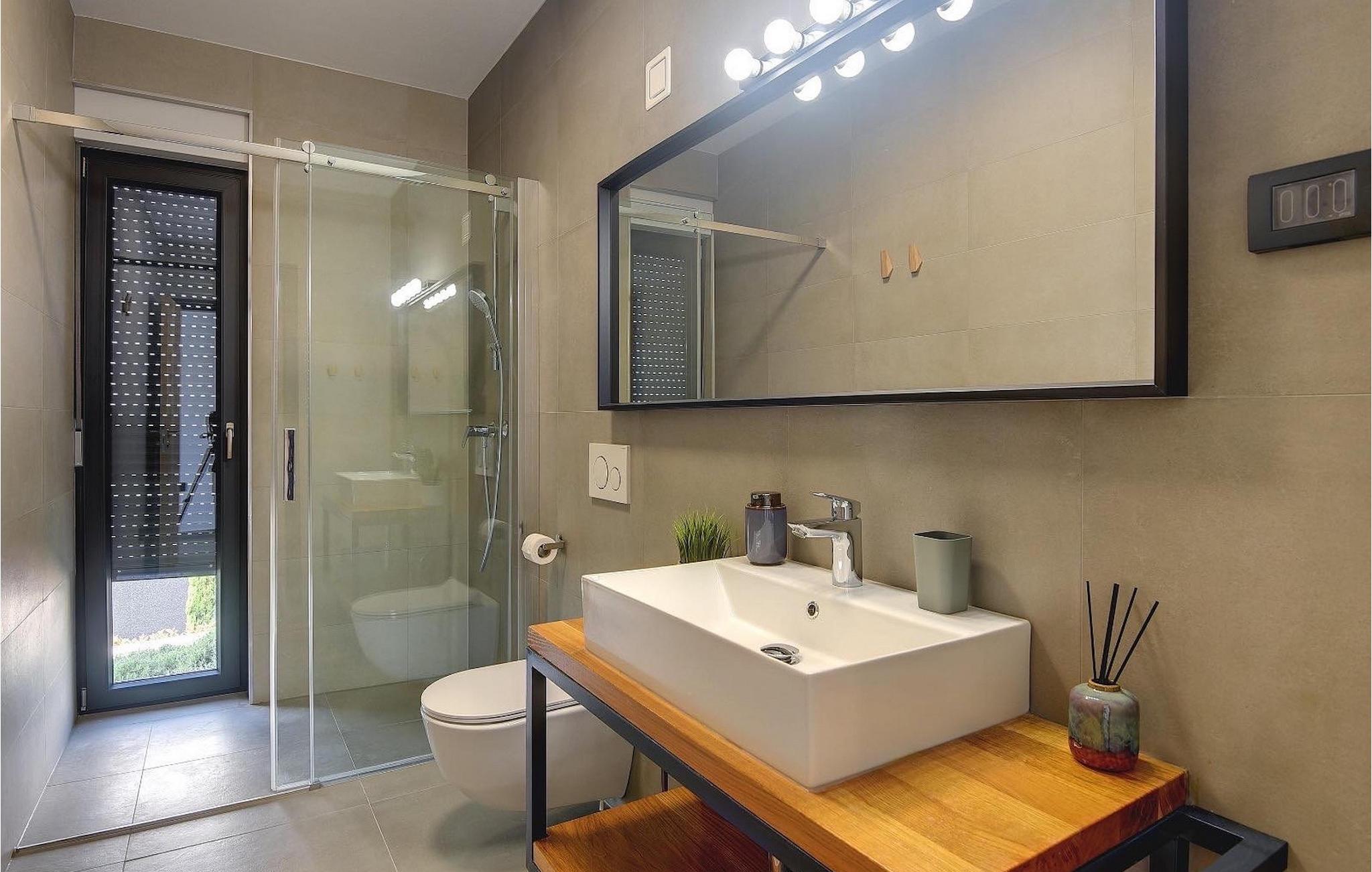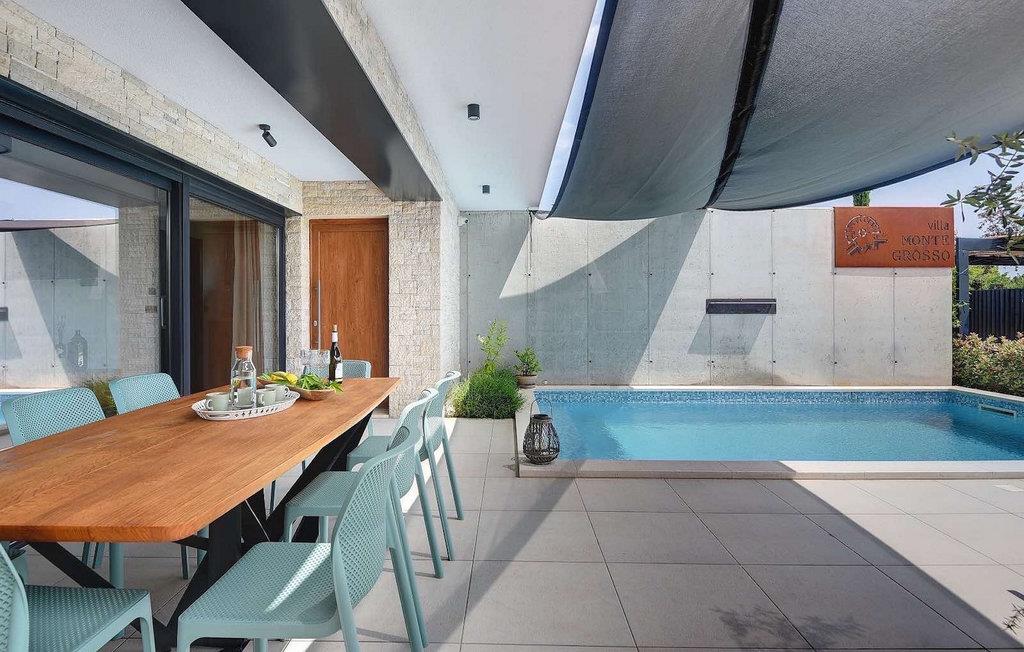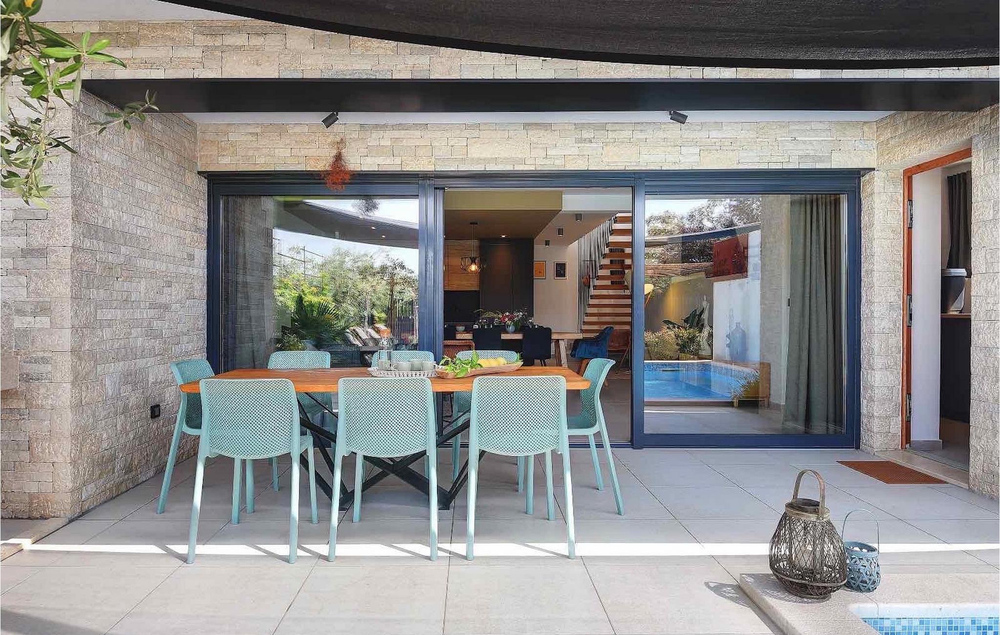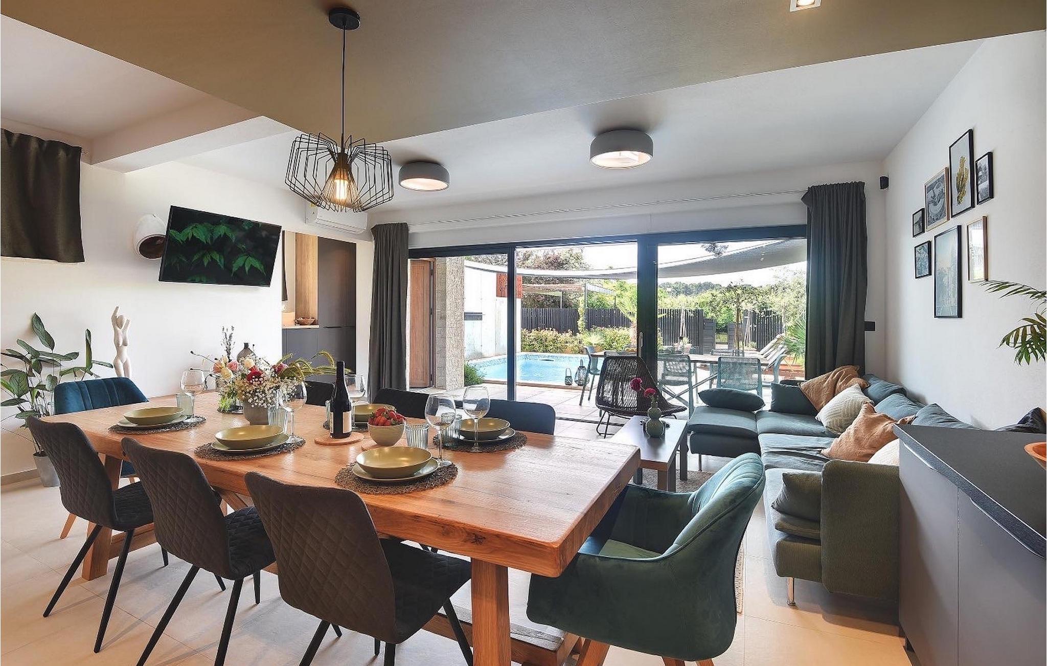 Hvis du drømmer om en afslappende familieferie i hjertet af halvøen Istrien, så er den smukke Villa Monte Grosso det rigtige valg for dig! Denne charmerende villa er beliggende nær den historiske by Pula. Interiøret kan rumme op til 6 personer. Villaen har et smukt udeområde, hvilket højdepunkt uden tvivl er den private pool. Svøm i poolen eller nyd solens stråler på liggestolene. Der er også et overdækket område med et bord, hvor du kan køle af med en forfriskende drink med udsigt over poolen. Du kan også tilberede dine måltider udenfor. Der er en kulgrill til at tilberede lækre måltider. Fra terrassen kan du direkte komme ind i villaens smagfuldt indrettede interiør, hvor du finder en lys-fyldt stue, et fuldt udstyret køkken og spiseplads. Også på første sal er der et badeværelse. Længere på anden sal er der tre komfortable soveværelser, hver med en dobbeltseng, tv, aircondition samt eget badeværelse.