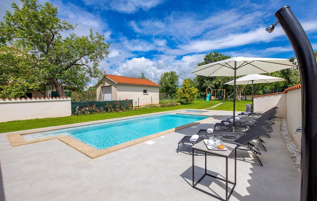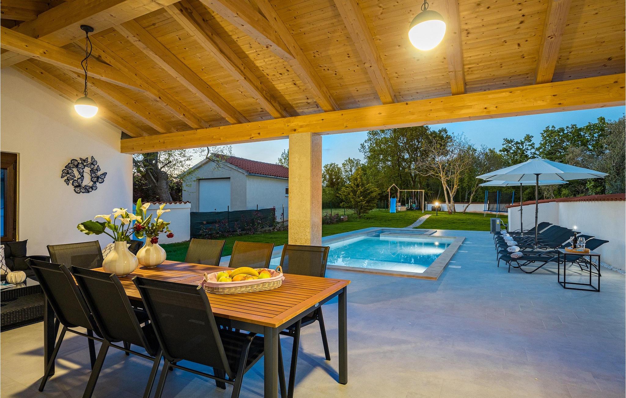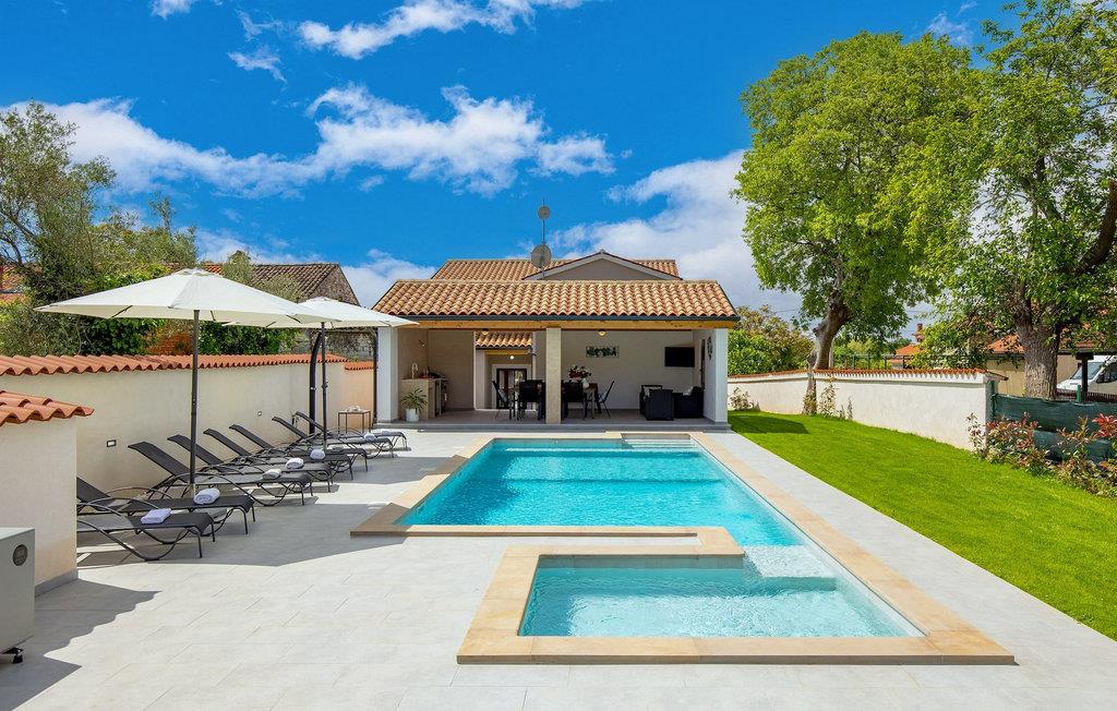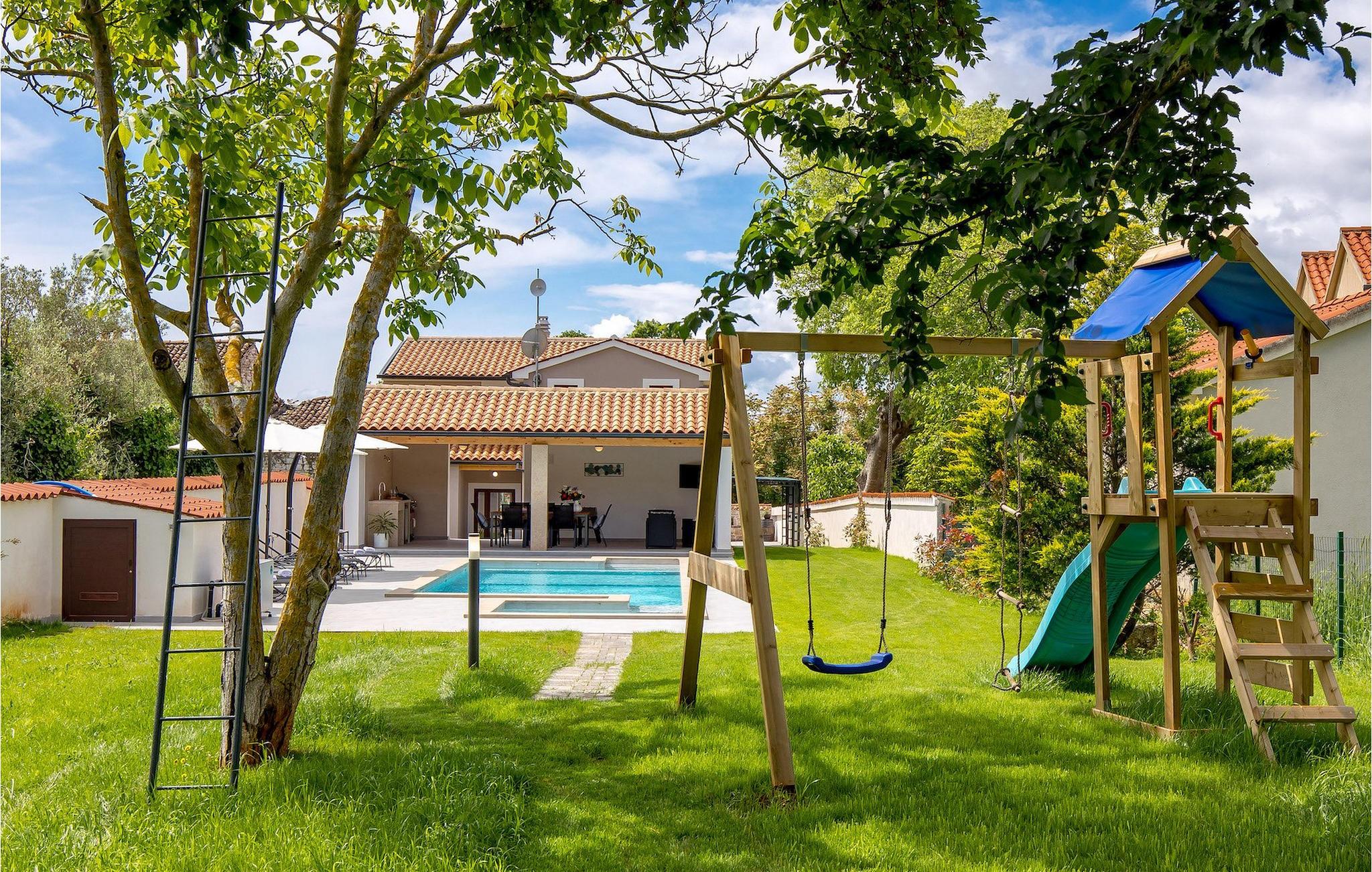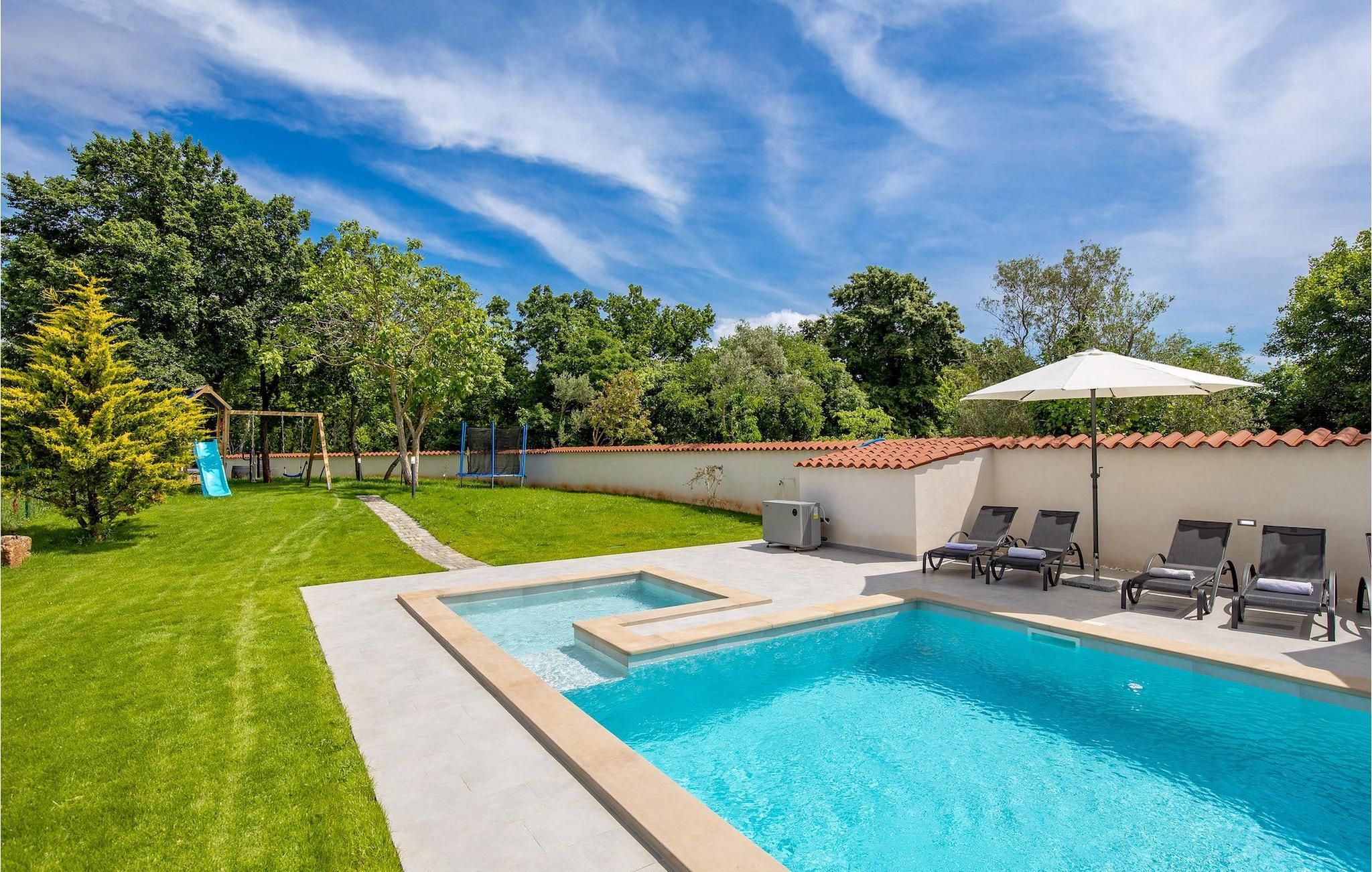 Den fantastiske Villa Nola er en ægte istrisk perle, da den er den perfekte ferievilla med opvarmet pool til en familie på 8 beliggende nær havet. Villa Nola har alt, hvad en familie eller vennegruppe kan have brug for til deres ferie. Udendørsområdet er stedet, hvor mange sjove og afslappende timer kan bruges på at lege i poolen, forfriskende på de varme sommerdage, slikke solstrålerne, mens de ligger på liggestolene, og nipper til en kold drik, mens barnet leger på legepladsen . Sportselskere kan stadig være i form under deres ferie ved at træne i sportsfaciliteterne i haven. Også hjemmelavede og traditionelle kroatiske retter kan tilberedes på gasgrillen udenfor og nyde dejlige middage i den udendørs spiseplads. Villa Nola har også en hydromassage og opvarmet pool med en børnepool med lavere dybde for sikker og ubekymret nydelse for børnene. Det indvendige område af villaen er også lovende med et moderne design med traditionelle detaljer og detaljer. Stueetagen af villaen indeholdt en stue, spisestue med et fuldt udstyret køkken, et dobbeltværelse, et badeværelse med bruser samt et separat toilet placeret i vaskerummet. Den øverste etage består af 3 ekstra soveværelser i dobbelt størrelse, hver med sit eget ensuite badeværelse, satellit-tv og aircondition. Ved at bo i Villa Nola kan du tilbringe en afslappende, men alligevel sjov ferie med dine kære, så tøv ikke med at booke denne dejlige villa i Istrien. Villa Nola ligger i en lille landsby kaldet Mali Vareški, beliggende på den østlige del af halvøen Istrien. Villaen tilbyder en fantastisk beliggenhed for gæster, der nyder at udforske naturen, fantastiske strande og dejlige istriske byer. Inden for en kort køretur når du det populære turisthotspot Pula, berømt for sine historiske monumenter, du kan køre til kysten og skabe fantastiske minder ved Adriaterhavet og også holde dig i form, mens du er på ferie med mange cykelstier i nærheden. Glem ikke at nyde det traditionelle istriske køkken ved at besøge de søde taverner i de nærliggende steder og smage det, Istrien er mest berømt for – olivenolie, trøfler, fuži eller istrisk pršut. Der er mange muligheder for virkelig at føle Istriens charme ved at bo i Villa Nola, og dens beliggenhed kan tilbyde dig så mange fantastiske steder at besøge og ting at udforske. Temperaturen i den opvarmede swimmingpool er afhængig af eksterne faktorer, herunder vejrforhold, og som sådan kan temperaturen på vandet ikke garanteres.