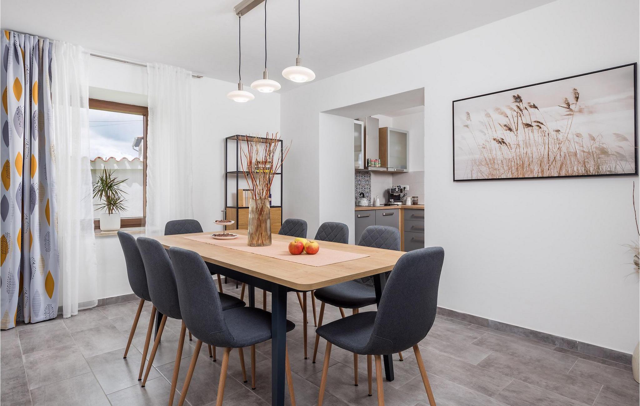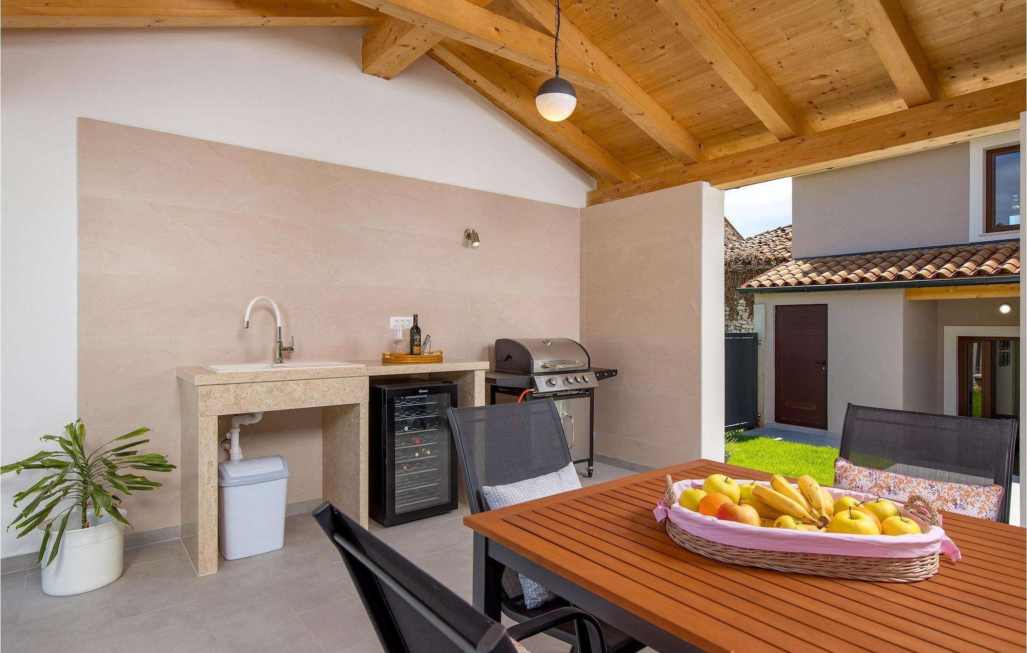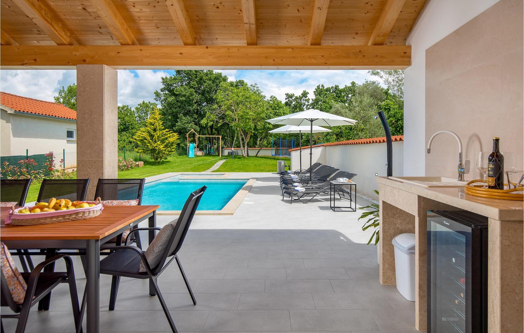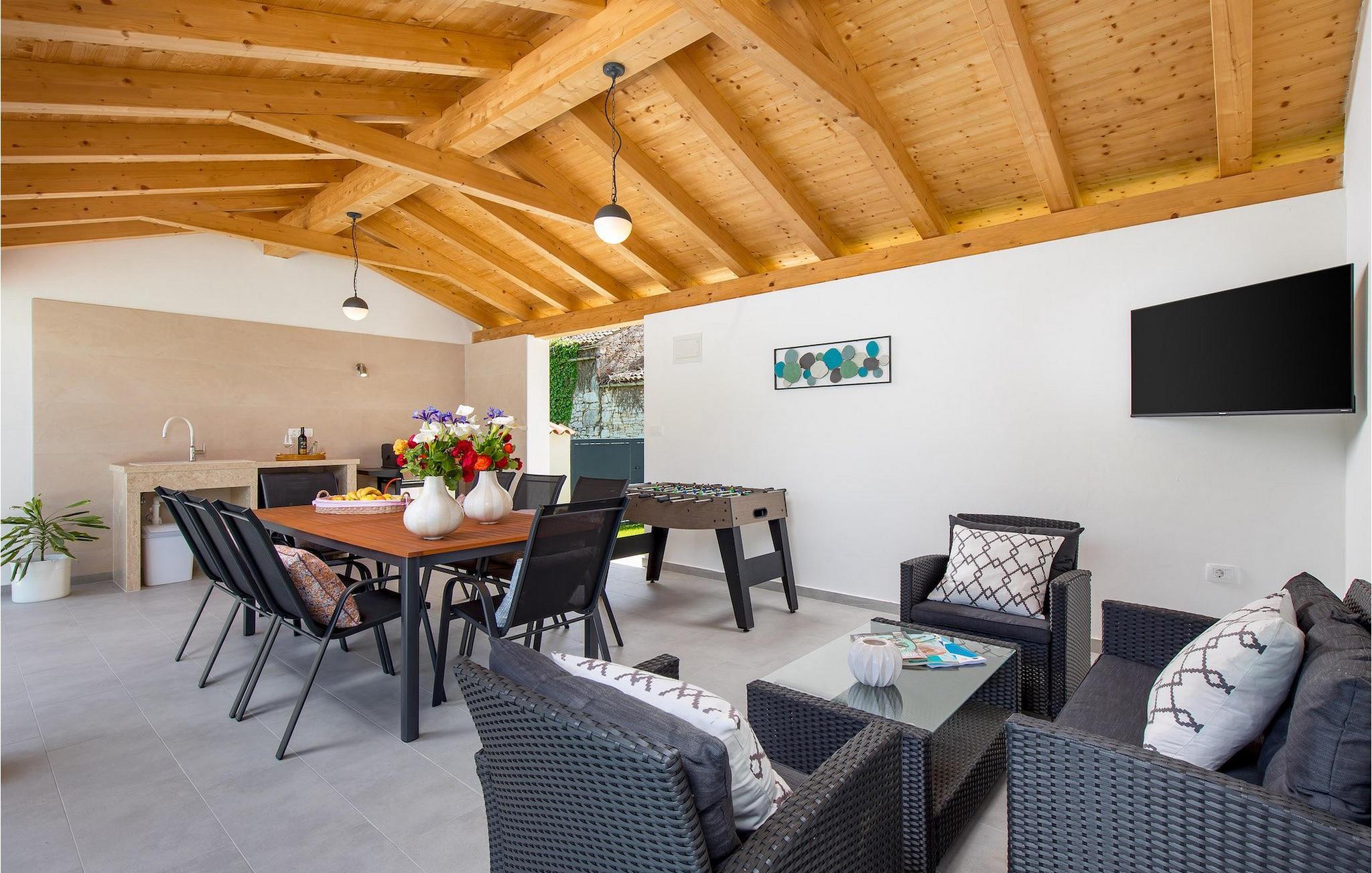 Den fantastiske Villa Nola er en ægte istrisk perle, da den er den perfekte ferievilla med opvarmet pool til en familie på 8 beliggende nær havet. Villa Nola har alt, hvad en familie eller vennegruppe kan have brug for til deres ferie. Udendørsområdet er stedet, hvor mange sjove og afslappende timer kan bruges på at lege i poolen, forfriskende på de varme sommerdage, slikke solstrålerne, mens de ligger på liggestolene, og nipper til en kold drik, mens barnet leger på legepladsen . Sportselskere kan stadig være i form under deres ferie ved at træne i sportsfaciliteterne i haven. Også hjemmelavede og traditionelle kroatiske retter kan tilberedes på gasgrillen udenfor og nyde dejlige middage i den udendørs spiseplads. Villa Nola har også en hydromassage og opvarmet pool med en børnepool med lavere dybde for sikker og ubekymret nydelse for børnene. Det indvendige område af villaen er også lovende med et moderne design med traditionelle detaljer og detaljer. Stueetagen af villaen indeholdt en stue, spisestue med et fuldt udstyret køkken, et dobbeltværelse, et badeværelse med bruser samt et separat toilet placeret i vaskerummet. Den øverste etage består af 3 ekstra soveværelser i dobbelt størrelse, hver med sit eget ensuite badeværelse, satellit-tv og aircondition. Ved at bo i Villa Nola kan du tilbringe en afslappende, men alligevel sjov ferie med dine kære, så tøv ikke med at booke denne dejlige villa i Istrien. Villa Nola ligger i en lille landsby kaldet Mali Vareški, beliggende på den østlige del af halvøen Istrien. Villaen tilbyder en fantastisk beliggenhed for gæster, der nyder at udforske naturen, fantastiske strande og dejlige istriske byer. Inden for en kort køretur når du det populære turisthotspot Pula, berømt for sine historiske monumenter, du kan køre til kysten og skabe fantastiske minder ved Adriaterhavet og også holde dig i form, mens du er på ferie med mange cykelstier i nærheden. Glem ikke at nyde det traditionelle istriske køkken ved at besøge de søde taverner i de nærliggende steder og smage det, Istrien er mest berømt for – olivenolie, trøfler, fuži eller istrisk pršut. Der er mange muligheder for virkelig at føle Istriens charme ved at bo i Villa Nola, og dens beliggenhed kan tilbyde dig så mange fantastiske steder at besøge og ting at udforske. Temperaturen i den opvarmede swimmingpool er afhængig af eksterne faktorer, herunder vejrforhold, og som sådan kan temperaturen på vandet ikke garanteres.