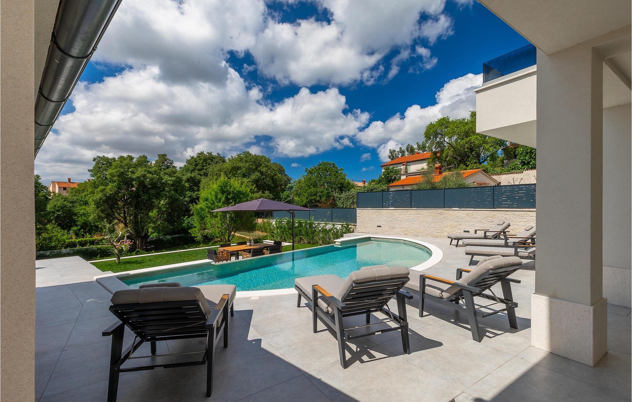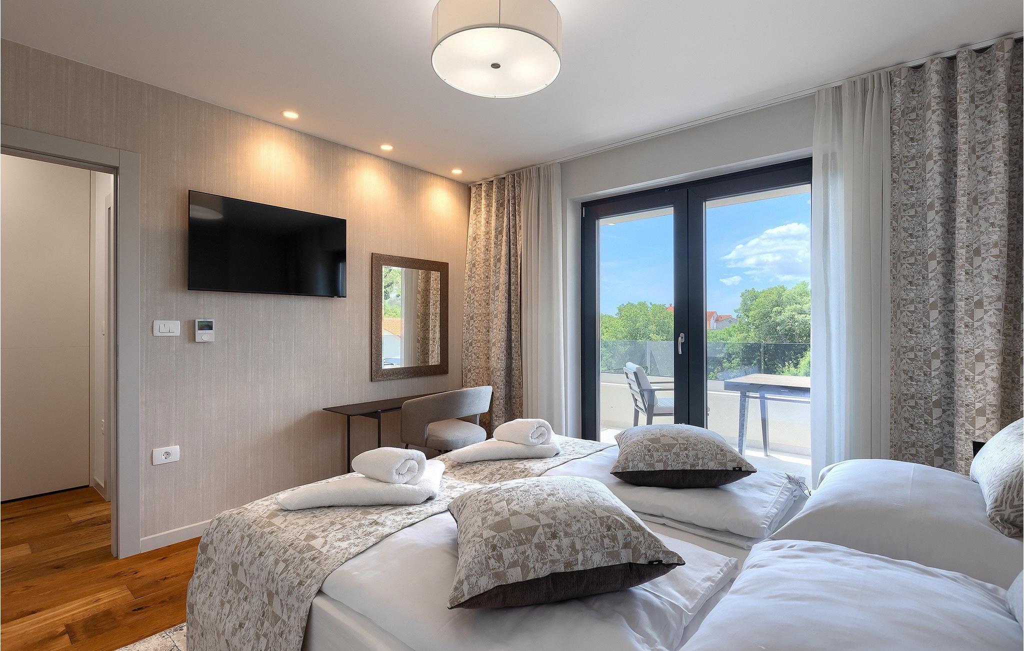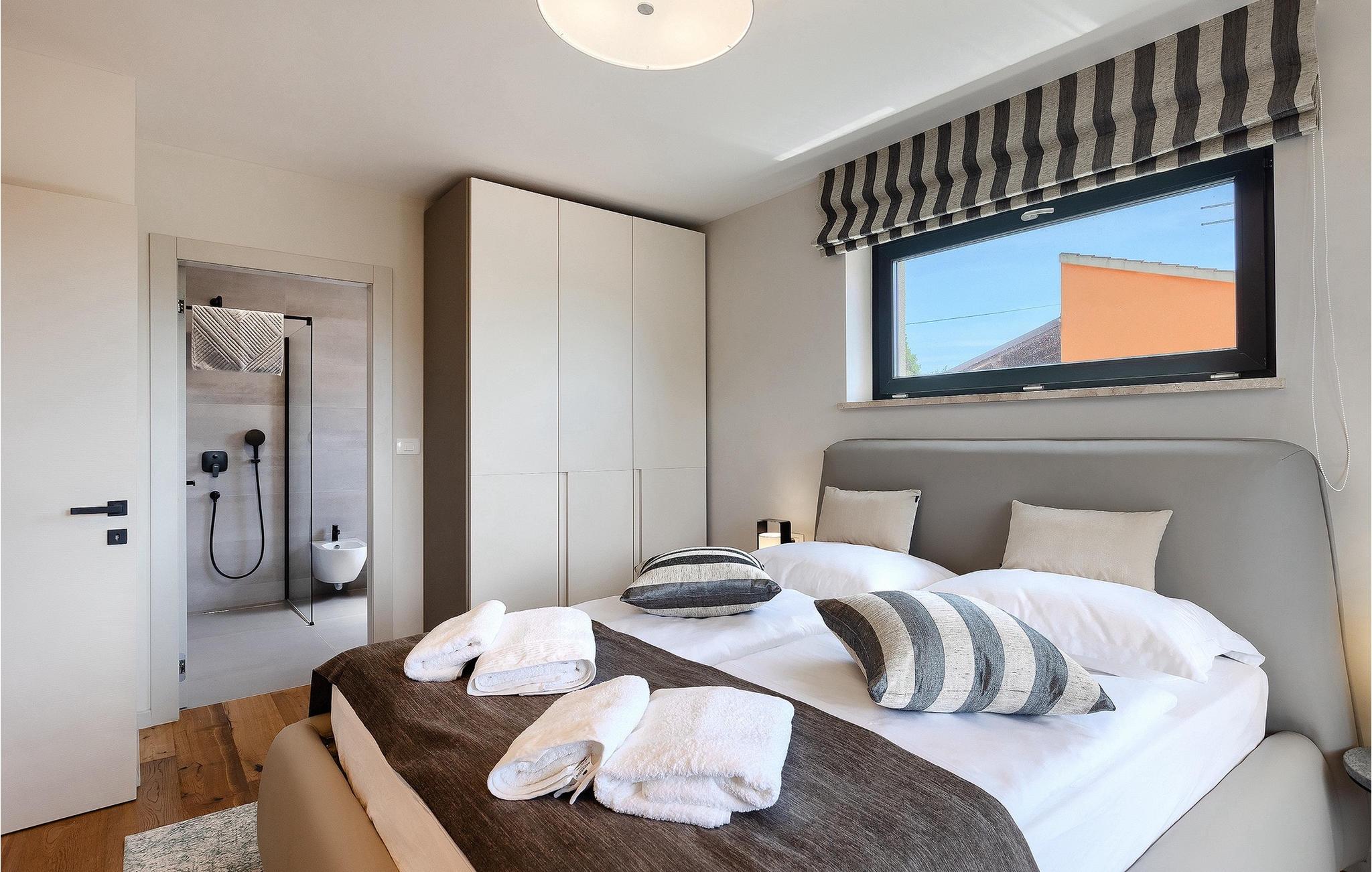Villa Cascada er beliggende i den lille by Muntic i udkanten af Pula og kun 5 km fra den internationale lufthavn, hvilket giver dig nem adgang til byen, samtidig med at du tilbyder en multikulturel oplevelse lige ved hånden. Beriget med et moderne interiør og eksteriør og et strejf af istrisk rusticitet, tilbyder villaen dig en atmosfære, der vil efterlade dig forpustet! Det blev bygget i begyndelsen af 2023 og er nu klar til at åbne dørene for gæster, der søger efter en luksuriøs og fredelig ferie med venner eller familie. Du bliver komfortabelt indkvarteret i 3 dobbeltværelser (hvoraf det ene har to enkeltsenge, der kan sættes sammen, hvis det ønskes). Hvert soveværelse har eget badeværelse med bruser. Gæsterne er også udstyret med en vaskemaskine, tørretumbler og strygejern. I den rummelige stue er der en tre-personers sofa med en queen-size seng, LED-tv og moderne detaljer. Det er selvfølgelig vigtigt at nævne, at køkkenet har en imponerende udsigt over det grønne gennem de skydeglasvægge! Køkkenet er fuldt udstyret, med accenter af minimalisme, som gør det lettere at tilberede en let frokost samt en rig middag, som faktisk er en tradition i Istrien. Foran villaen er der en smuk swimmingpool også beriget med grønne områder, hvor du kan finde kølende skygge i sommervarmen eller nyde den istriske sol på liggestolene ved poolen. Ud over swimmingpoolen tilbyder denne villa et afslappende wellnessområde og udendørs jacuzzi. Under palmens skygge vil du helt sikkert blive henrykt over legepladsen, der er udstyret med rutsjebane og gynger samt en gasgrill. Villa Cascada tilbyder dig foryngelse for både krop og sjæl, mens den fortryllende landsby Muntic vil glæde dig med sin karakteristiske istriske stemning. Villa Cascada ligger i landsbyen Muntic i kommunen LIžnjan, i den sydøstlige del af Istrien. Denne farverige landsby har en rig historie, der går tilbage til romertiden. Den blev første gang nævnt i det 14. århundrede, og i det 16. århundrede blev den nuværende Sankt Hieronymus kirke bygget i gotisk stil. Lær den charmerende lokale befolkning og deres hjemmelavede produkter at kende, som du kan bruge til at tilberede istriske retter. Traditionelle sangere og musikere fra Muntic vil underholde dig. Besøg turistcentrene Medulin og Pula. Medulin er en gammel fiskerby og et moderne turistcenter. Udforsk dens sandstrande på Istriens sydlige kyst og smag områdets traditionelle køkken i restauranter og taverner. For eventyrere er der en adrenalinpark, mens historieelskere kan besøge den arkæologiske park Vižula, Medulins historiepark. Sæt sejl mod øerne i Medulin-øgruppen Ceja, Levan eller Bodulaš. Udforsk også den charmerende landsby Marcane. I umiddelbar nærhed af Marcana ligger Duga Uvala, hvor du kan nyde den 300 meter lange strand. Du kan udforske undergrunden af Marcana Riviera i Ljubics hule, Golubinkas hule eller Perešins hule. Pula er bestemt en destination, du ikke må gå glip af. I den største by i Istrien kan du se Pula Arena, Augustus-templet, Den Gyldne Port og mange andre kulturelle og historiske monumenter. Nyd de smukke strande og den fantastiske natur.