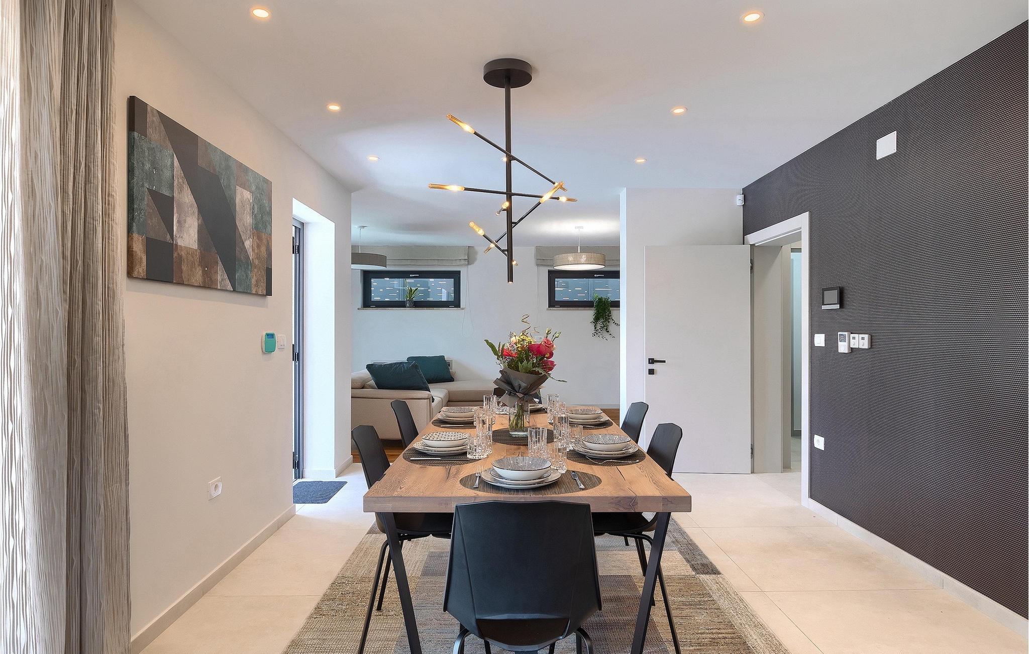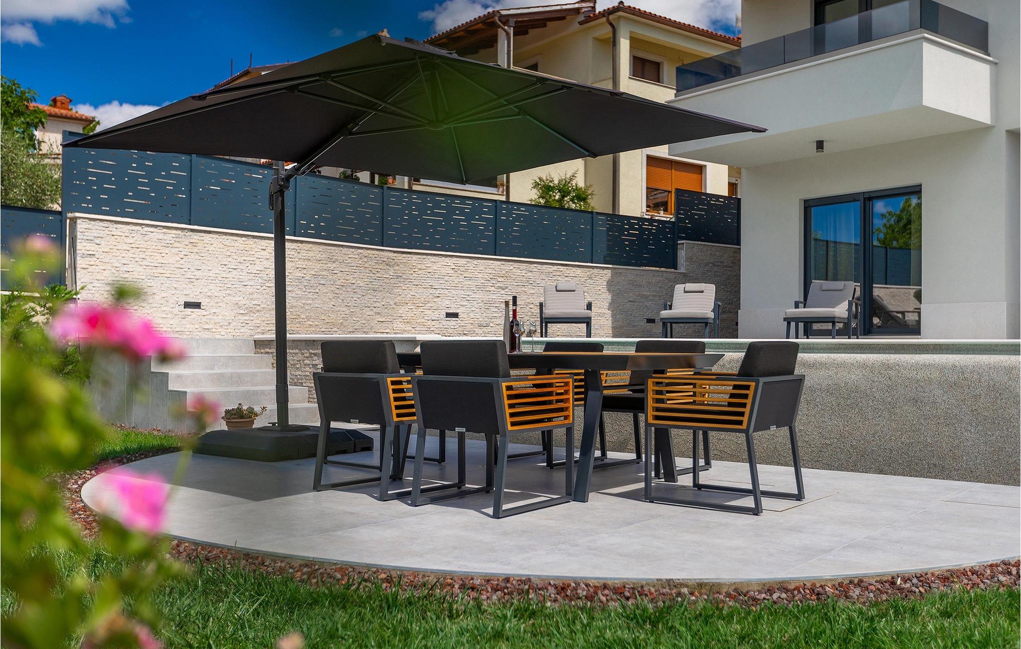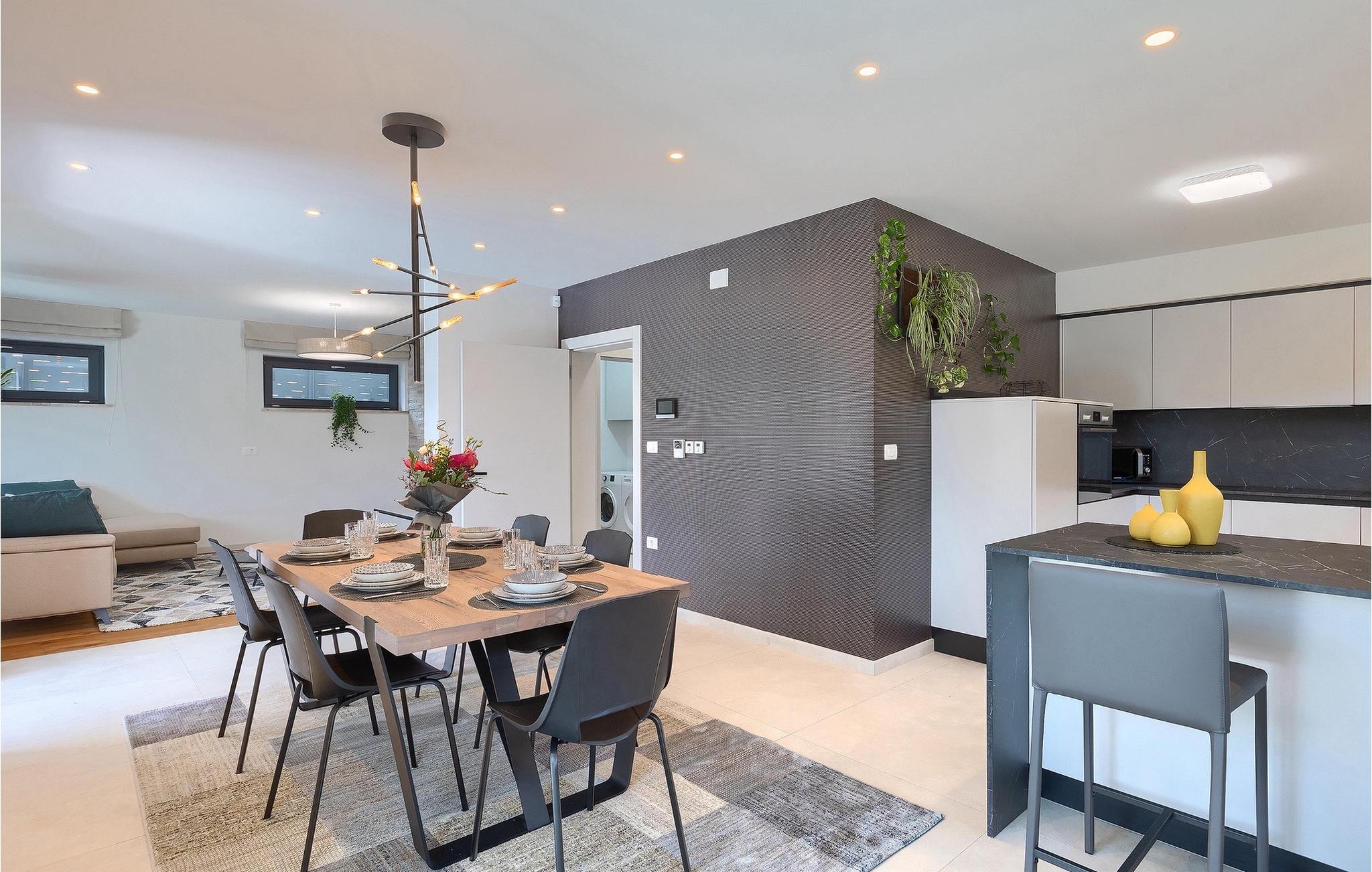 Villa Cascada er beliggende i den lille by Muntic i udkanten af Pula og kun 5 km fra den internationale lufthavn, hvilket giver dig nem adgang til byen, samtidig med at du tilbyder en multikulturel oplevelse lige ved hånden. Beriget med et moderne interiør og eksteriør og et strejf af istrisk rusticitet, tilbyder villaen dig en atmosfære, der vil efterlade dig forpustet! Det blev bygget i begyndelsen af 2023 og er nu klar til at åbne dørene for gæster, der søger efter en luksuriøs og fredelig ferie med venner eller familie. Du bliver komfortabelt indkvarteret i 3 dobbeltværelser (hvoraf det ene har to enkeltsenge, der kan sættes sammen, hvis det ønskes). Hvert soveværelse har eget badeværelse med bruser. Gæsterne er også udstyret med en vaskemaskine, tørretumbler og strygejern. I den rummelige stue er der en tre-personers sofa med en queen-size seng, LED-tv og moderne detaljer. Det er selvfølgelig vigtigt at nævne, at køkkenet har en imponerende udsigt over det grønne gennem de skydeglasvægge! Køkkenet er fuldt udstyret, med accenter af minimalisme, som gør det lettere at tilberede en let frokost samt en rig middag, som faktisk er en tradition i Istrien. Foran villaen er der en smuk swimmingpool også beriget med grønne områder, hvor du kan finde kølende skygge i sommervarmen eller nyde den istriske sol på liggestolene ved poolen. Ud over swimmingpoolen tilbyder denne villa et afslappende wellnessområde og udendørs jacuzzi. Under palmens skygge vil du helt sikkert blive henrykt over legepladsen, der er udstyret med rutsjebane og gynger samt en gasgrill. Villa Cascada tilbyder dig foryngelse for både krop og sjæl, mens den fortryllende landsby Muntic vil glæde dig med sin karakteristiske istriske stemning. Villa Cascada ligger i landsbyen Muntic i kommunen LIžnjan, i den sydøstlige del af Istrien. Denne farverige landsby har en rig historie, der går tilbage til romertiden. Den blev første gang nævnt i det 14. århundrede, og i det 16. århundrede blev den nuværende Sankt Hieronymus kirke bygget i gotisk stil. Lær den charmerende lokale befolkning og deres hjemmelavede produkter at kende, som du kan bruge til at tilberede istriske retter. Traditionelle sangere og musikere fra Muntic vil underholde dig. Besøg turistcentrene Medulin og Pula. Medulin er en gammel fiskerby og et moderne turistcenter. Udforsk dens sandstrande på Istriens sydlige kyst og smag områdets traditionelle køkken i restauranter og taverner. For eventyrere er der en adrenalinpark, mens historieelskere kan besøge den arkæologiske park Vižula, Medulins historiepark. Sæt sejl mod øerne i Medulin-øgruppen Ceja, Levan eller Bodulaš. Udforsk også den charmerende landsby Marcane. I umiddelbar nærhed af Marcana ligger Duga Uvala, hvor du kan nyde den 300 meter lange strand. Du kan udforske undergrunden af Marcana Riviera i Ljubics hule, Golubinkas hule eller Perešins hule. Pula er bestemt en destination, du ikke må gå glip af. I den største by i Istrien kan du se Pula Arena, Augustus-templet, Den Gyldne Port og mange andre kulturelle og historiske monumenter. Nyd de smukke strande og den fantastiske natur.