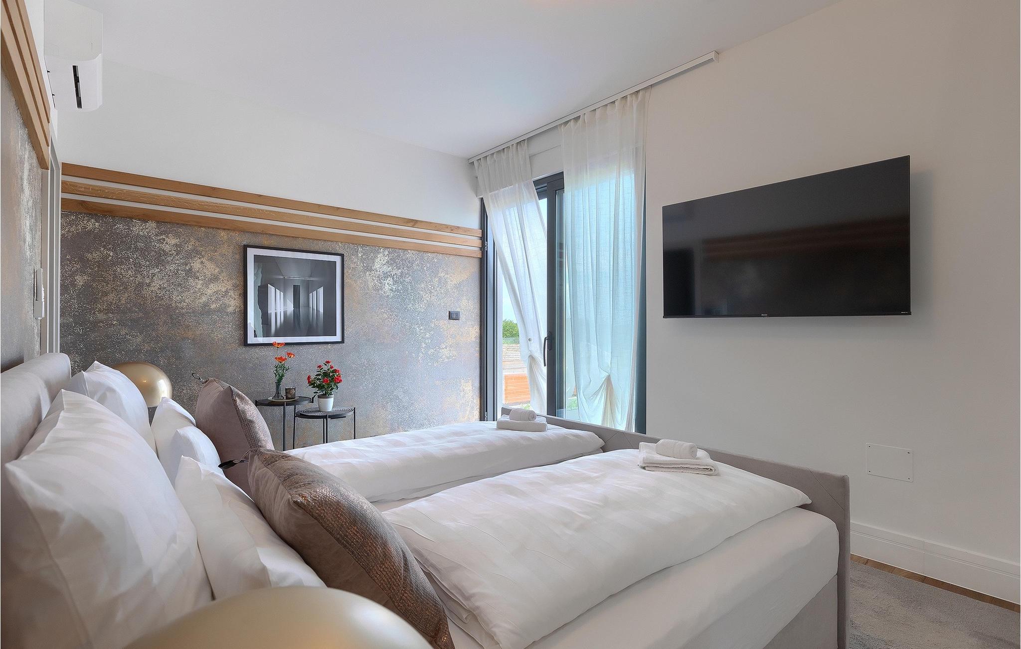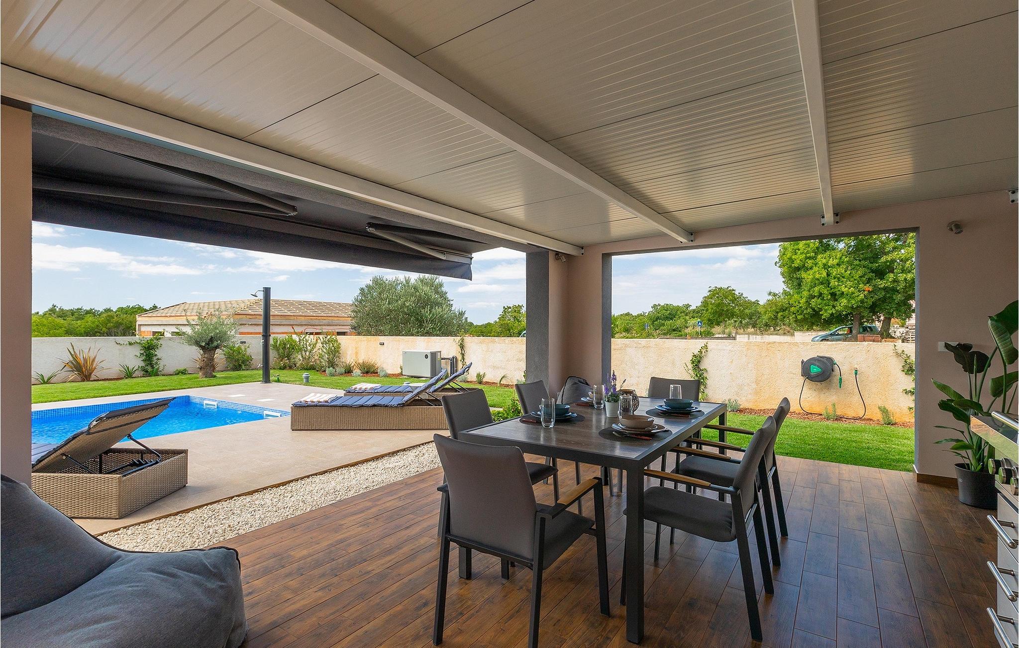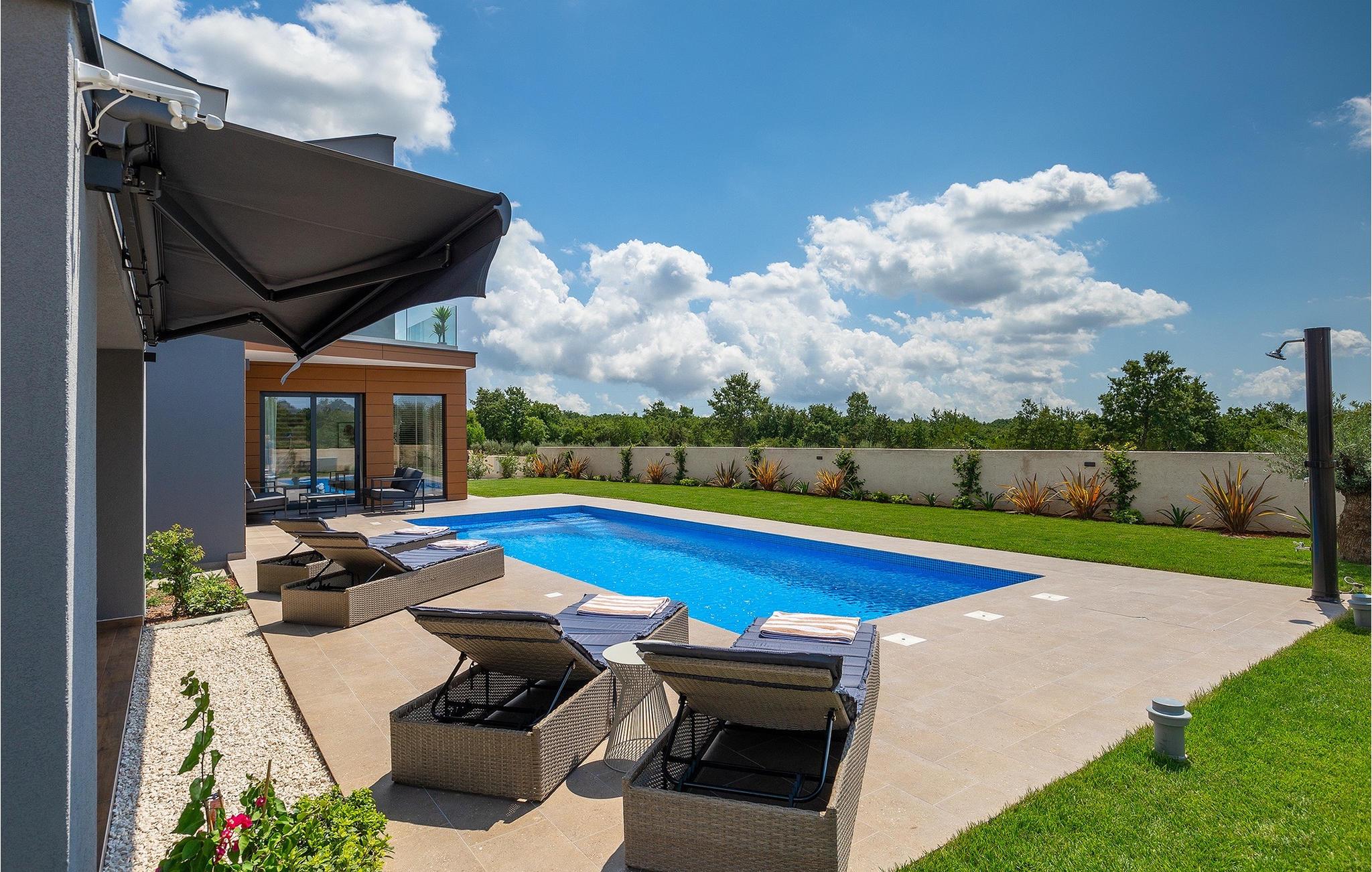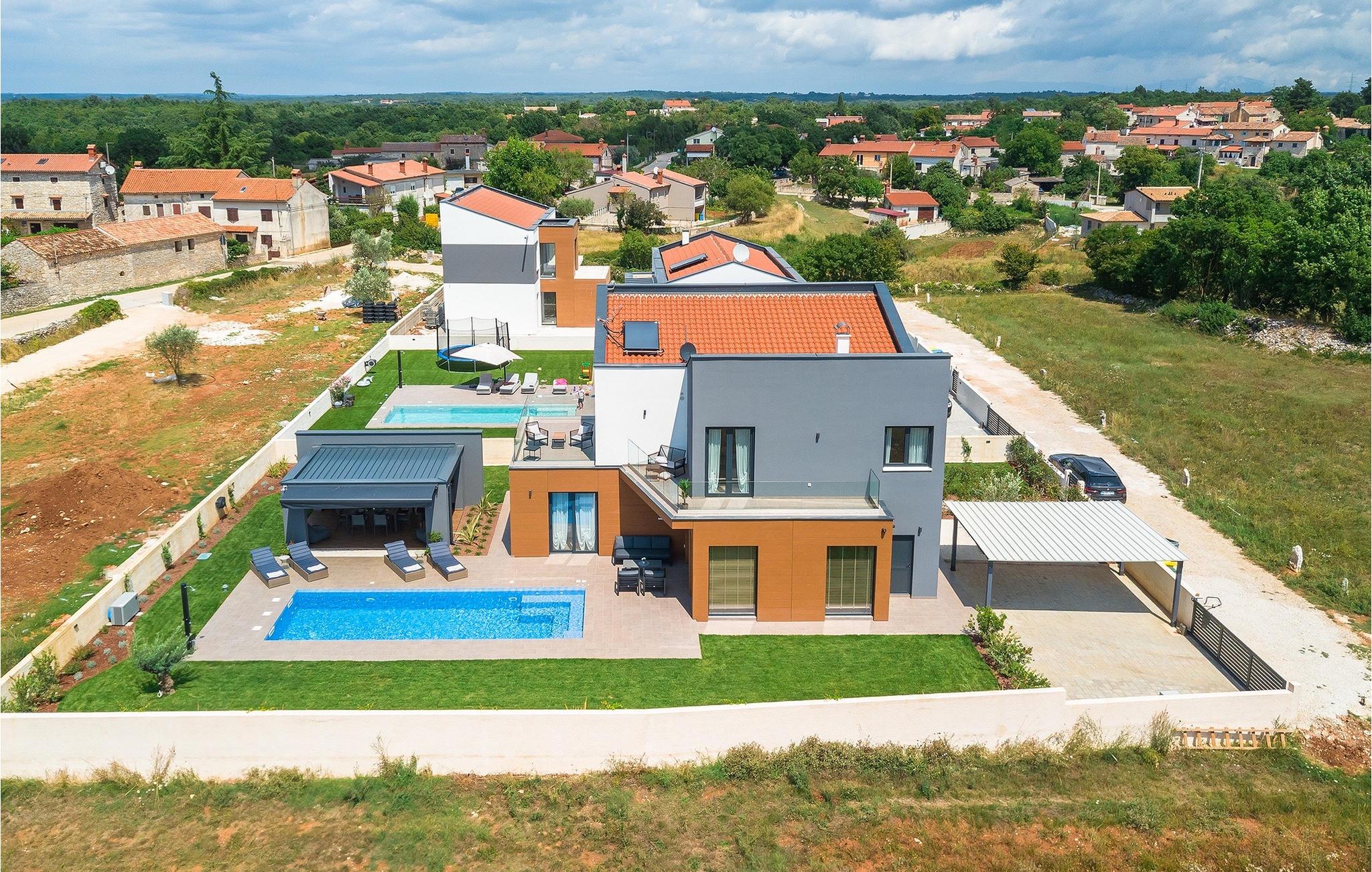 Villa LiLa Sunshine er et sted, hvor luksus møder ro. Det er en sofistikeret og moderne villa, der vil tilbyde dig et luksuriøst ophold i Istriens indre land. Villaen er beliggende i en rolig beliggenhed i Orbanici, kun en kort køretur fra Pula og havet. Villa LiLa Sunshine er velegnet til op til 6 gæster i 3 soveværelser med kingsize senge og eget badeværelse. Alle værelser har aircondition og tv samt udgang til terrasse eller balkon. En lille under 3 år kan også indkvarteres i en barneseng. Det fuldt udstyrede køkken og den luksuriøse stue ligger i stueetagen og byder på en frisk og moderne atmosfære. Udenfor venter en privat pool, gasgrill og udendørs spiseplads, alt sammen omgivet af grønne områder i en rolig beliggenhed. Med et alarmsystem i huset er din ro i sindet lige så vigtig som din komfort. Nyd den istriske sol på fire liggestole, og lad hvert øjeblik være et mesterværk af komfort og sindsro. Den vidunderlige Villa LiLa Sunshine er beliggende i det centrale Istrien, i Orbanici, en lille, charmerende by. Her kan du opleve det fortryllede istriske bagland med dets smukke natur og gastronomiske specialiteter som ost, prosciutto skinke, honning og trøfler. I nærheden af Fazana er de første strande. Med færge eller båd kan du nemt rejse til den storslåede ø Brijuni og dens nationalpark herfra. Den største turistdestination i området er Pula, som byder på et fantastisk amfiteater samt en række restauranter, barer og et pulserende natteliv. Besøg middelalderbyer som Svetvincenat, Vodnjan og Bale, som er kendt for deres maleriske pladser, snoede gyder, taverner, butikker og pubber. Temperaturen i den opvarmede swimmingpool er afhængig af eksterne faktorer, herunder vejrforhold, og som sådan kan temperaturen på vandet ikke garanteres.
