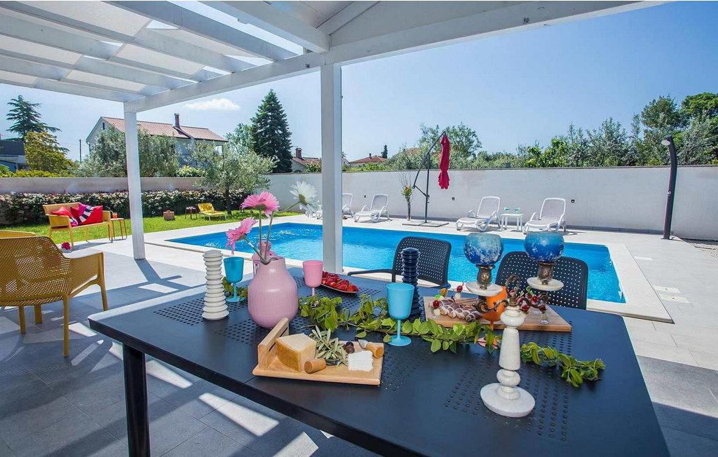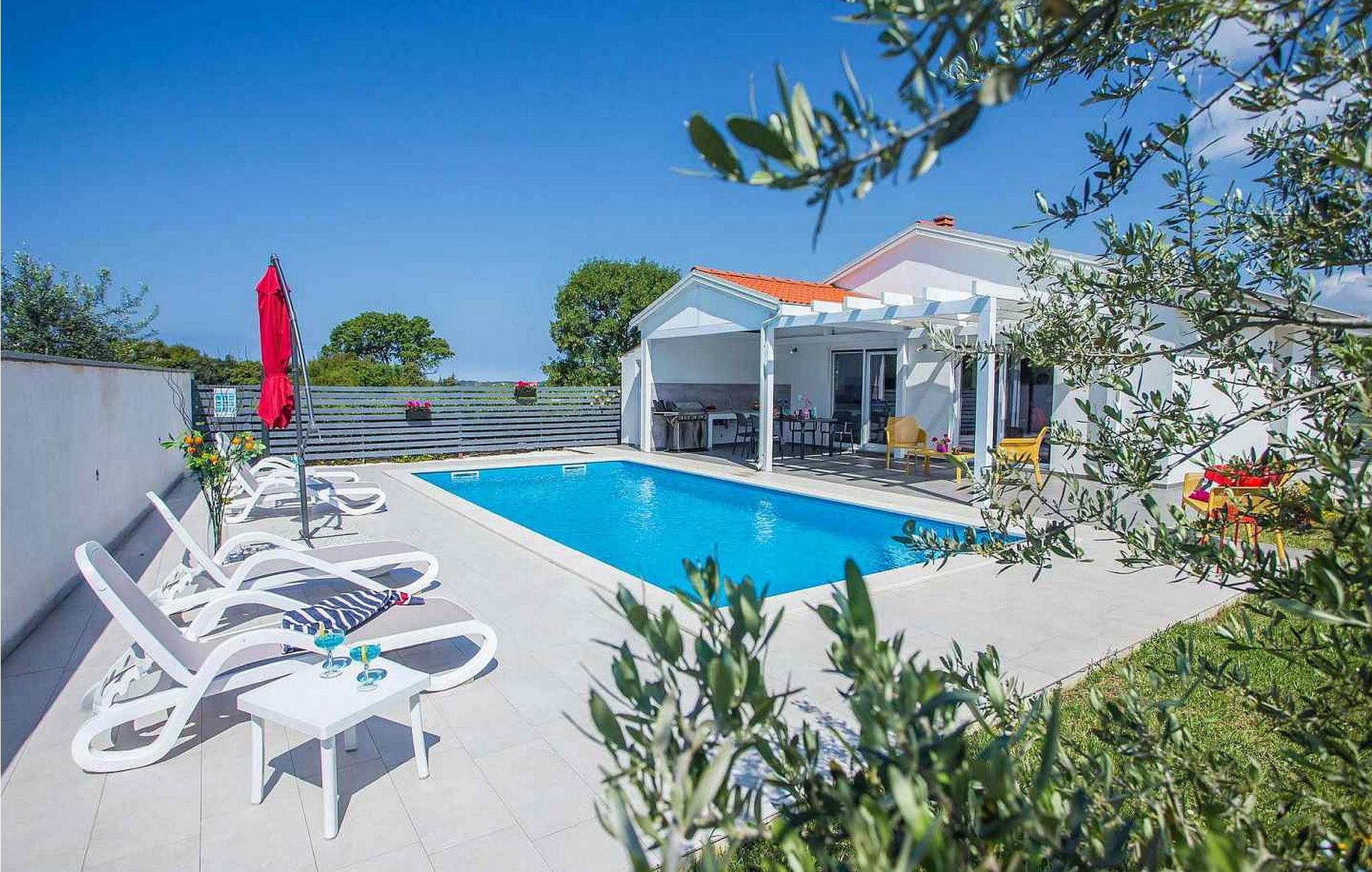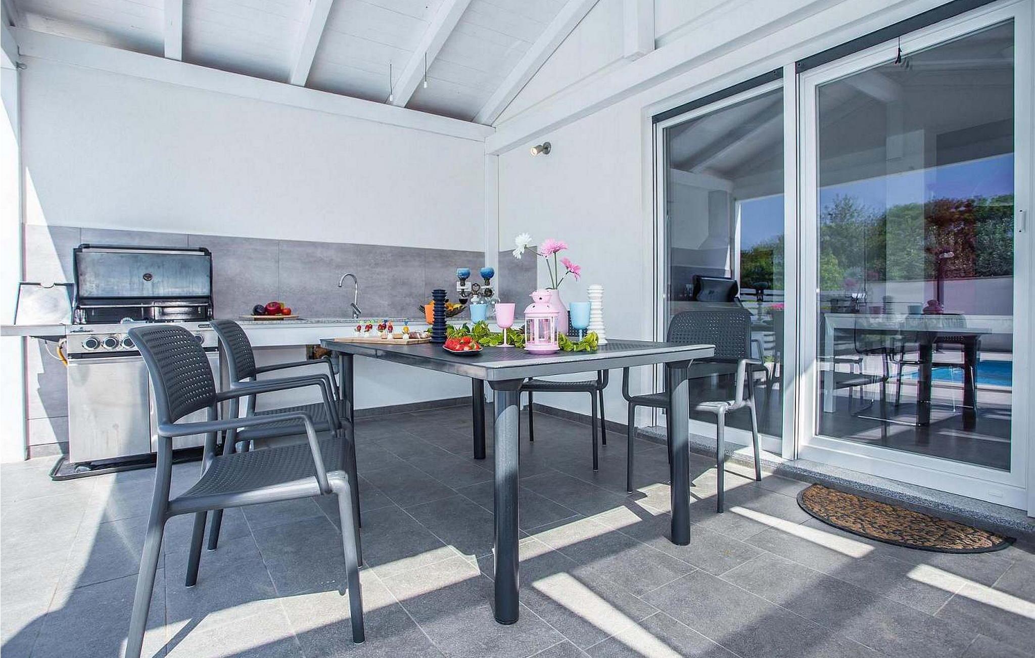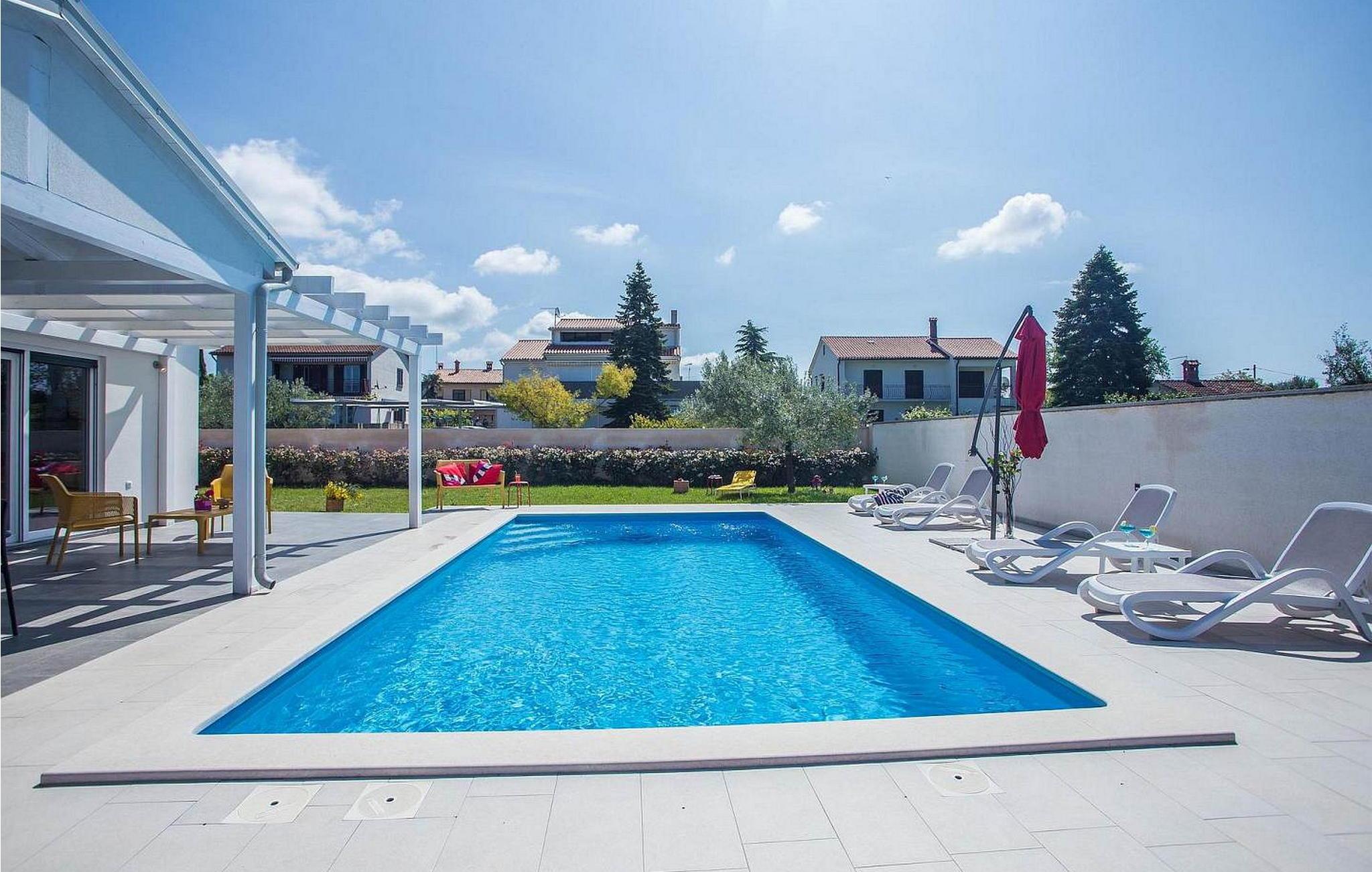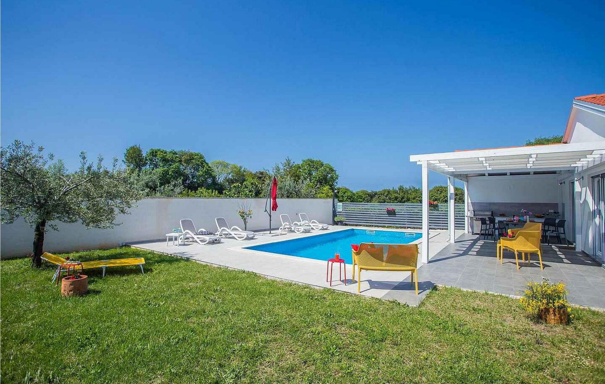 Villa Sunrise er et moderne feriehus i stueetagen i den lille bygd Stinjan, nær Pula og Fazana, kun 1 km fra velholdte strande og lange gåture ved havet. For alle gourmeter er der nogle fremragende restauranter, vin og olivenolie veje i nærheden. I selve landsbyen er der bager, købmand, pizzeria, tennisbane og café. Denne del af Istrien er kendt for forskellige arrangementer i løbet af sæsonen. Feriehuset er beliggende på delvist indhegnet grund på 300 kvm med udendørs swimmingpool på 32 kvm, overdækket terrasse med bord og stole, udekøkken, grill og to parkeringspladser. Villa Sunrise har et boligareal på 78 kvm og tilbyder med sin dejlige indrettede plads gæsterne et behageligt ophold i fuldt udstyret køkken, spisestue og stue med adgang til terrassen og til swimmingpoolen, to komfortable soveværelser og to brusere /toiletter. Soveværelserne har satellit-tv og aircondition. Bemærk venligst, at denne ejendom ikke accepterer ungdomsgrupper eller polterabends. En ungdomsgruppe på denne ejendom er en gruppe bestående af personer på 26 år eller derunder. Book ikke denne ejendom, hvis du er en ungdomsgruppe eller et polterabend, da din reservation vil blive afvist efter booking, hvilket kan omfatte ved ankomst til ejendommen eller under dit ophold, og du vil ikke blive refunderet.