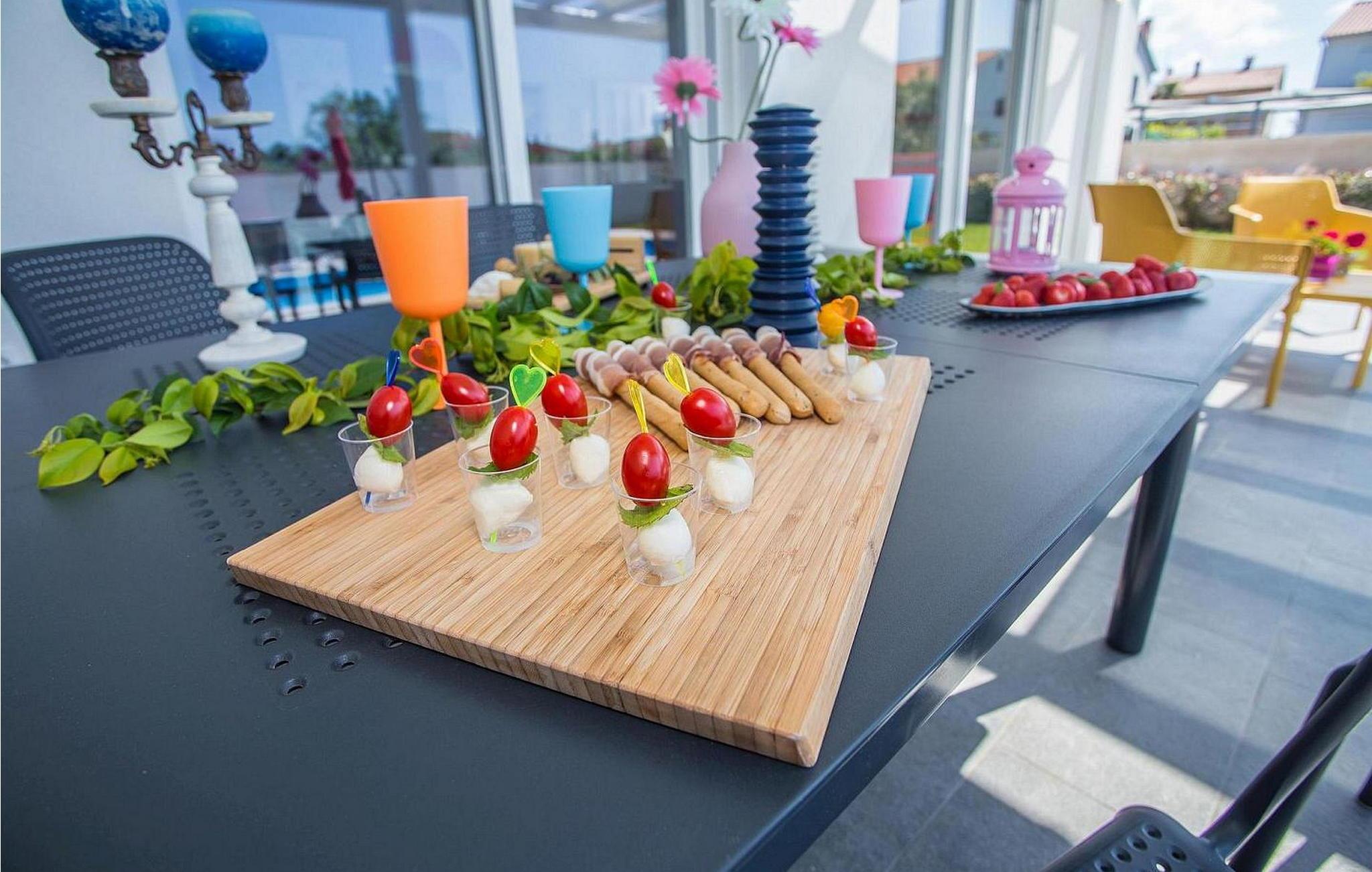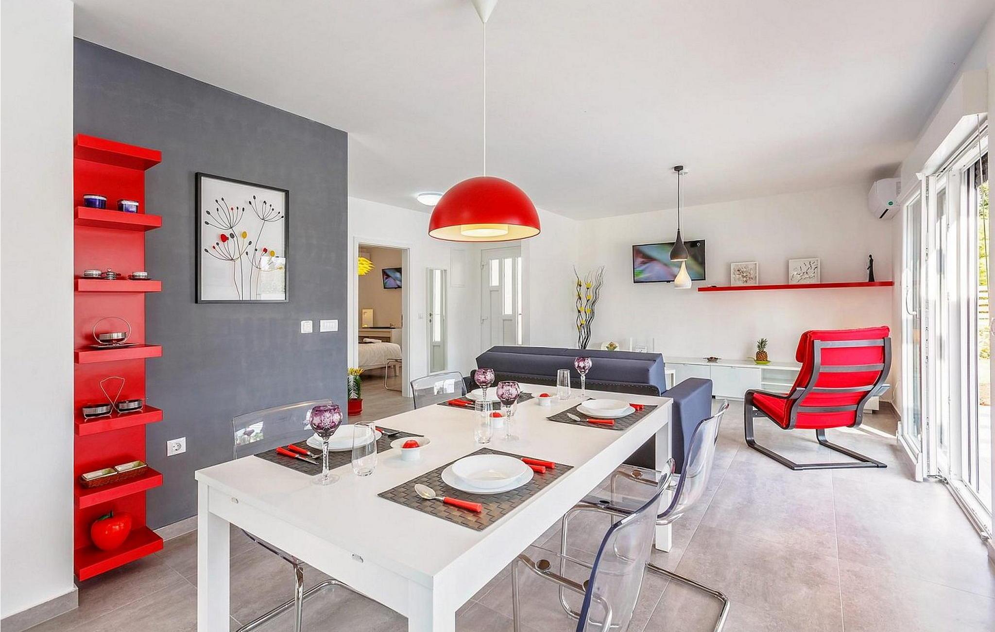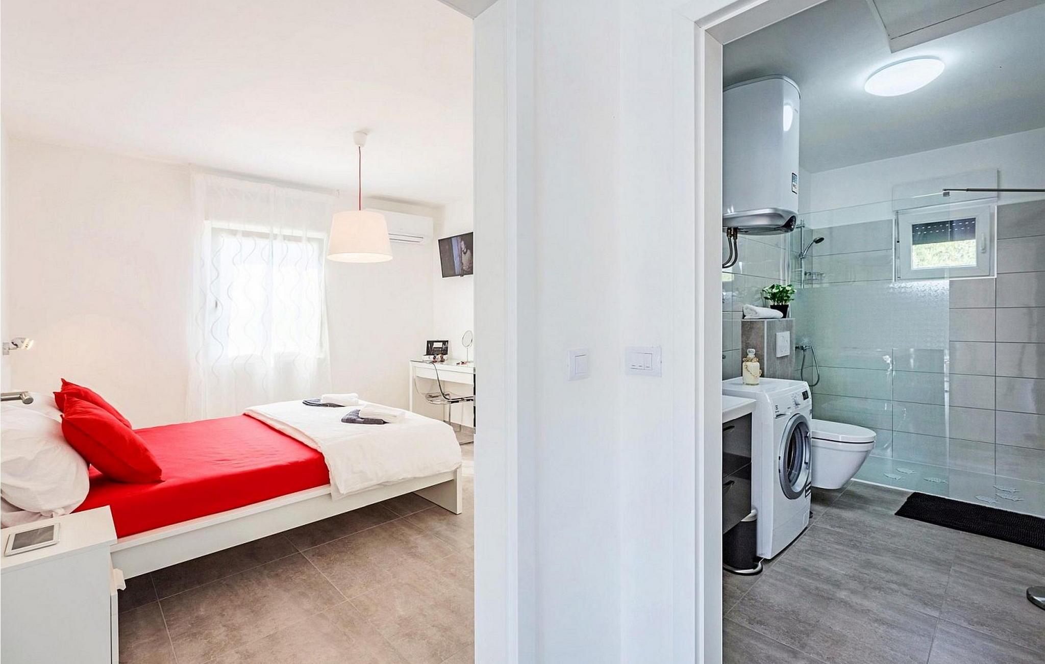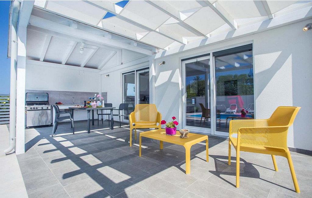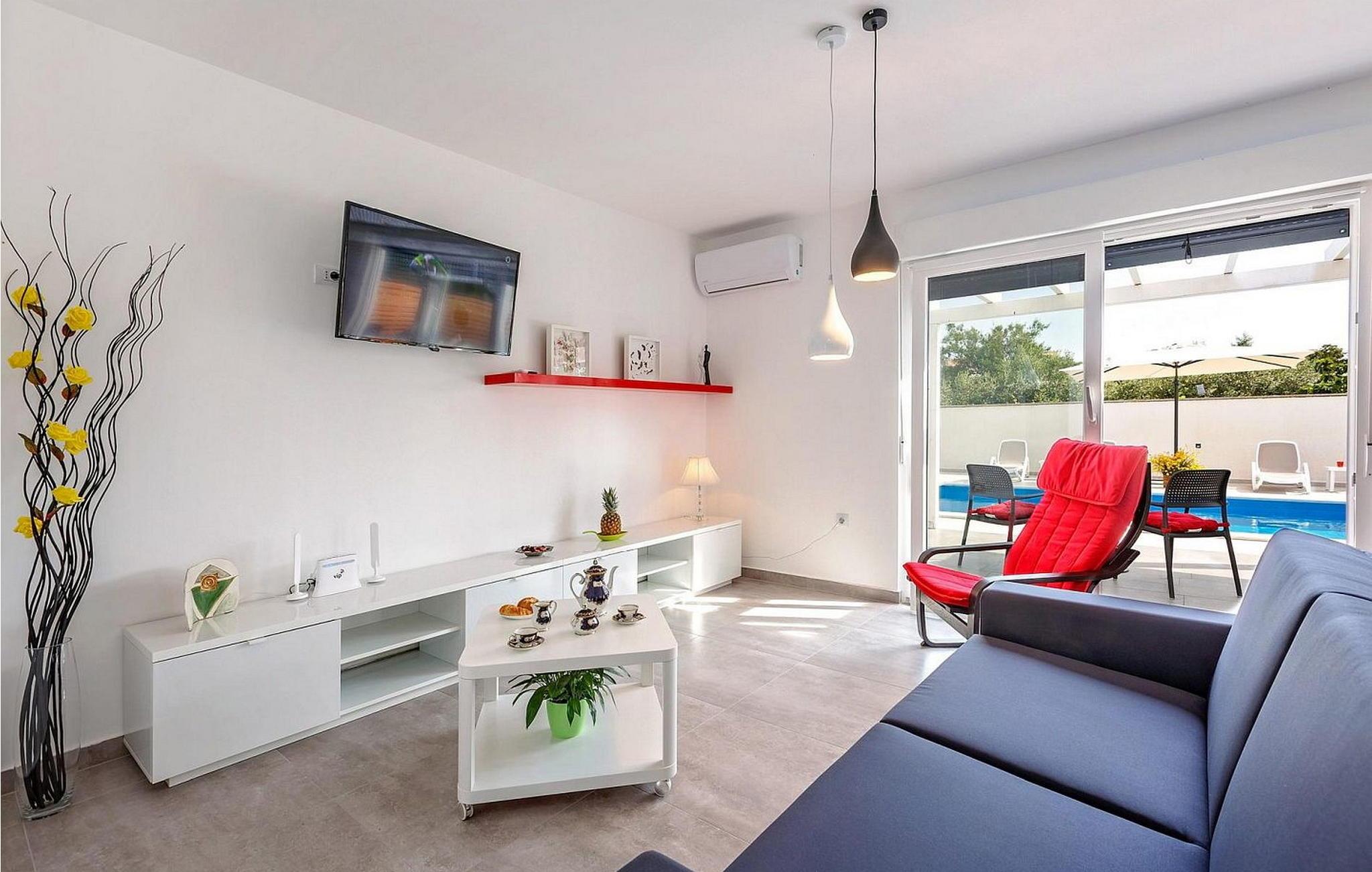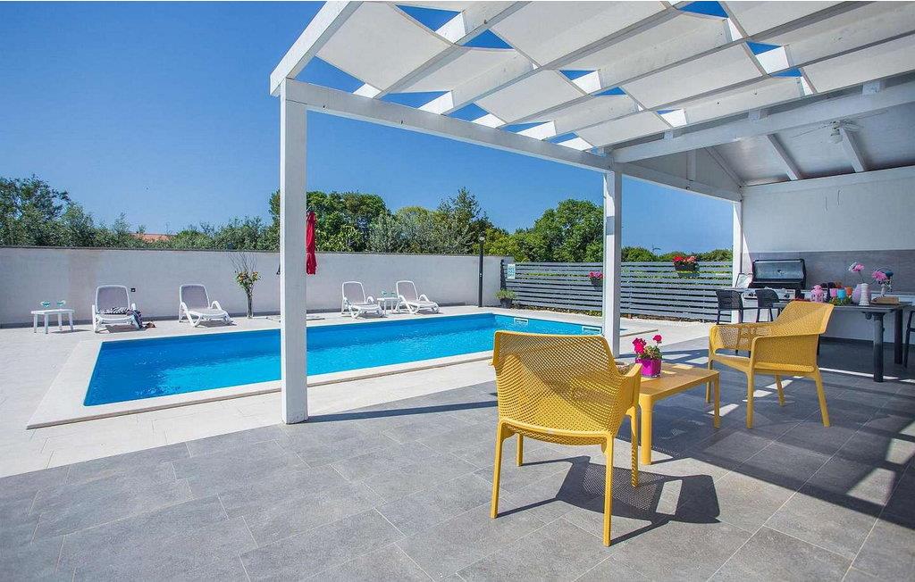 Villa Sunrise er et moderne feriehus i stueetagen i den lille bygd Stinjan, nær Pula og Fazana, kun 1 km fra velholdte strande og lange gåture ved havet. For alle gourmeter er der nogle fremragende restauranter, vin og olivenolie veje i nærheden. I selve landsbyen er der bager, købmand, pizzeria, tennisbane og café. Denne del af Istrien er kendt for forskellige arrangementer i løbet af sæsonen. Feriehuset er beliggende på delvist indhegnet grund på 300 kvm med udendørs swimmingpool på 32 kvm, overdækket terrasse med bord og stole, udekøkken, grill og to parkeringspladser. Villa Sunrise har et boligareal på 78 kvm og tilbyder med sin dejlige indrettede plads gæsterne et behageligt ophold i fuldt udstyret køkken, spisestue og stue med adgang til terrassen og til swimmingpoolen, to komfortable soveværelser og to brusere /toiletter. Soveværelserne har satellit-tv og aircondition. Bemærk venligst, at denne ejendom ikke accepterer ungdomsgrupper eller polterabends. En ungdomsgruppe på denne ejendom er en gruppe bestående af personer på 26 år eller derunder. Book ikke denne ejendom, hvis du er en ungdomsgruppe eller et polterabend, da din reservation vil blive afvist efter booking, hvilket kan omfatte ved ankomst til ejendommen eller under dit ophold, og du vil ikke blive refunderet.