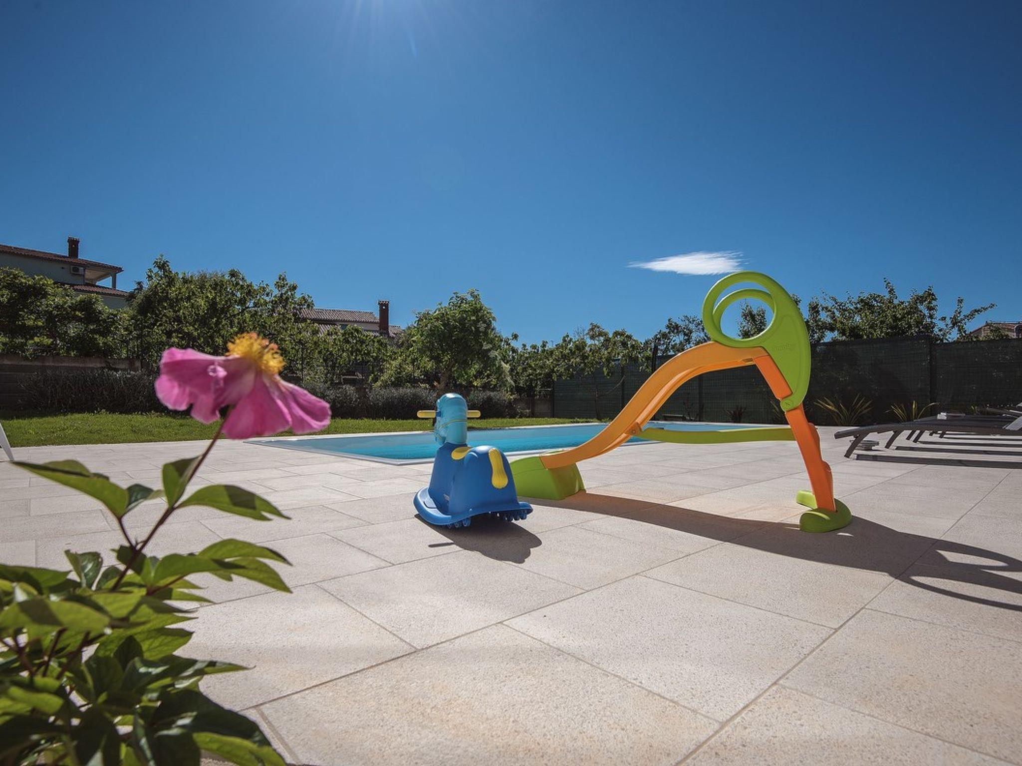 Visit this wonderful apartment Falu in Štinjan, not far from the historical town of Pula. The apartment is located on the ground floor of a family house and can accommodate up to six persons. The interior of this apartment is nicely decorated and consists of a living room, dining room with fully equiped kitchen, two bedrooms and a bathroom with shower. In the evening nights You can relax on the private terrace with pool or play table football. To make your stay even more fun, bicycles are at your disposal and the youngest ones can enjoy on the children's playground with sandpit.