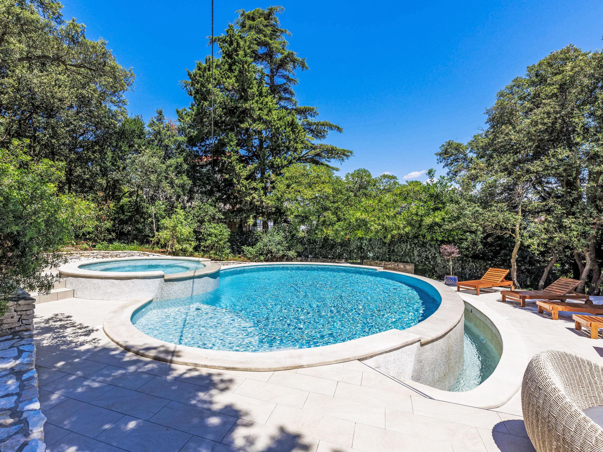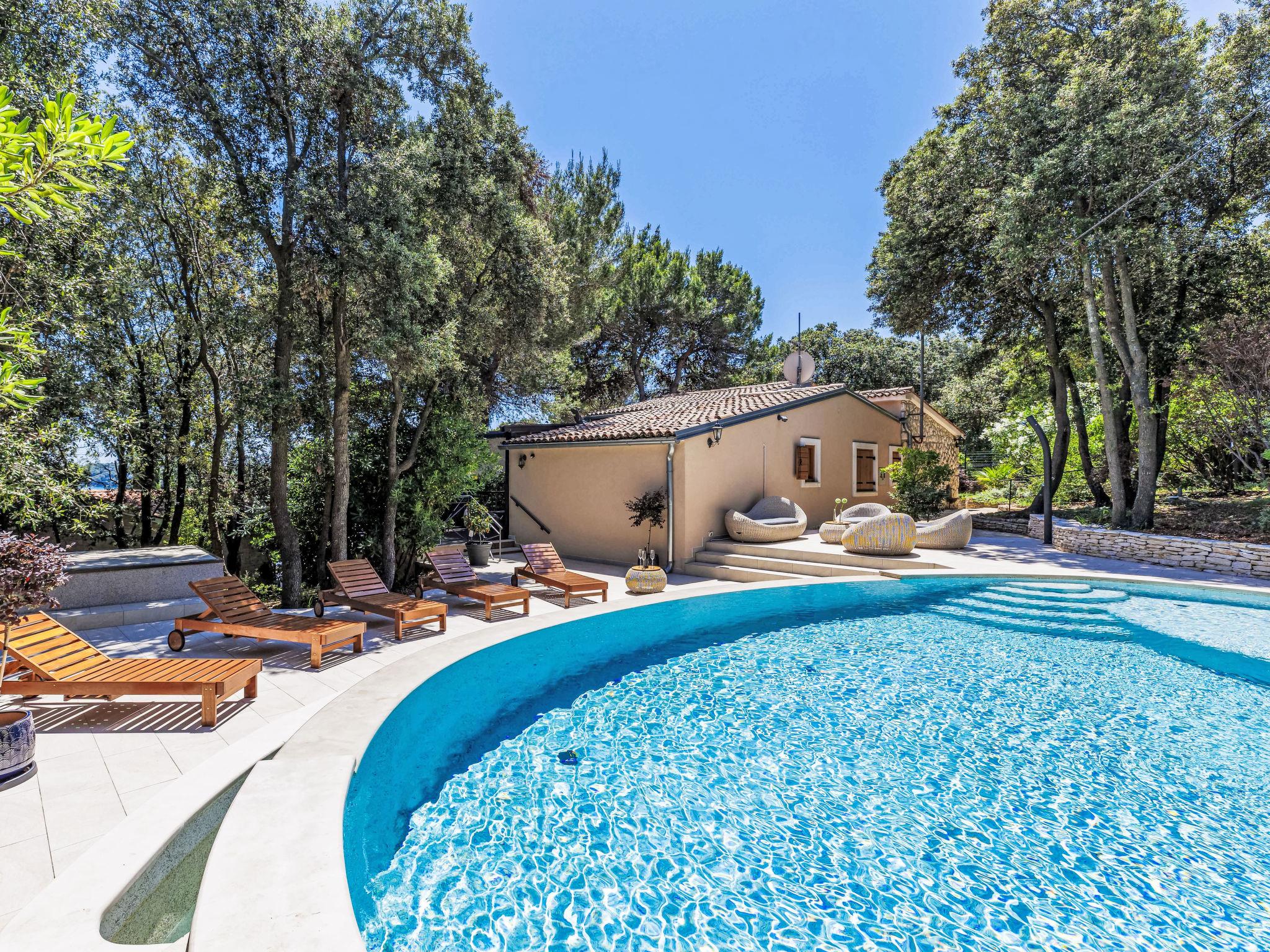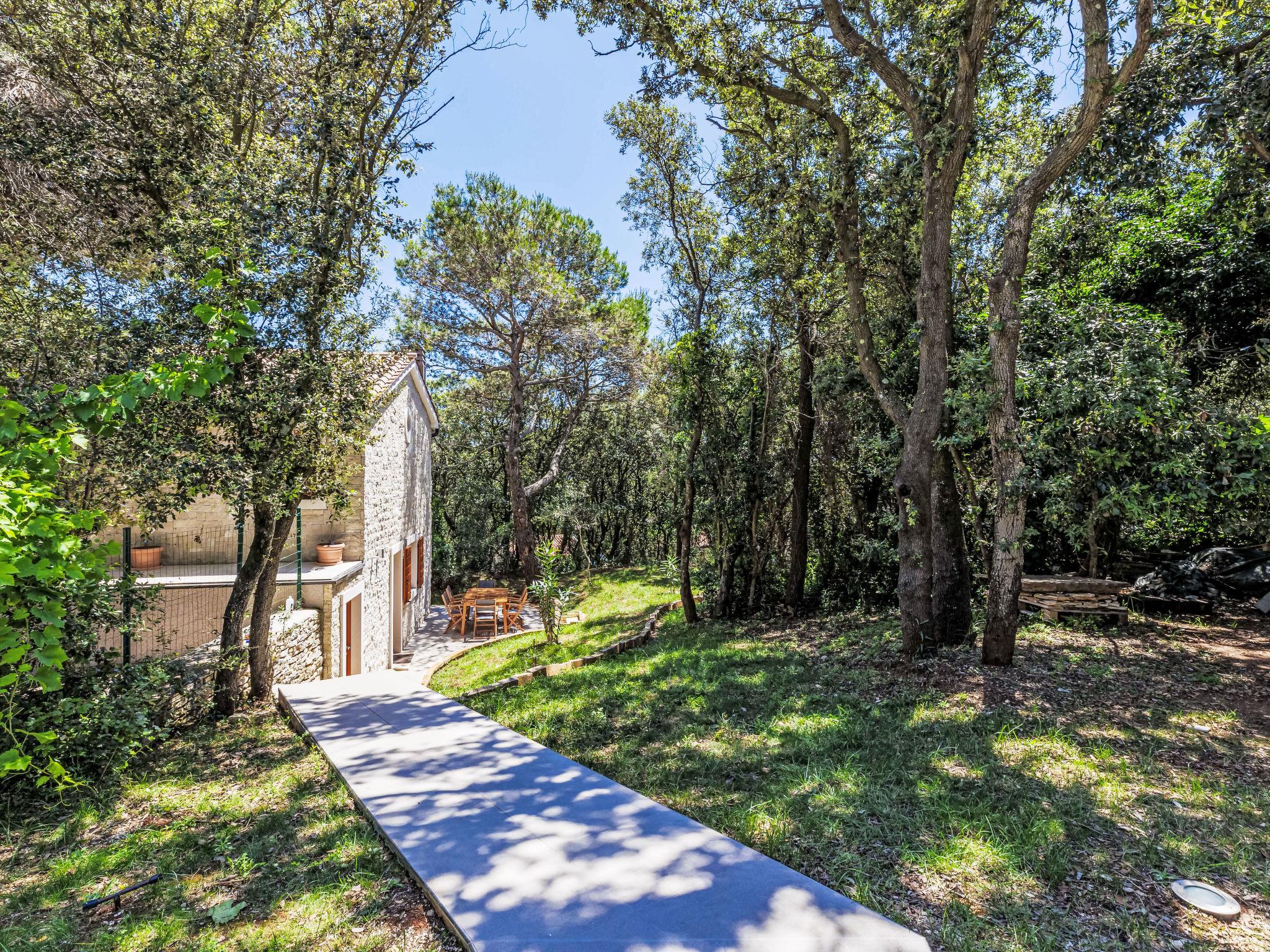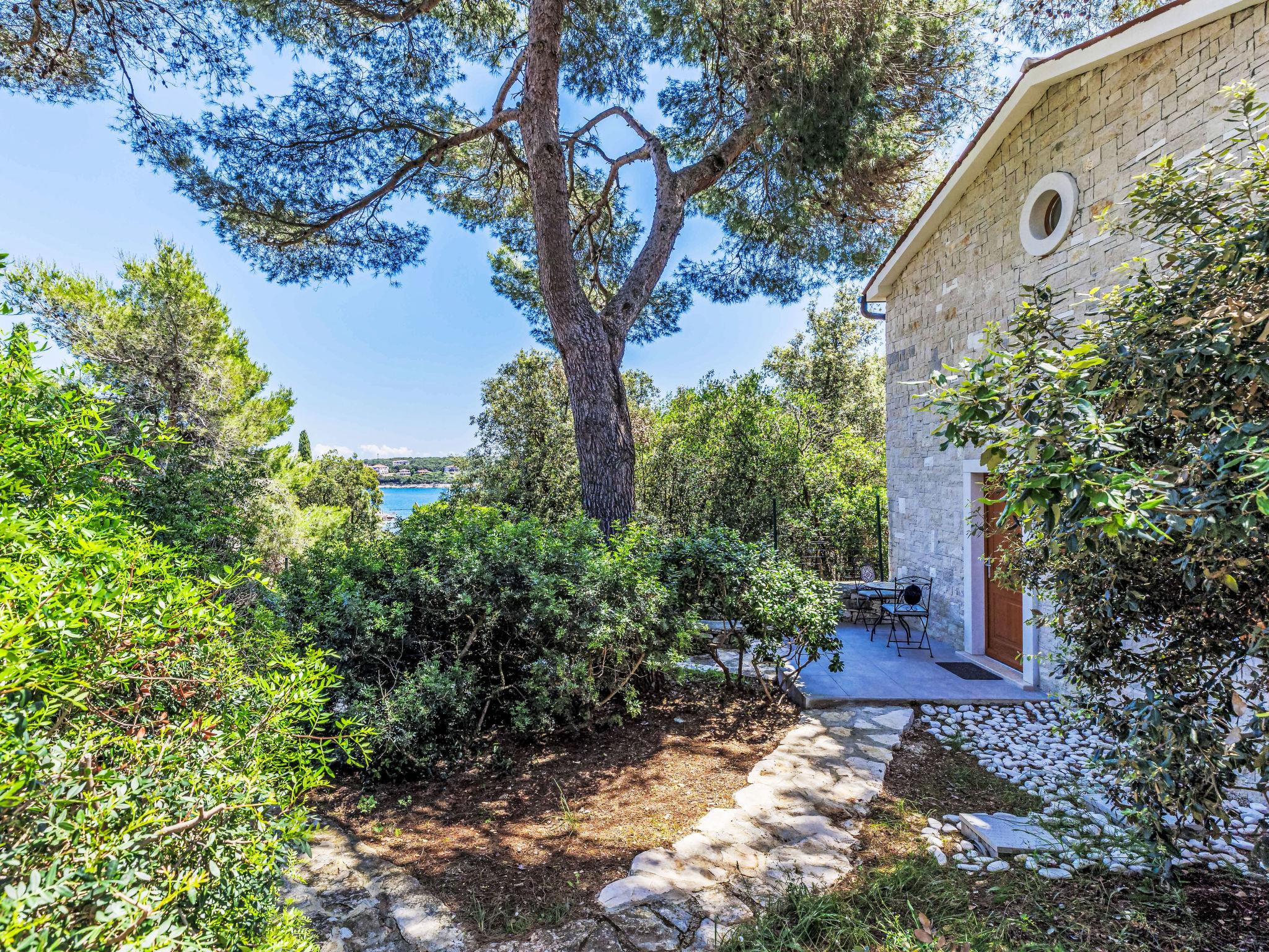 Child friendly, beautiful villa "Verudela". 4 km from the centre of Pula, in a quiet, sunny position, 50 m from the sea, 50 m from the beach. Private: property 1'800 m2 (fenced), beautiful garden with wildlife garden and trees, swimming pool (50 m2, depth 140 cm, seasonal availability: 01.Apr. - 01.Nov.). Unconventional pool shape. Pool maintenance by the owner/gardener. In the house: internet access, burglar alarm system, washing machine. Parking at the house on the premises. Shop, restaurant 200 m, bus stop 700 m, pebble beach, rocky beach 50 m. The owner does not accept any youth groups. Villa is situated inside the holiday complex "Park Plaza Verudela", at the cape Verudela. The unit consists of 3 villas rented as one unit.