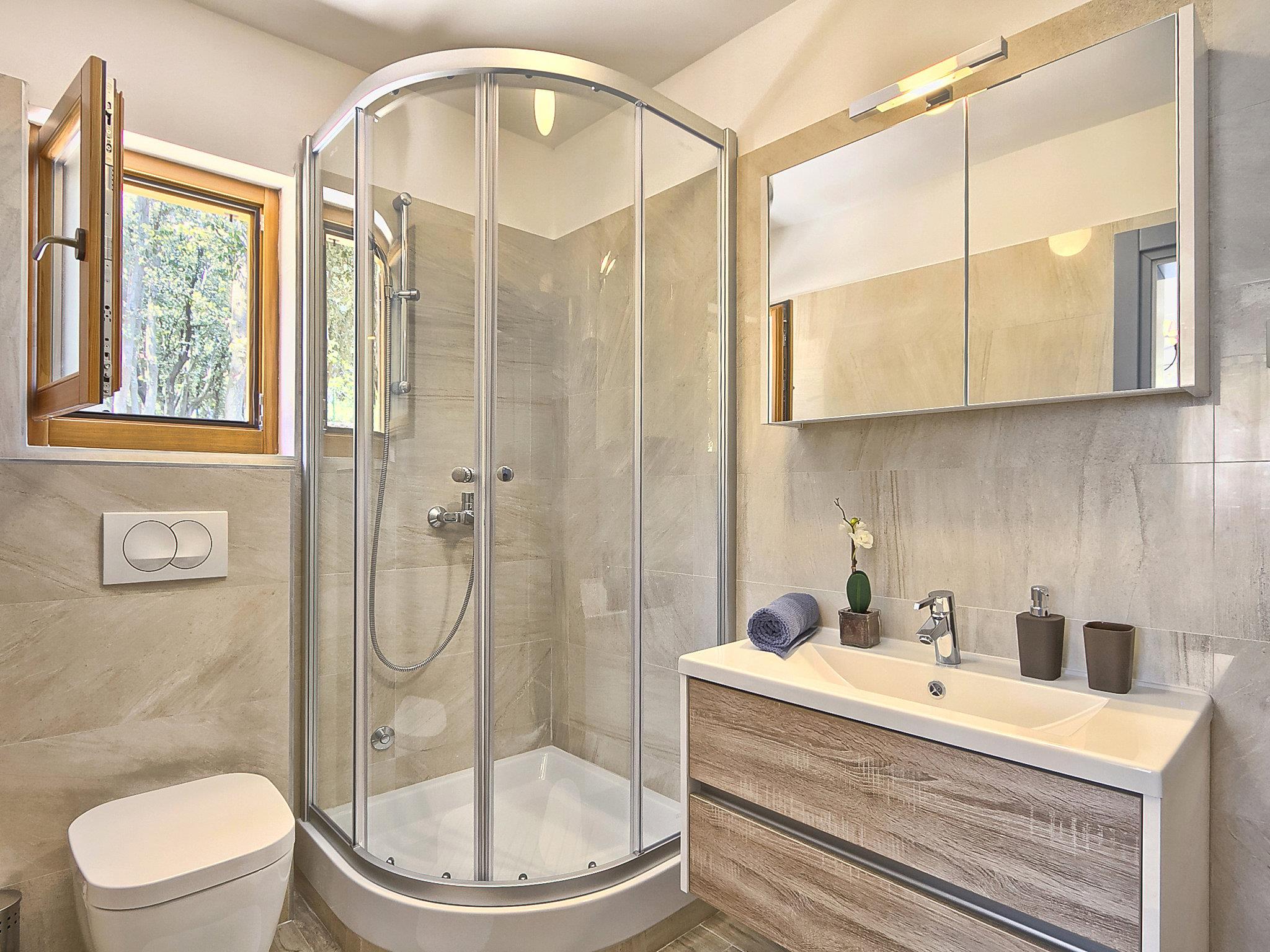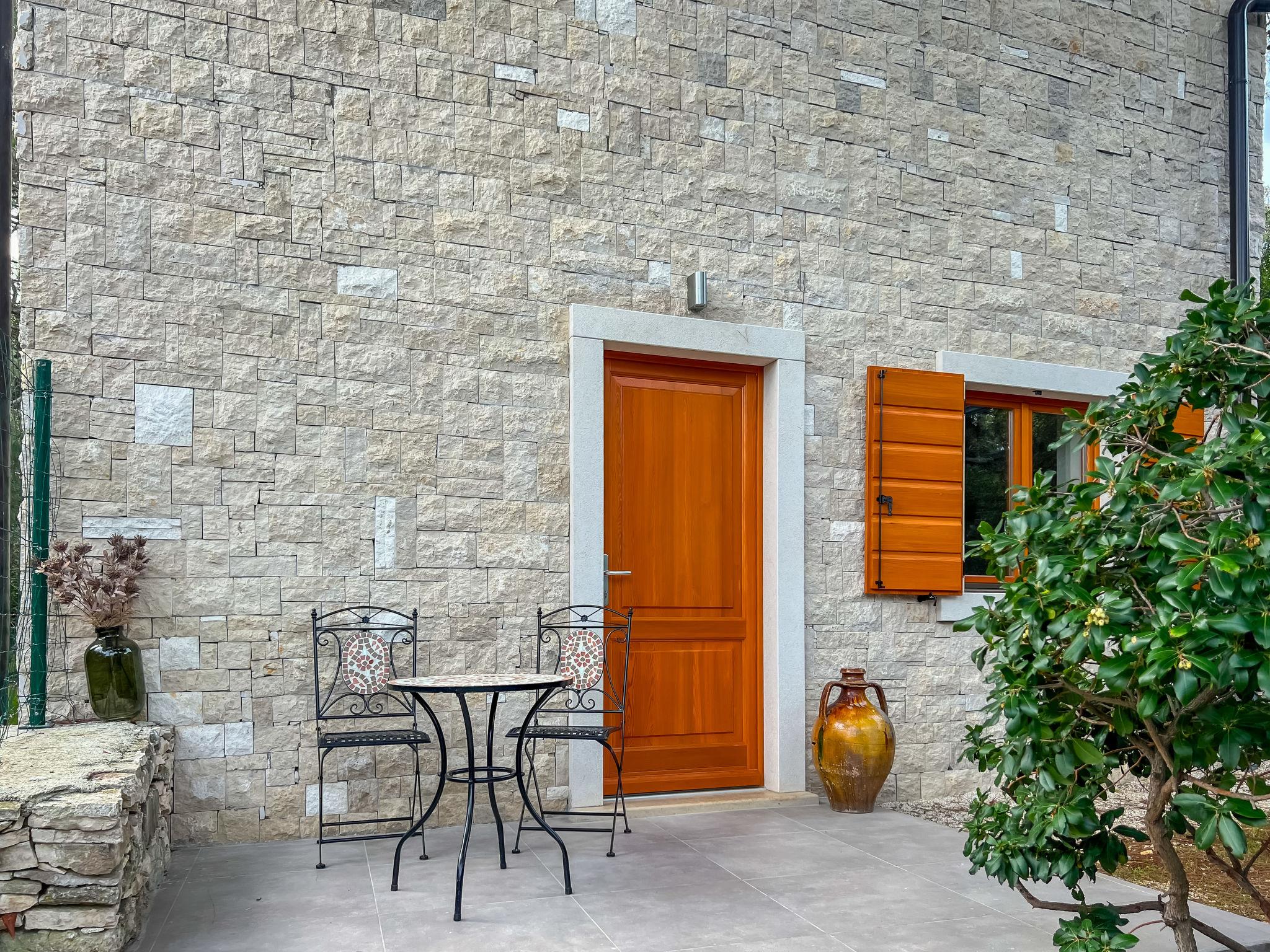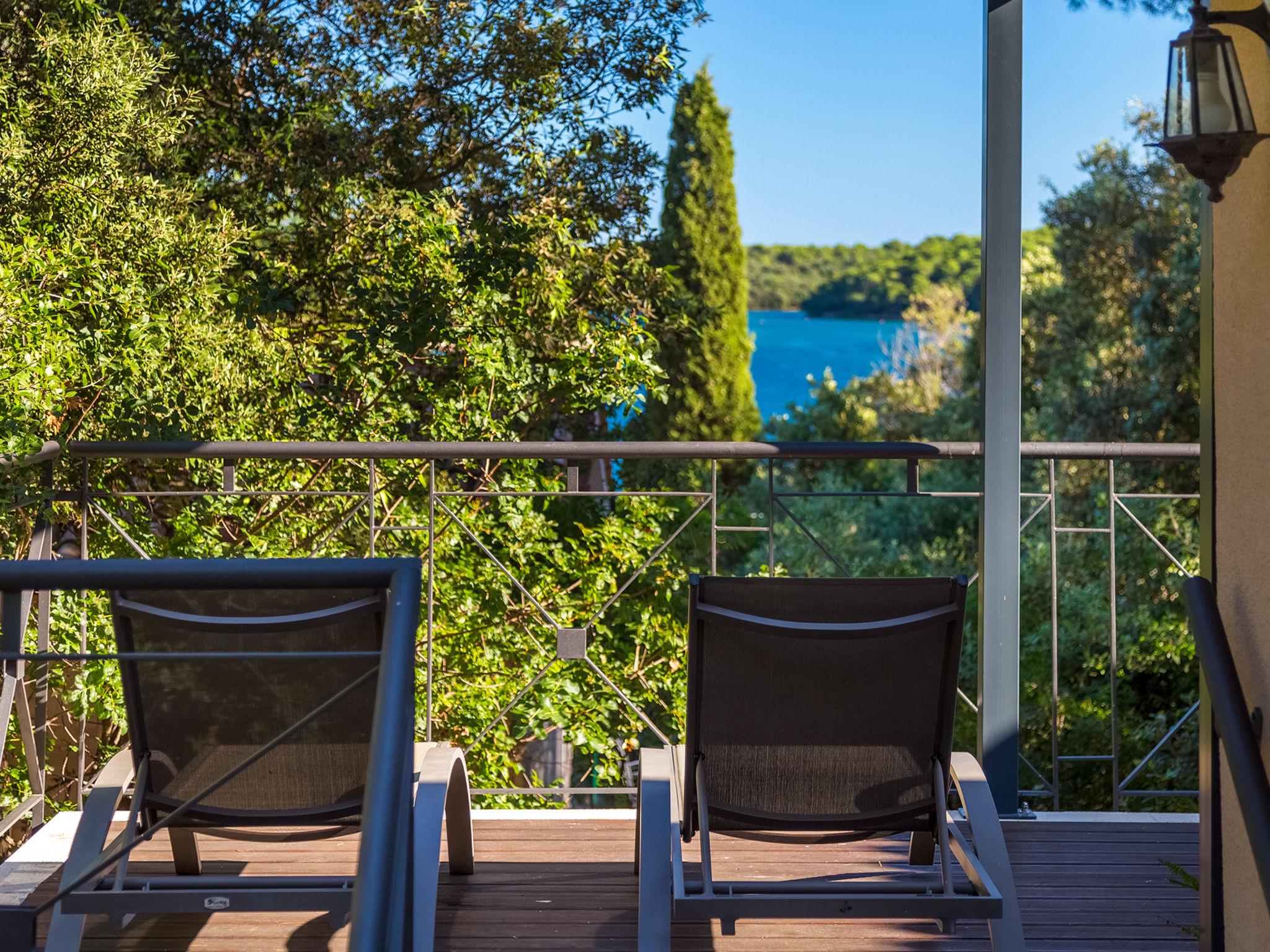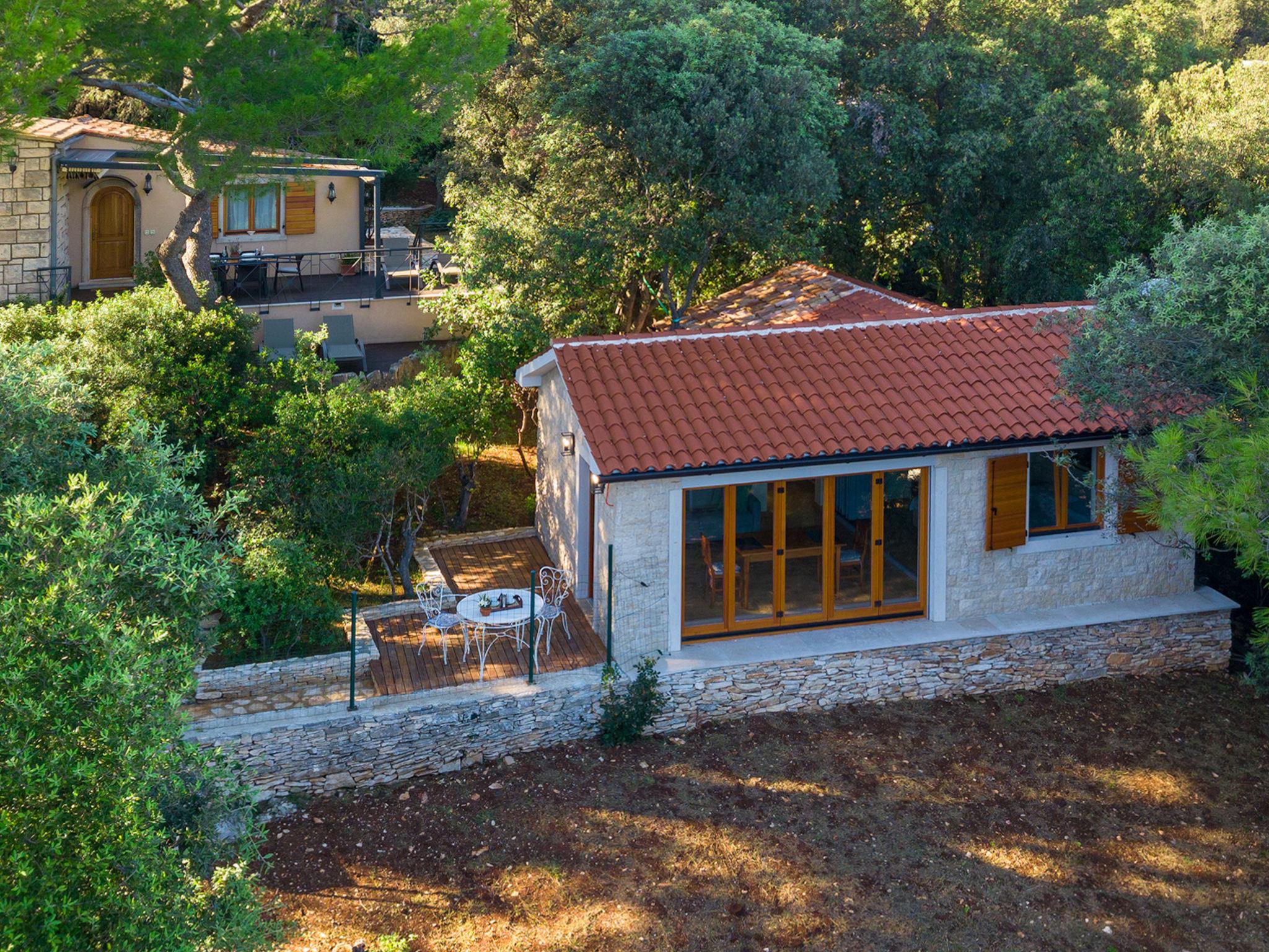 9-room villa 210 m2 on 2 levels. Living/dining room with panoramic window with kitchen corner, satellite TV and air conditioning. Exit to the terrace. 1 room with 2 beds (90 cm, length 200 cm). Living/dining room with kitchen corner, satellite TV and air conditioning. Exit to the terrace. 1 room with 1 french bed (160 cm, length 200 cm), kitchen corner, shower/WC and air conditioning. 1 room with 1 french bed (160 cm, length 200 cm), satellite TV and air conditioning. Living/dining room with open-hearth fireplace (only for decoration), satellite TV (flat screen), air conditioning. 1 room 8 m2 with 1 double sofabed (160 cm, length 200 cm). Kitchen (oven, dishwasher, 4 ceramic glass hob hotplates, microwave, freezer). 3 showers/WC. Upper floor: entrance hall with air conditioning. 1 room with 1 french bed (160 cm, length 200 cm). 1 room with 1 french bed (180 cm, length 200 cm). Shower/WC. Heating. Terrace 30 m2, 2 terraces 5 m2. Terrace furniture. View of the sea. Facilities: safe. Internet (WiFi, free). 1 small pet/ dog allowed. The first villa with living/dining room, open kitchen, 1 bedroom. The second villa with living/dining room, open kitchen, 2 bedrooms. The third villa with living/dinig room, open kitchen, 1 bedroom on the ground floor, 2 bedrooms on the first floor.