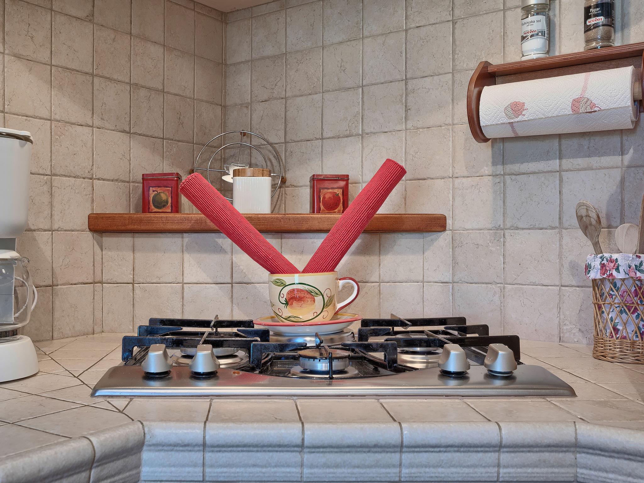 1-room apartment 55 m2, on the ground floor. 1 room with 1 double bed (2 x 90 cm, length 190 cm), air conditioning. Dining room with open-hearth fireplace and satellite TV (flat screen). Exit to the terrace. Open kitchen (4 hot plates, oven, dishwasher, microwave, freezer, electric coffee machine, Capsules for coffee machine (dolce gusto) free). Shower/WC. Terrace 10 m2, roofed. Terrace furniture. View of the garden. Facilities: washing machine, iron. Internet (WiFi, free).