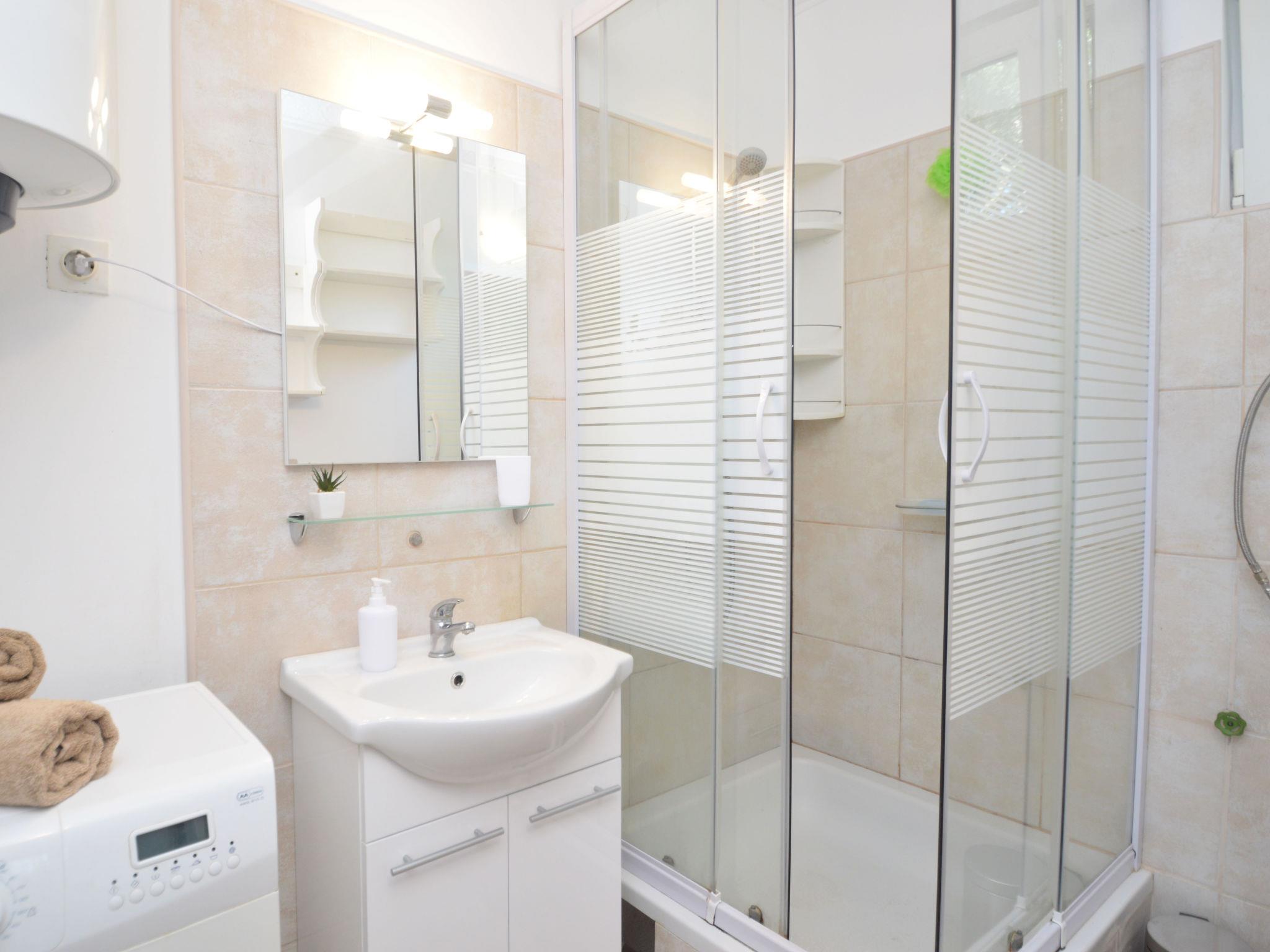 4-room house 87 m2 on 2 levels. Living/dining room with satellite TV (flat screen), air conditioning. 1 room with 2 beds (80 cm, length 200 cm). 1 room with 1 double bed (2 x 90 cm, length 200 cm). Open kitchen (4 hot plates, oven, dishwasher, microwave, freezer, electric coffee machine). Shower/WC. Upper floor: (exterior staircase), 1 room with sloping ceilings, ceiling height 160 - 300 cm with 1 french bed (160 cm, length 200 cm), shower/WC. Terrace 10 m2, roofed. Deck chairs. View of the swimming pool. Facilities: Internet (WiFi, free). Maximum 1 pet/ dog allowed.