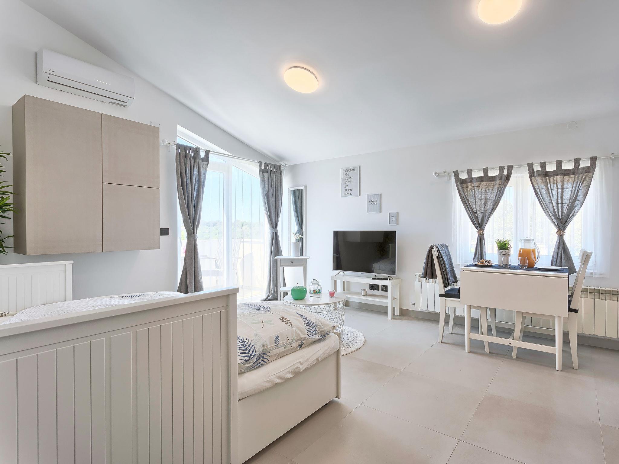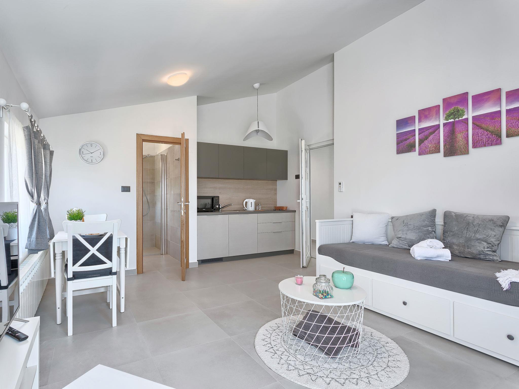 Beautiful apartment house "La Mer". In the district of Veli Vrh 3 km from the centre of Pula, in a sunny position, 3 km from the sea, in a cul-de-sac. For shared use: table tennis, terrace (40 m2), garden furniture, barbecue, children's playground (slide). In the house: internet access, table football, central heating system. Parking at the house on the premises. Shop 1 km, supermarket 2.5 km, restaurant 1 km, bus stop 350 m, pebble beach 4.5 km, rocky beach 4.5 km. Tennis 5 km, walking paths from the house 200 m, cycle lane 250 m. Nearby attractions: Amphitheater 3 km, NP Brijuni 6 km. For shared use (included): terrace (50 m2), football field, pinball, darts.