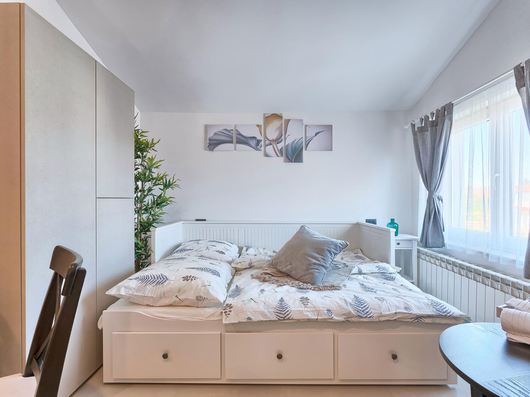 Beautiful apartment house "La Mer". In the district of Veli Vrh 3 km from the centre of Pula, in a sunny position, 3 km from the sea, in a cul-de-sac. For shared use: table tennis, terrace (40 m2), garden furniture, barbecue, children's playground (slide). In the house: internet access, table football, central heating system. Parking at the house on the premises. Shop 1 km, supermarket 2.5 km, restaurant 1 km, bus stop 350 m, pebble beach 4.5 km, rocky beach 4.5 km. Tennis 5 km, walking paths from the house 200 m, cycle lane 250 m. Nearby attractions: Amphitheater 3 km, NP Brijuni 6 km. For shared use (included): terrace (50 m2), football field, pinball, darts.