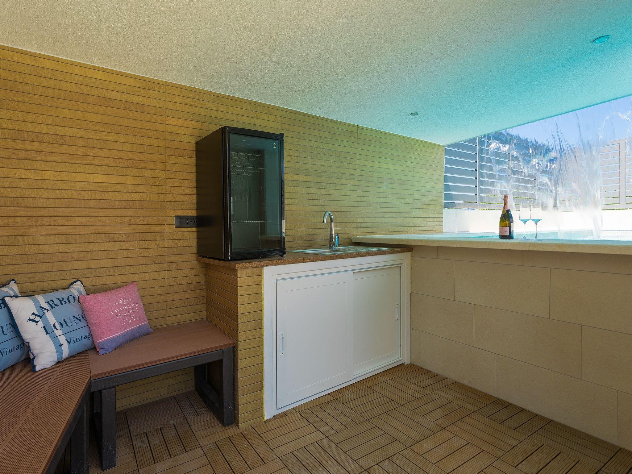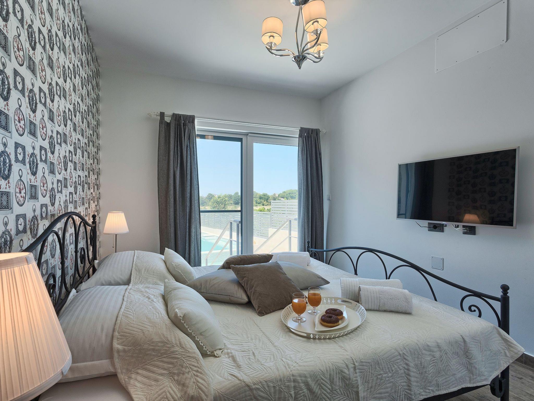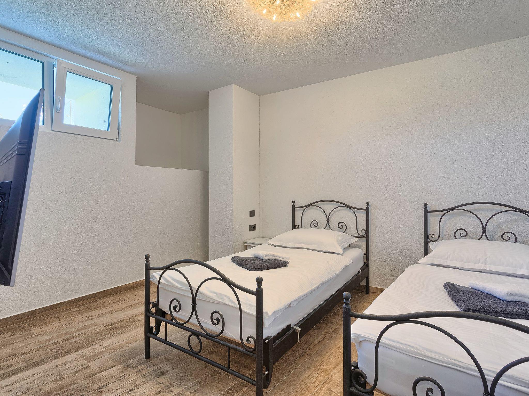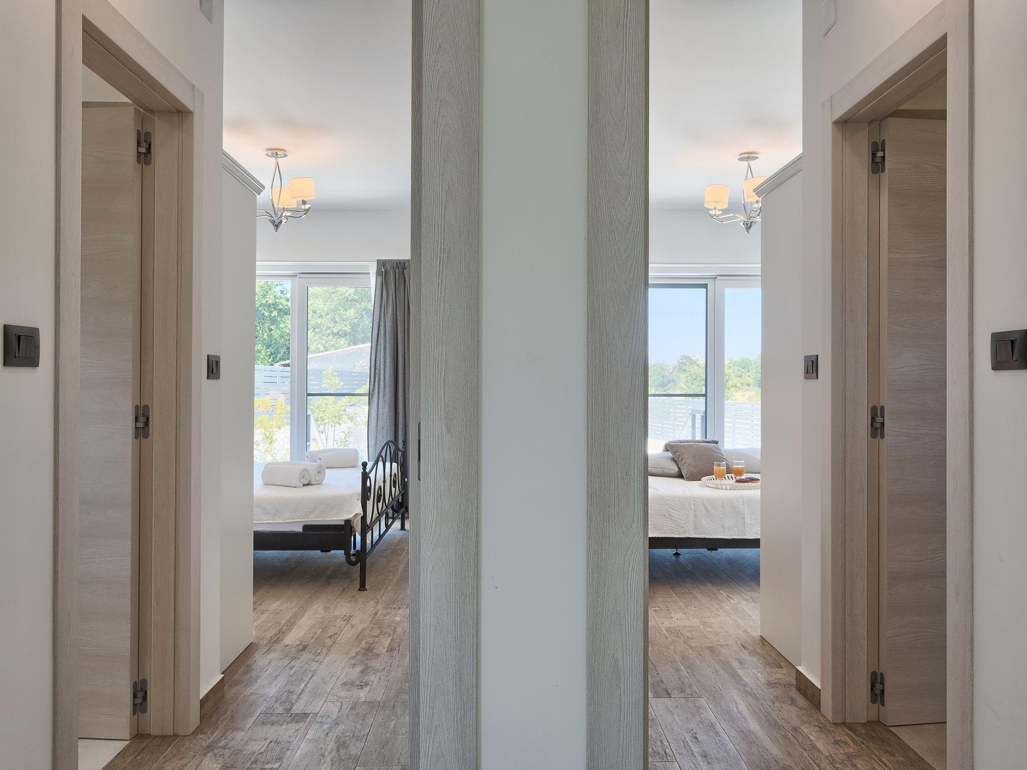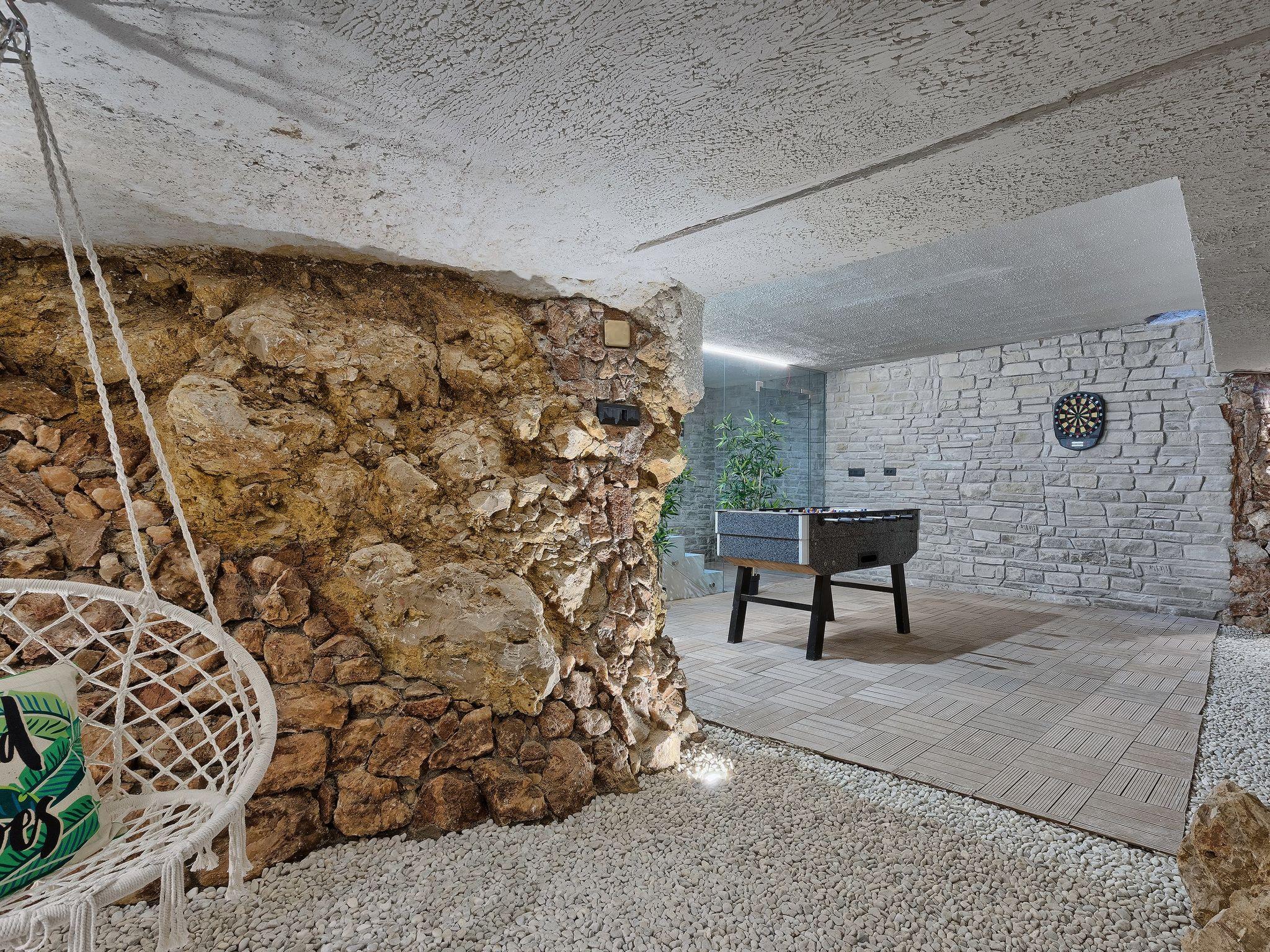 Modern villa "La Mer", 2 storeys. In the district of Veli Vrh 3 km from the centre of Pula, in a sunny position, 3 km from the sea, in a cul-de-sac. For shared use: children's playground (slide, swing). Private: property 400 m2 (fenced), garden with wildlife garden, swimming pool angular (12 x 5 m, depth 140 cm, seasonal availability: 01.Jan. - 31.Dec.) with internal staircase. Paddling pool, outdoor shower, terrace (20 m2), garden furniture. In the house: internet access, washing machine. Parking at the house on the premises. Shop 1 km, supermarket 2.5 km, restaurant 1 km, bus stop 400 m, pebble beach 4.5 km, rocky beach 4.5 km. Tennis 5 km, walking paths from the house 200 m, cycle lane 250 m. Nearby attractions: Amphitheater 3 km, NP Brijuni 6 km.