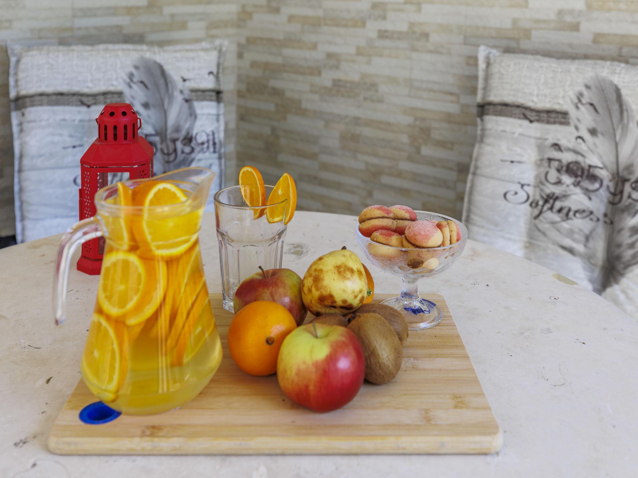 2-room house 50 m2, on the ground floor. Object suitable for 2 adults + 2 children. Living/dining room with 1 sofabed (160 cm, length 200 cm), satellite TV (flat screen), air conditioning. Exit to the garden, to the terrace. 1 room with 1 french bed (180 cm, length 200 cm). Open kitchen (3 hot plates, oven, dishwasher, 1 ceramic glass hob hotplate, kettle, freezer, electric coffee machine). Shower/WC. Terrace 10 m2, roofed. Terrace furniture, deck chairs. Facilities: hair dryer. Internet (WiFi, free). Suitable for families.