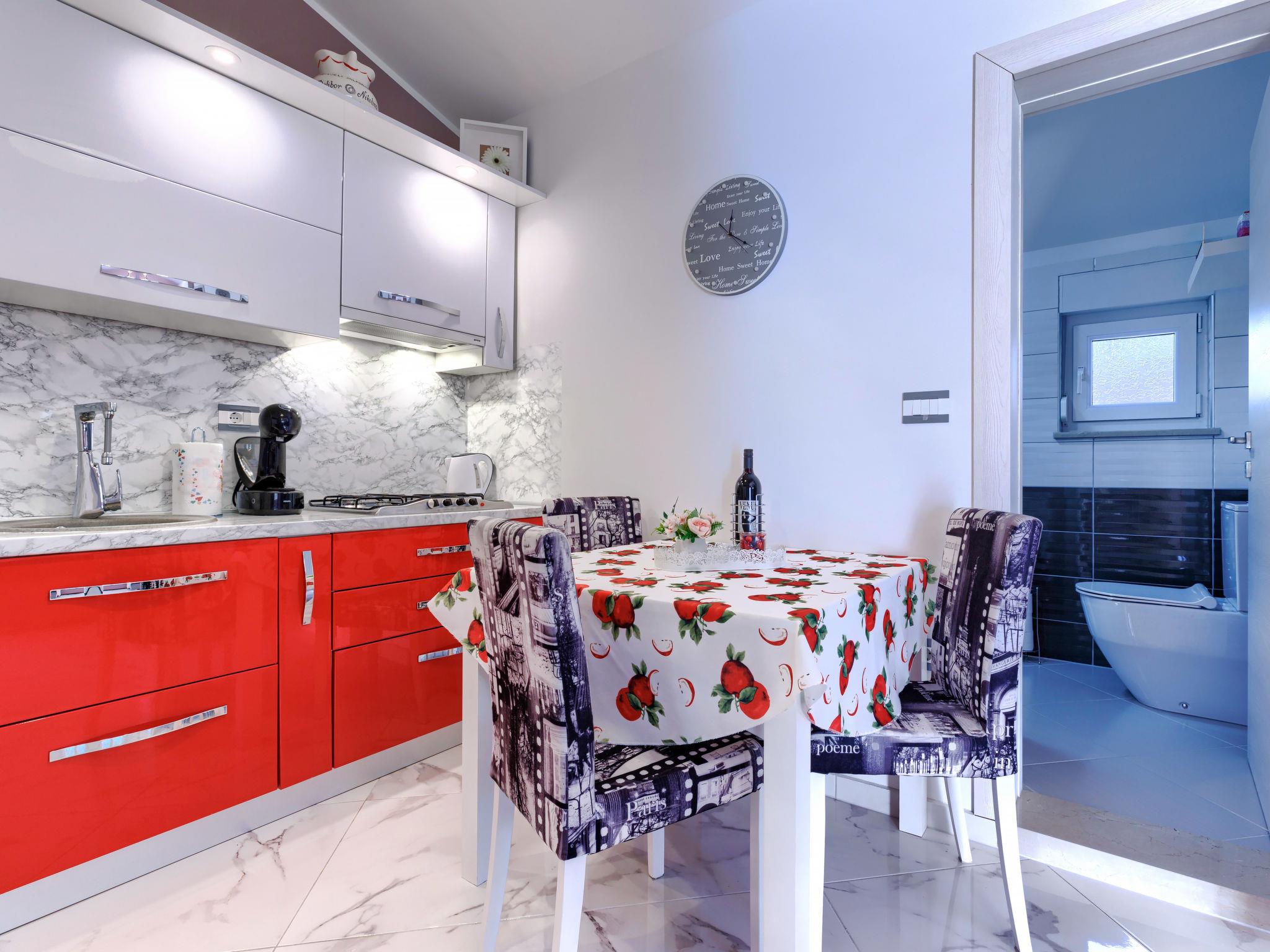 Single-family house "Dragica". In the district of Veli Vrh 3 km from the centre of Pula, in a sunny position, 3 km from the sea, in a cul-de-sac. For shared use: property 500 m2 (fenced), garden with lawn and flowers. Private: property 50 m2, small garden with lawn. Barbecue. In the house: internet access, washing machine. Parking (for 2 cars) at the house on the premises. Shop 1 km, supermarket 2.5 km, restaurant 1 km, bus stop 350 m, pebble beach 4.5 km, rocky beach 4.5 km. Tennis 5 km, walking paths from the house 200 m, cycle lane 250 m. Nearby attractions: Amphitheter 3 km, NP Brijuni 6 km.
