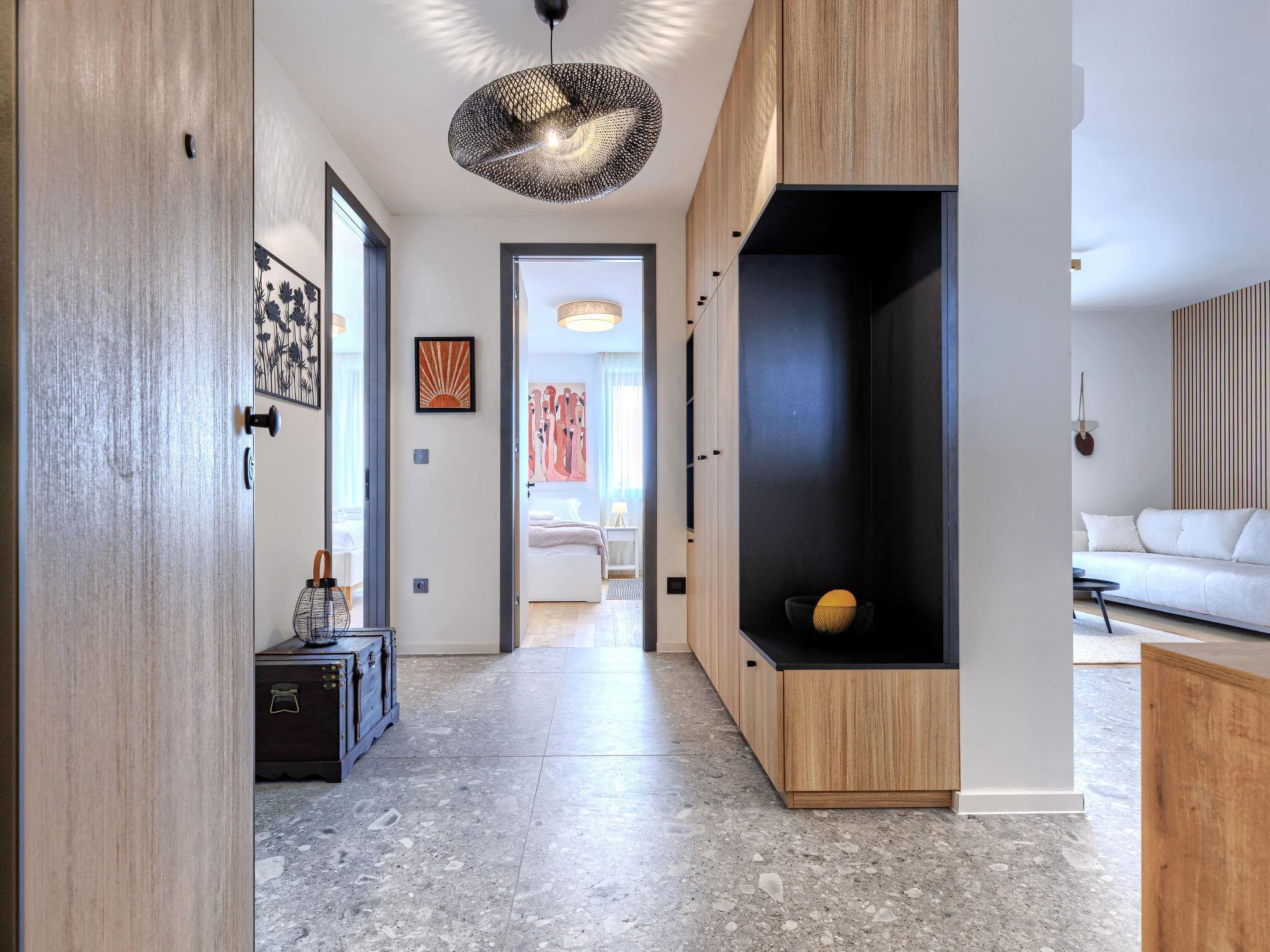 Modern apartment block. 100 m from the centre of Pula, 500 m from the sea, 3 km from the beach, located by a road. In the house: internet access, lift, central heating system, air conditioning, washing machine, tumble dryer. Roofed, parking, single garage. Shop 70 m, supermarket 200 m, restaurant 100 m, café 70 m, 5 minute walk to the centre, bus stop 50 m, railway station 1 km, ferry 500 m, sandy beach 9 km pebble beach 3 km, rocky beach 3 km. Nearby attractions: Amphitheater 500 m, National park Brijuni 6 km.