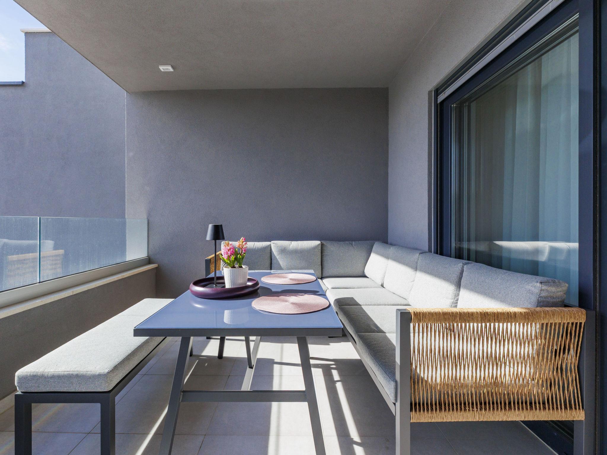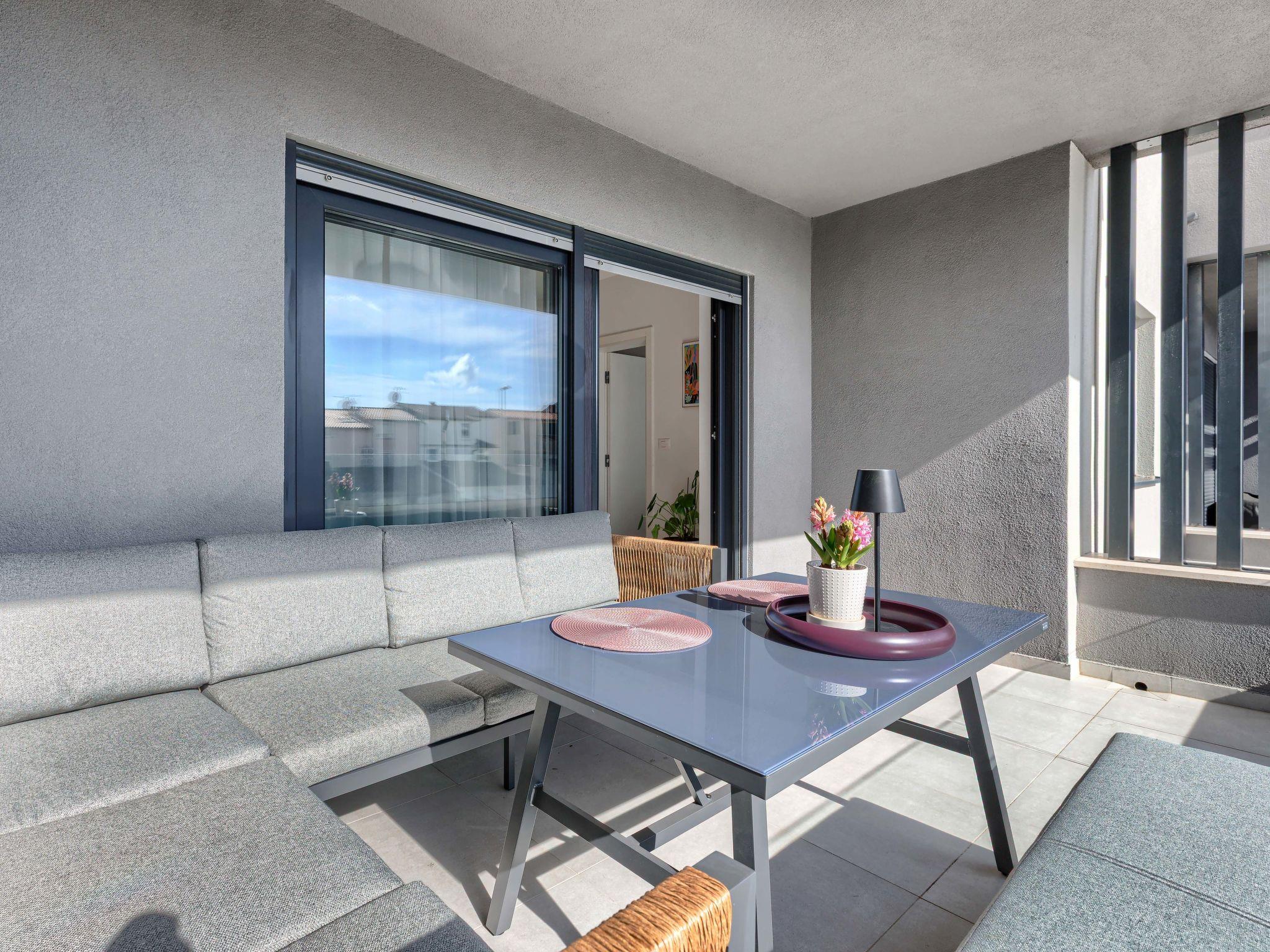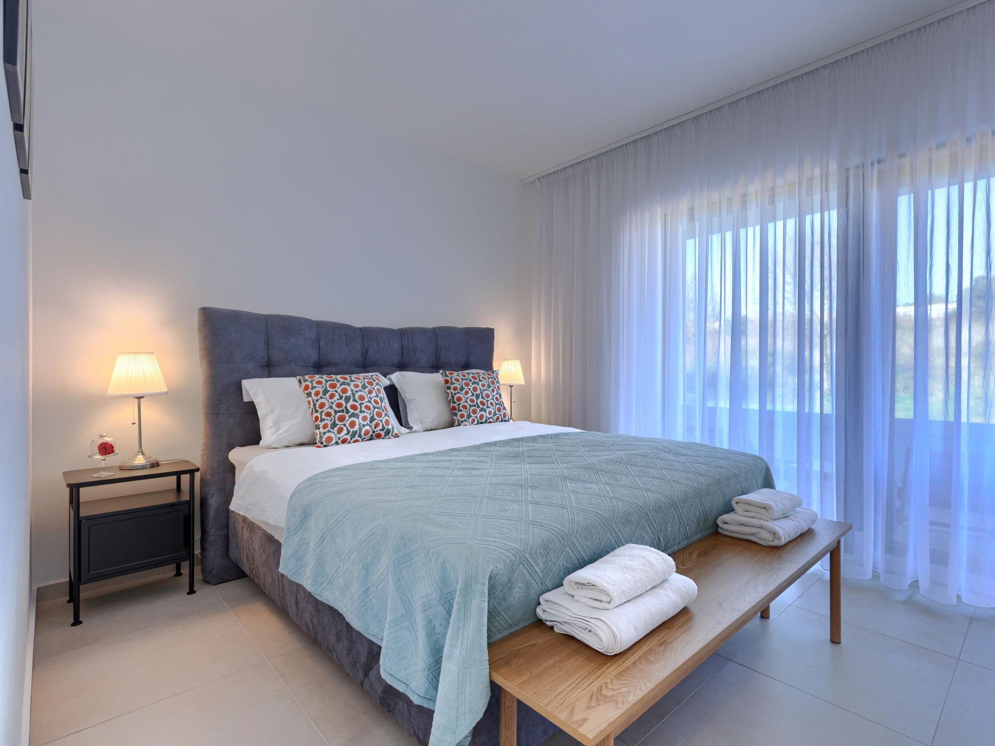 3-room apartment 65 m2 on 1st floor. Living/dining room with 1 sofabed (160 cm, length 200 cm), satellite TV (flat screen), air conditioning. Exit to the terrace. 1 room with 1 french bed (160 cm, length 200 cm), air conditioning. Exit to the terrace. 1 room with 1 french bed (160 cm, length 200 cm), air conditioning. Open kitchen (oven, dishwasher, 4 ceramic glass hob hotplates, toaster, kettle, microwave, freezer, electric coffee machine). Shower/WC. Underfloor heating. Terrace 12 m2, roofed, terrace 6 m2, roofed. Terrace furniture. Facilities: washing machine, mosquito net, hair dryer. Internet (WiFi, free). Please note: fire extinguisher.