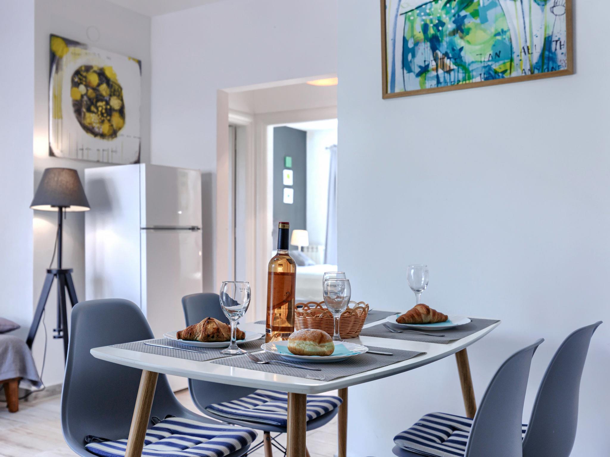 "Villa Canaria 2", 3-room apartment 55 m2 on 1st floor. Beautiful furnishings: living/dining room with satellite TV (flat screen), air conditioning. Exit to the balcony. 2 rooms, each room with 1 french bed (160 cm, length 200 cm). Open kitchen (2 ceramic glass hob hotplates, kettle, microwave, freezer, electric coffee machine). Shower/WC. No heating option. Balcony 8 m2, terrace 20 m2. Balcony furniture, barbecue. Facilities: Internet (WiFi, free).