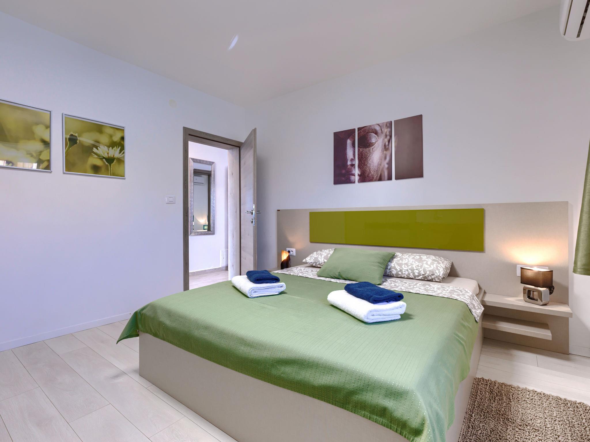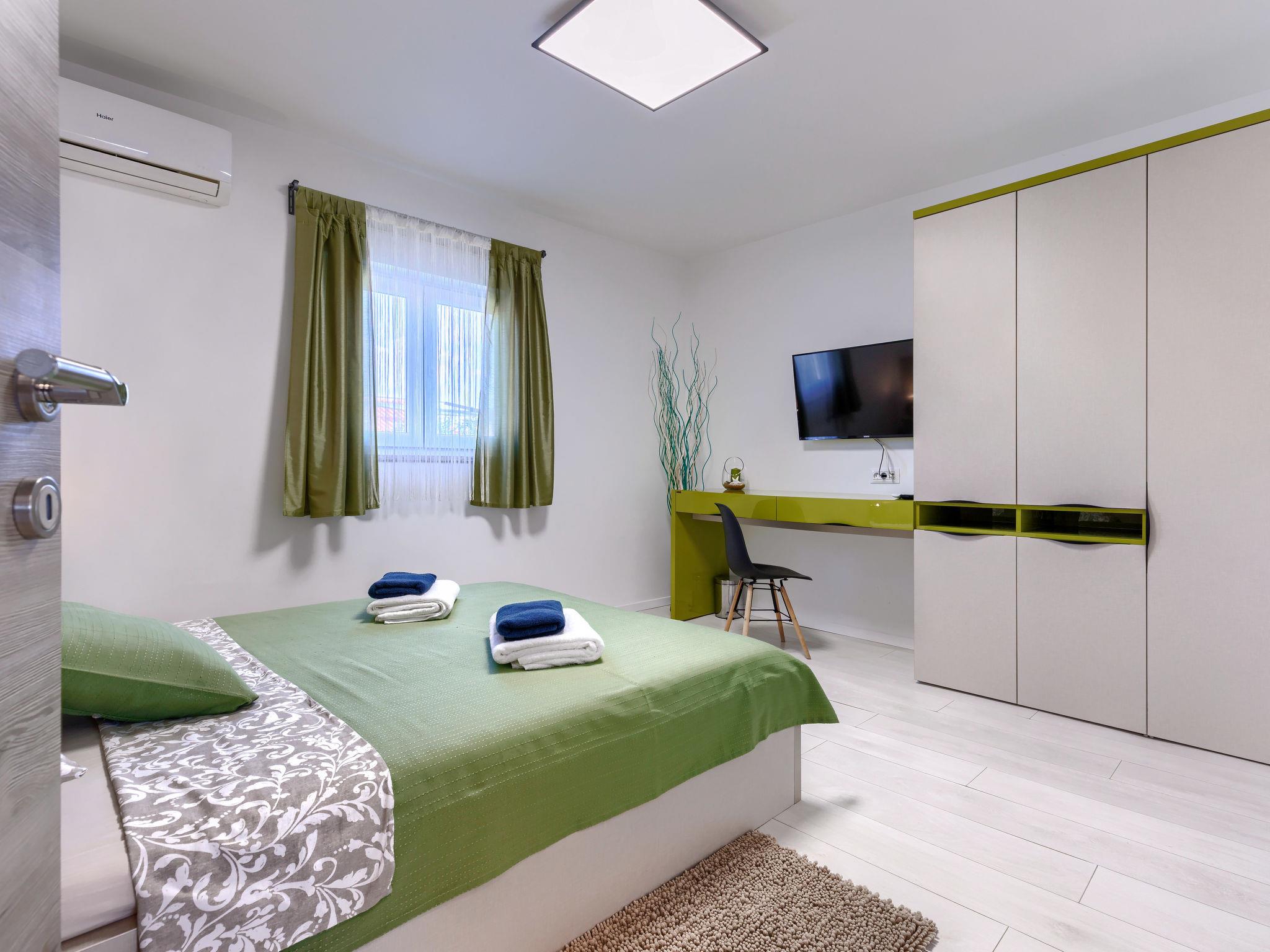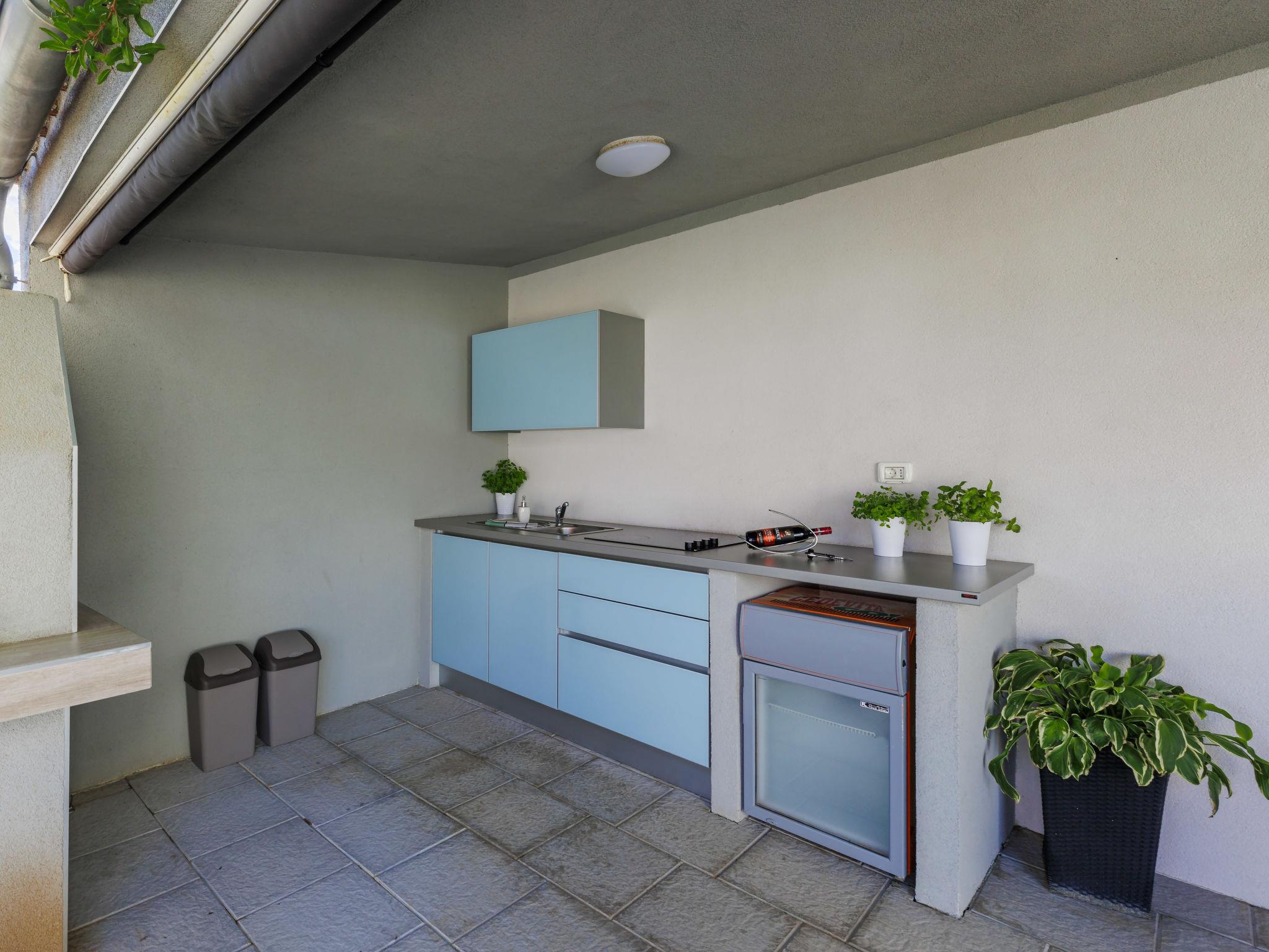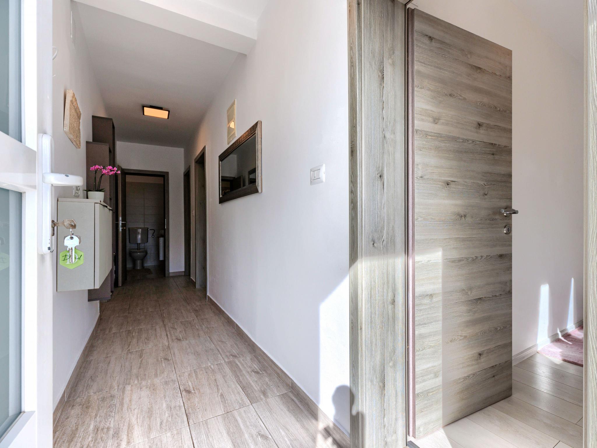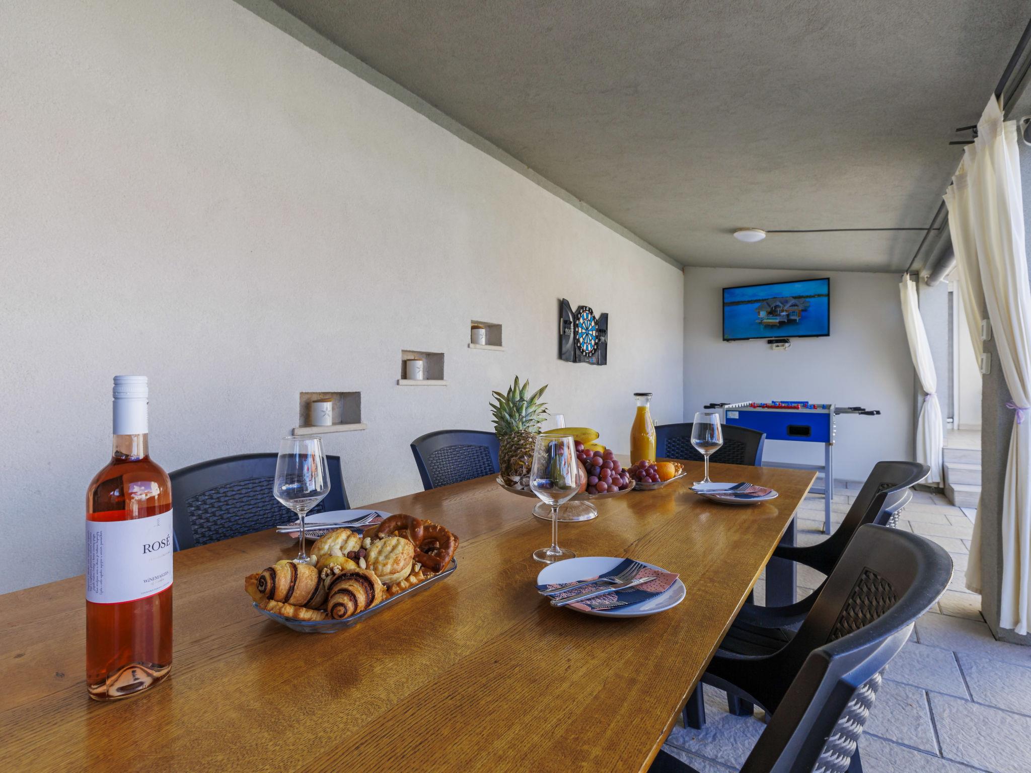 Beautiful 2-family house "David". In the hamlet Loborika 6.5 km from the centre of Pula, 6.5 km from the centre of Marcana, in a quiet, sunny position, 9 km from the sea. Private: property 250 m2 (fenced), small, beautiful garden with wildlife garden, swimming pool angular (7 x 3 m, 24 m2, depth 140 cm, seasonal availability: 27.Apr. - 28.Sep.) with internal staircase. Outdoor shower, table tennis, terrace (27 m2), barbecue, children's playground (swing). In the house: internet access. Parking at the house on the premises. Shop 1.5 km, supermarket 5 km, restaurant 1 km, café 1.5 km, bus stop 1.2 km, pebble beach 12 km. Tennis 15 km, riding stable 5 km, walking paths from the house 100 m, cycle lane 150 m. Nearby attractions: Amphitheater 8.5 km. Available: darts (included). Outdoor kitchen (2 ceramic glass hob hotplates, fridge).