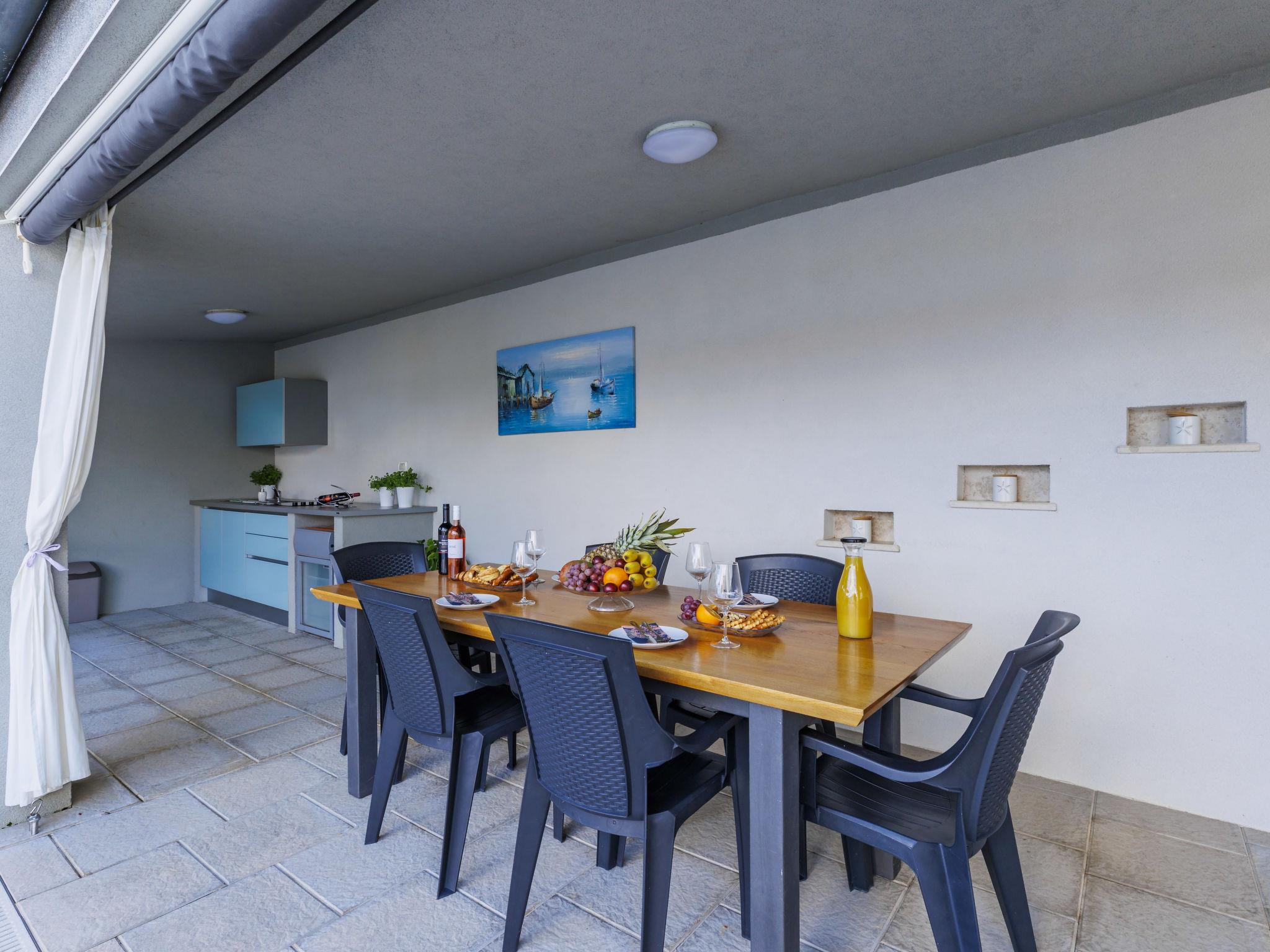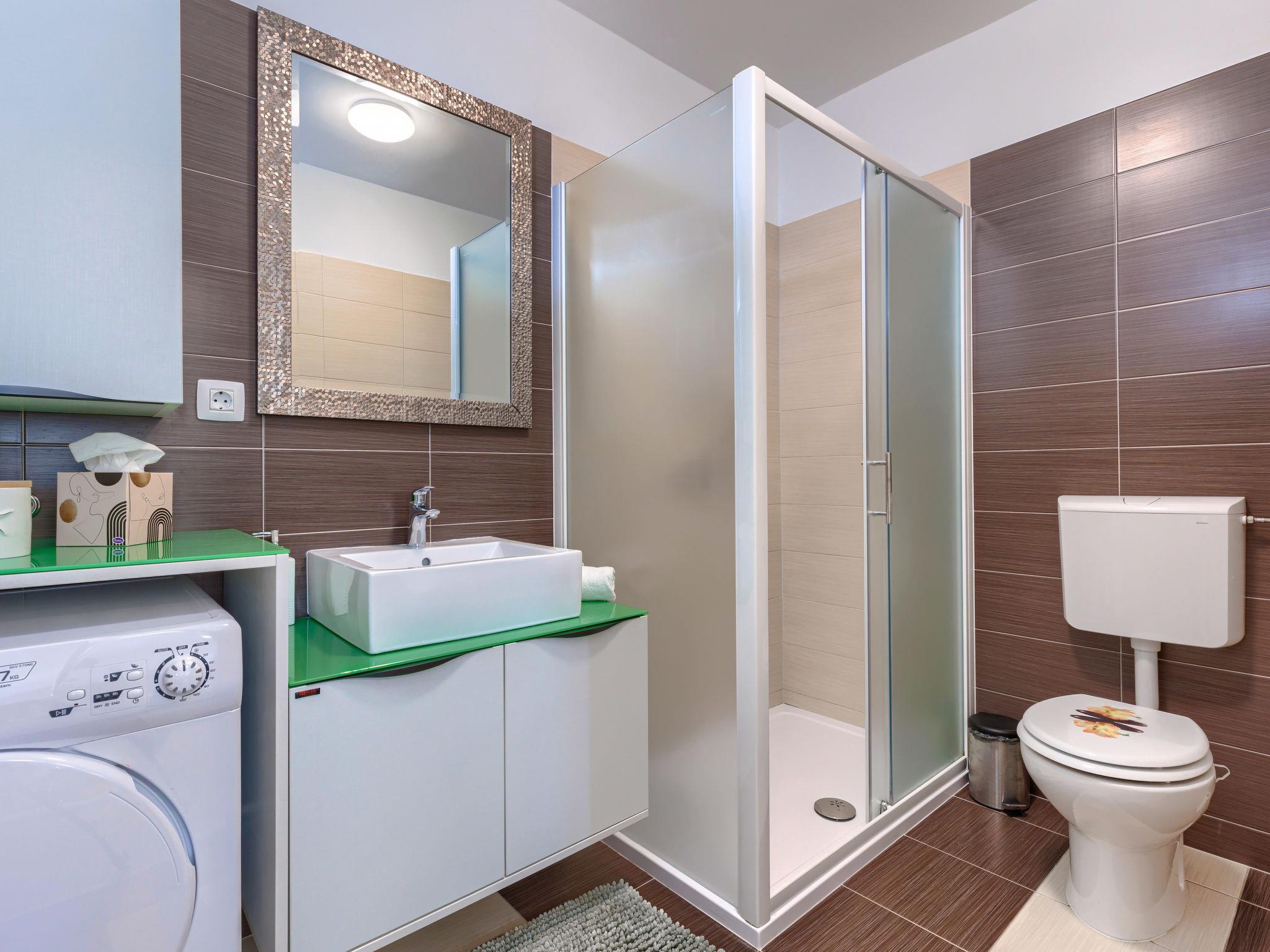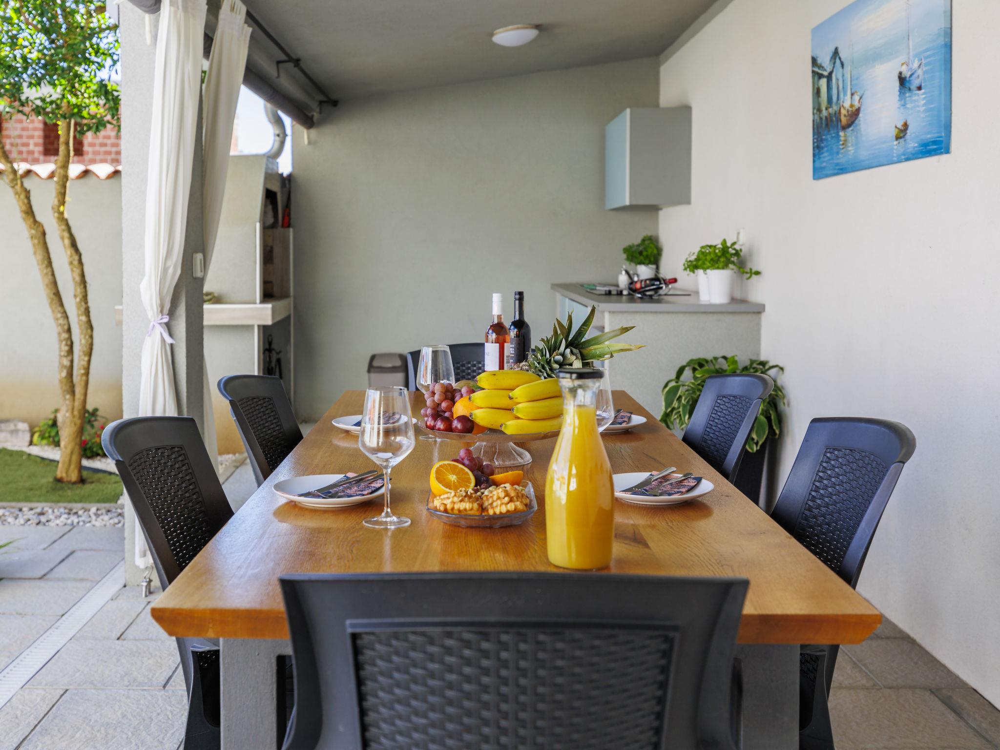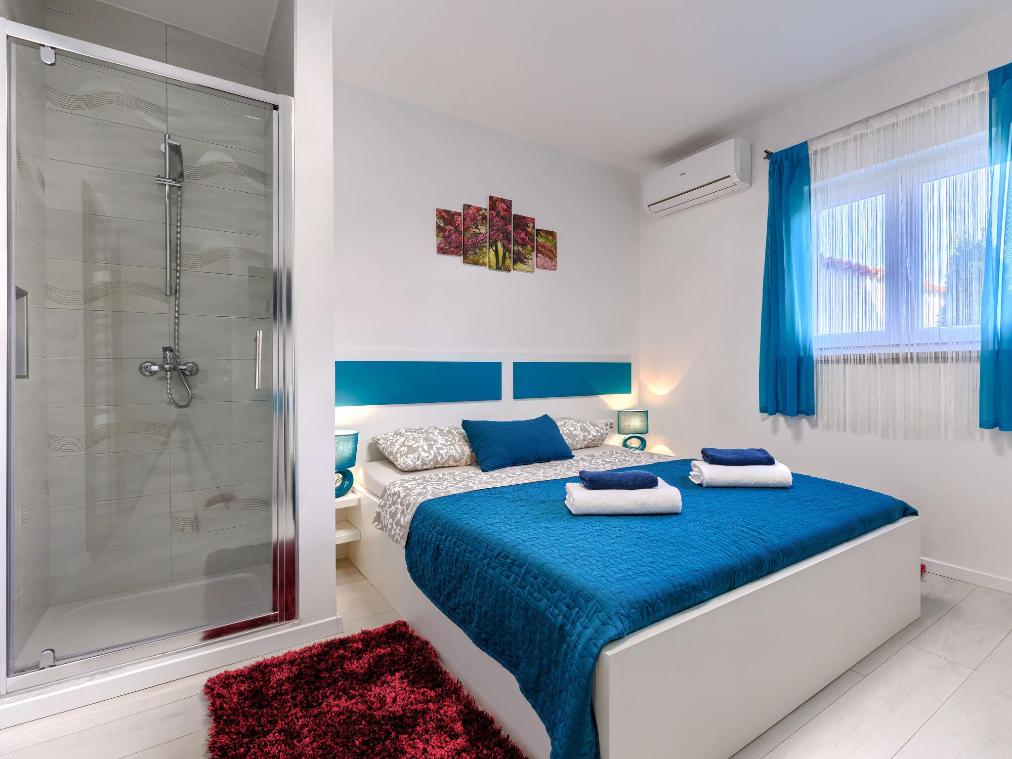 Beautiful 2-family house "David". In the hamlet Loborika 6.5 km from the centre of Pula, 6.5 km from the centre of Marcana, in a quiet, sunny position, 9 km from the sea. Private: property 250 m2 (fenced), small, beautiful garden with wildlife garden, swimming pool angular (7 x 3 m, 24 m2, depth 140 cm, seasonal availability: 27.Apr. - 28.Sep.) with internal staircase. Outdoor shower, table tennis, terrace (27 m2), barbecue, children's playground (swing). In the house: internet access. Parking at the house on the premises. Shop 1.5 km, supermarket 5 km, restaurant 1 km, café 1.5 km, bus stop 1.2 km, pebble beach 12 km. Tennis 15 km, riding stable 5 km, walking paths from the house 100 m, cycle lane 150 m. Nearby attractions: Amphitheater 8.5 km. Available: darts (included). Outdoor kitchen (2 ceramic glass hob hotplates, fridge).