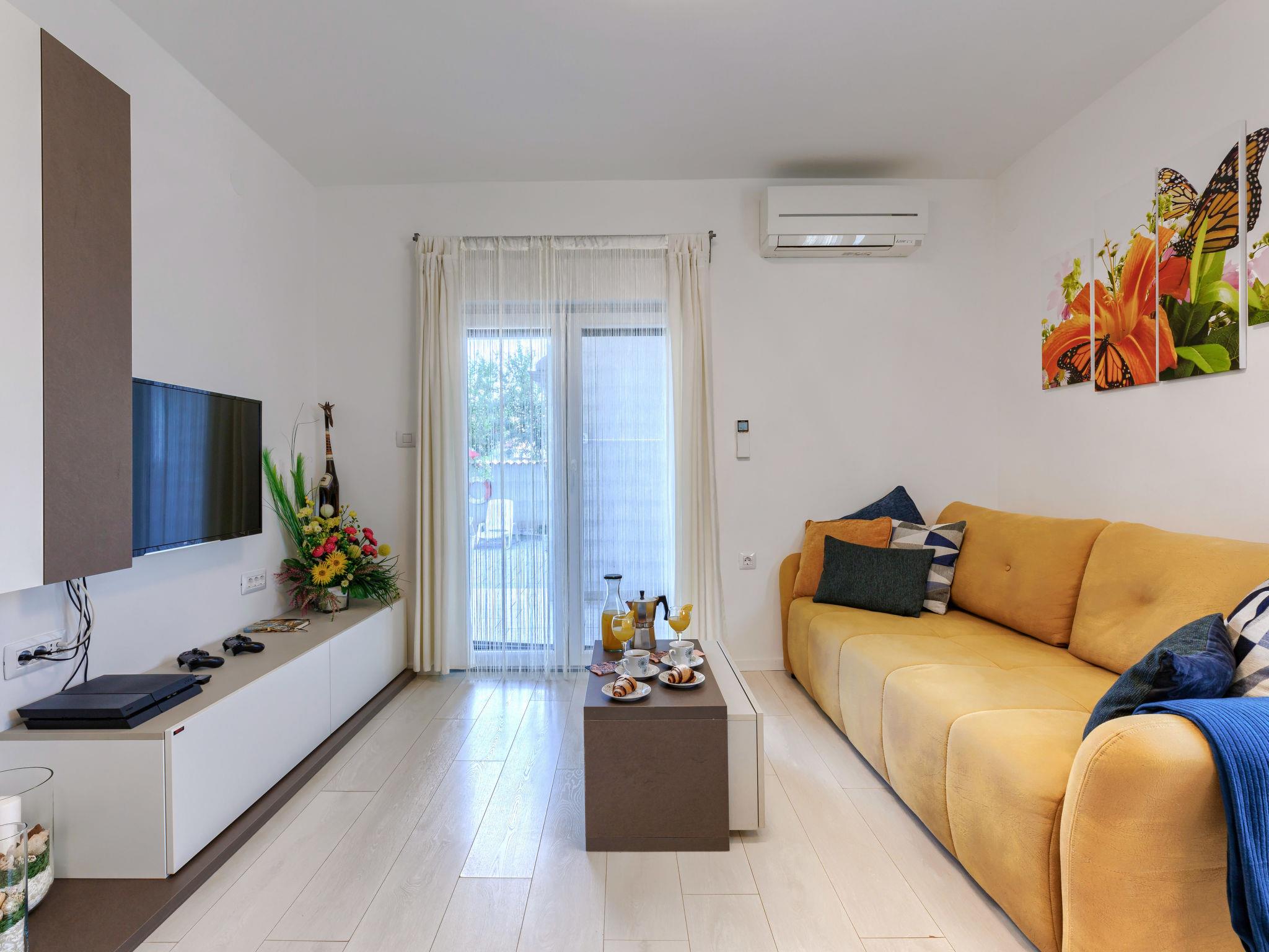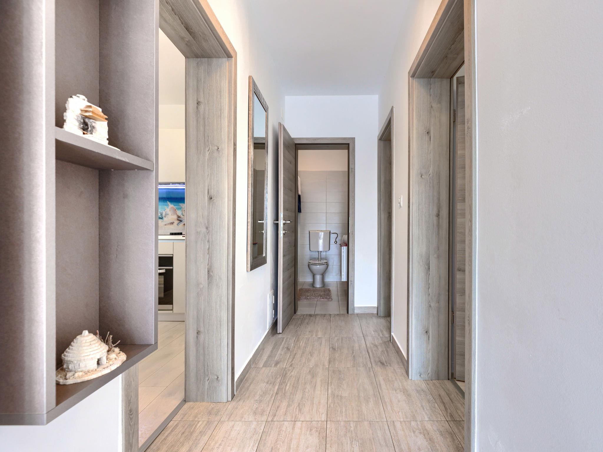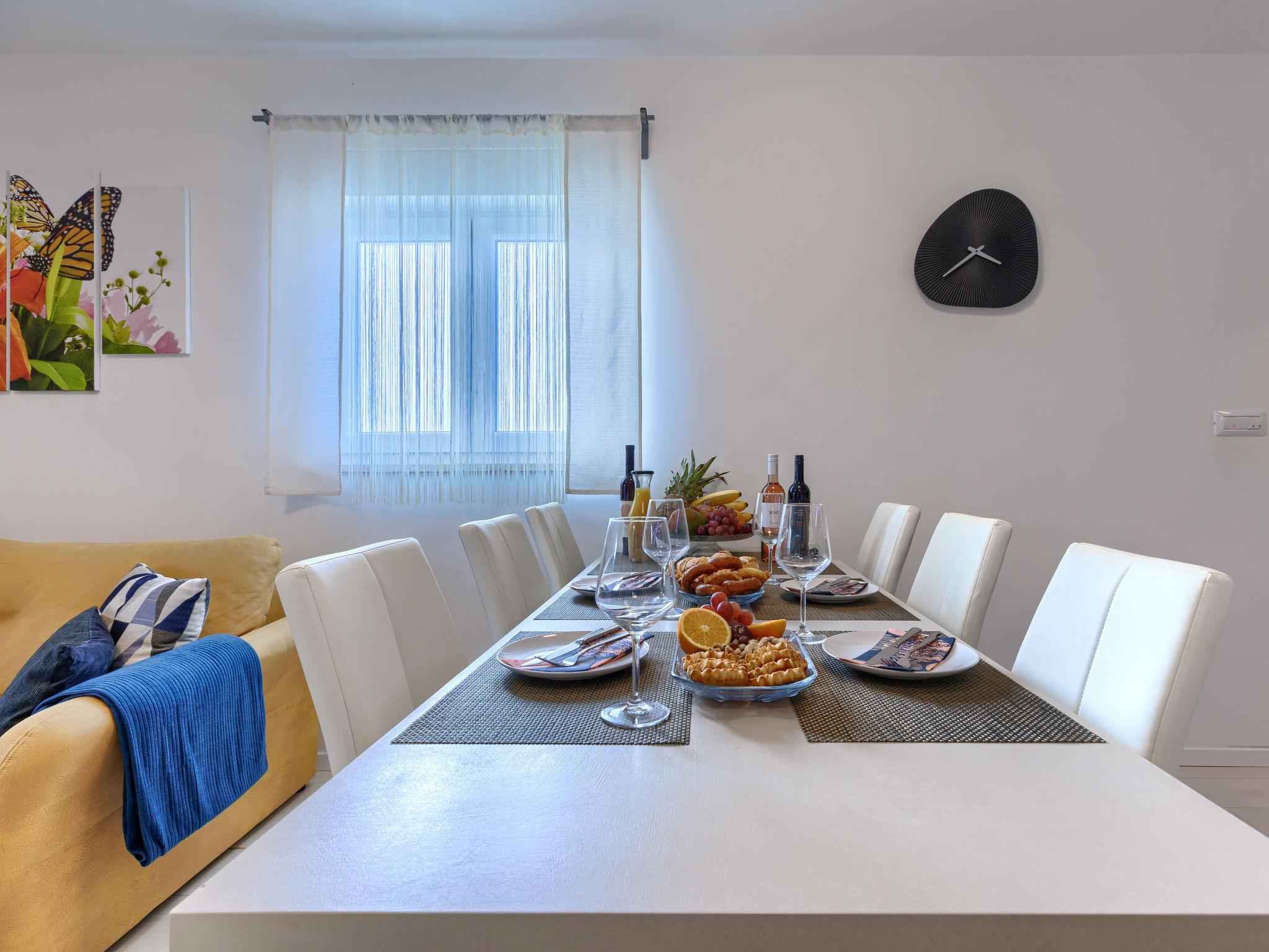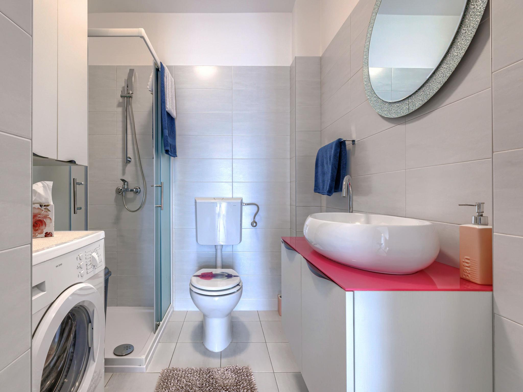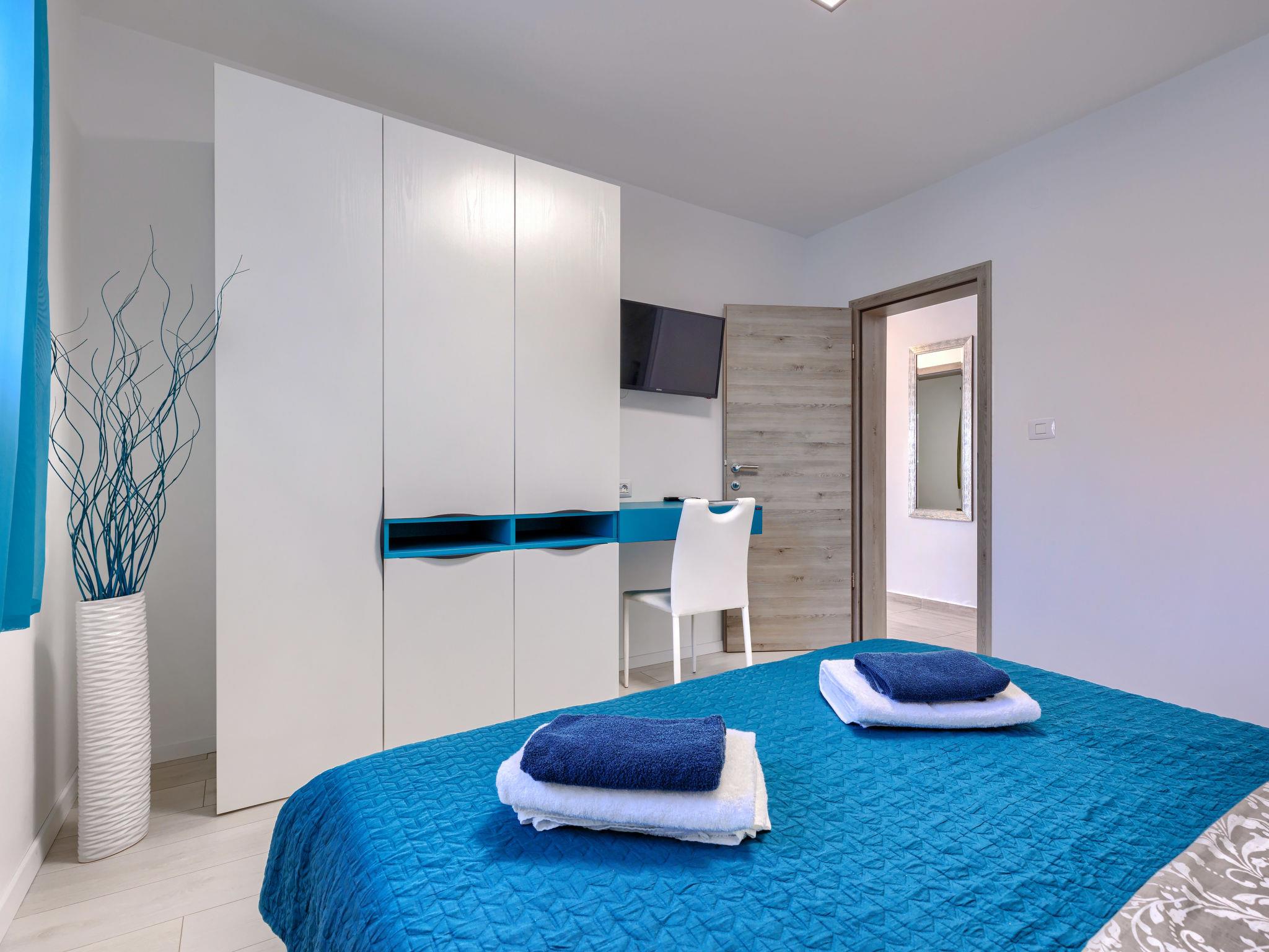 Beautiful 2-family house "David". In the hamlet Loborika 6.5 km from the centre of Pula, 6.5 km from the centre of Marcana, in a quiet, sunny position, 9 km from the sea. Private: property 250 m2 (fenced), small, beautiful garden with wildlife garden, swimming pool angular (7 x 3 m, 24 m2, depth 140 cm, seasonal availability: 27.Apr. - 28.Sep.) with internal staircase. Outdoor shower, table tennis, terrace (27 m2), barbecue, children's playground (swing). In the house: internet access. Parking at the house on the premises. Shop 1.5 km, supermarket 5 km, restaurant 1 km, café 1.5 km, bus stop 1.2 km, pebble beach 12 km. Tennis 15 km, riding stable 5 km, walking paths from the house 100 m, cycle lane 150 m. Nearby attractions: Amphitheater 8.5 km. Available: darts (included). Outdoor kitchen (2 ceramic glass hob hotplates, fridge).