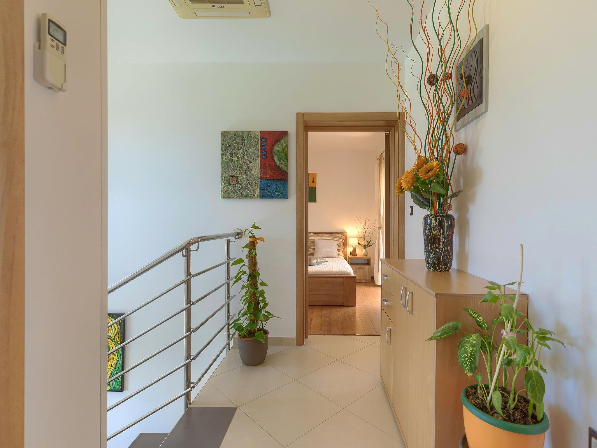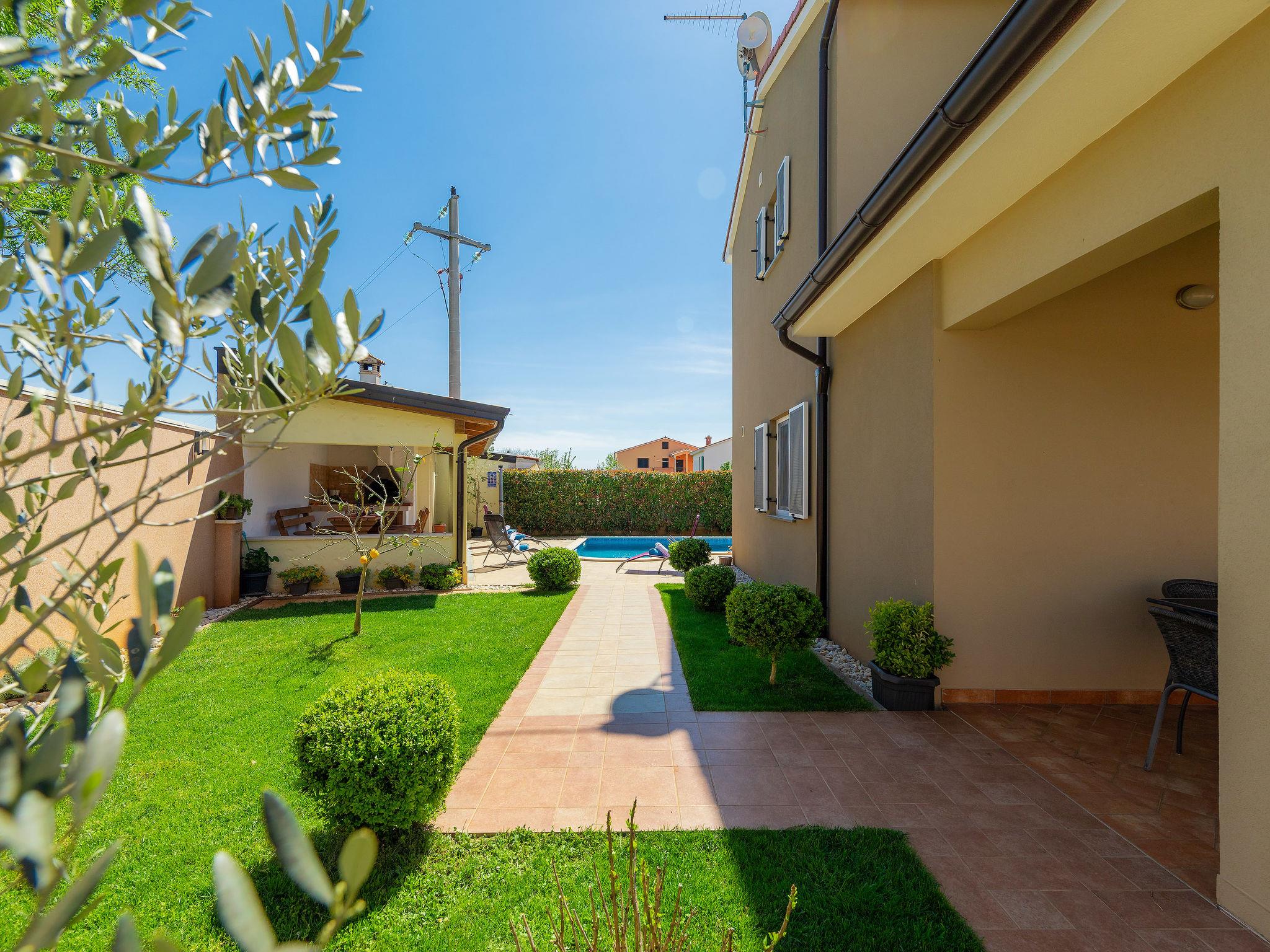 Beautiful single-family house "Villa Zara", 2 storeys. In the hamlet Loborika 6 km from the centre of Pula, in a quiet, sunny position, 7 km from the sea. Private: property 500 m2 (fenced), small garden with lawn and wildlife garden, swimming pool (32 m2, depth 140 cm, seasonal availability: 15.Apr. - 15.Oct.) with internal staircase. Unconventional pool shape. WC in the pool area, outdoor shower, terrace (20 m2), garden furniture, barbecue, pool maintenance by the owner/gardener. In the house: internet access, washing machine. Parking (for 2 cars) at the house on the premises, single garage. Shop 250 m, restaurant 350 m, bus stop 270 m, sandy beach 11 km pebble beach 8 km. Surf school 13 km, tennis 11 km, riding stable 13 km, walking paths from the house 100 m, cycle lane 150 m. Nearby attractions: Amphitheater 7 km.