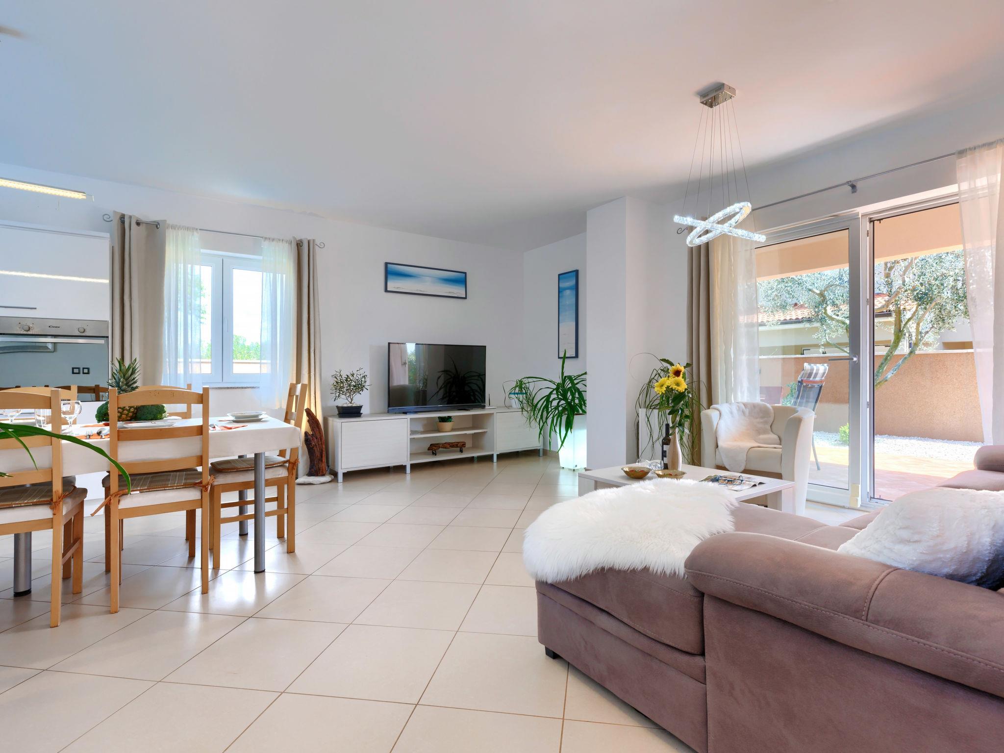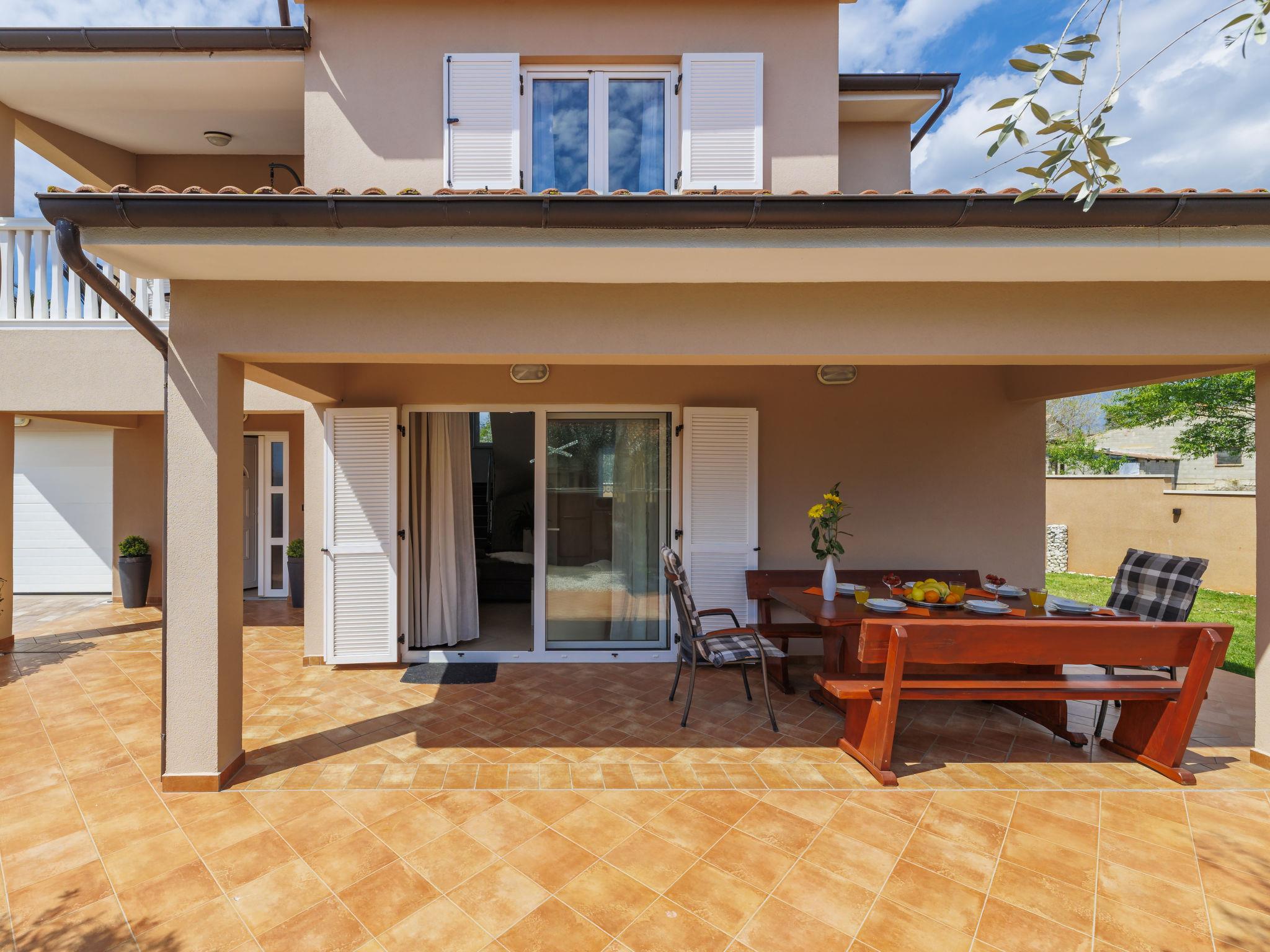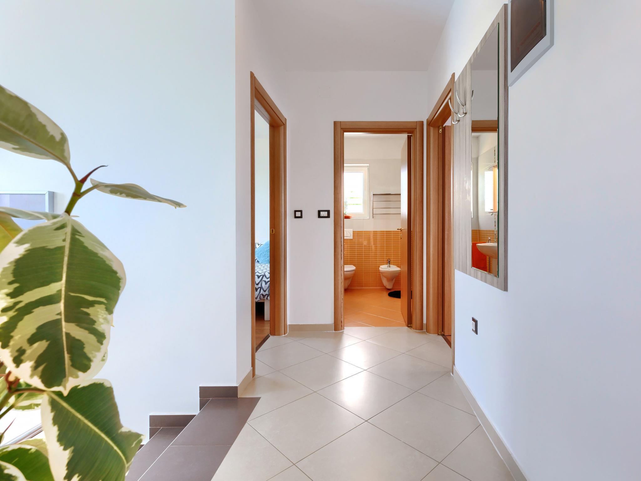Beautiful single-family house "Villa Vesna", 2 storeys. In the hamlet Loborika 6 km from the centre of Pula, in a quiet, sunny position, 7 km from the sea. Private: property 500 m2 (fenced), small garden with lawn and wildlife garden, swimming pool angular (8 x 4 m, depth 140 cm, seasonal availability: 15.Apr. - 15.Oct.) with internal staircase. Outdoor shower, terrace (20 m2), garden furniture, barbecue (swing), pool maintenance by the owner/gardener. In the house: internet access, table football, trampoline, washing machine. Available: bicycles (4), children's bicycles (1). Parking (for 2 cars) at the house on the premises. E-charging station. Shop 250 m, restaurant 350 m, bus stop 250 m, sandy beach 11 km pebble beach 8 km. Surf school 13 km, tennis 11 km, riding stable 13 km, walking paths from the house 100 m, cycle lane 150 m. Nearby attractions: Amphitheater 7 km.