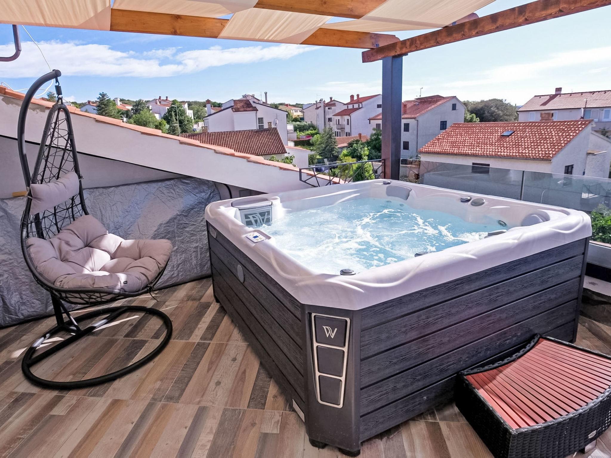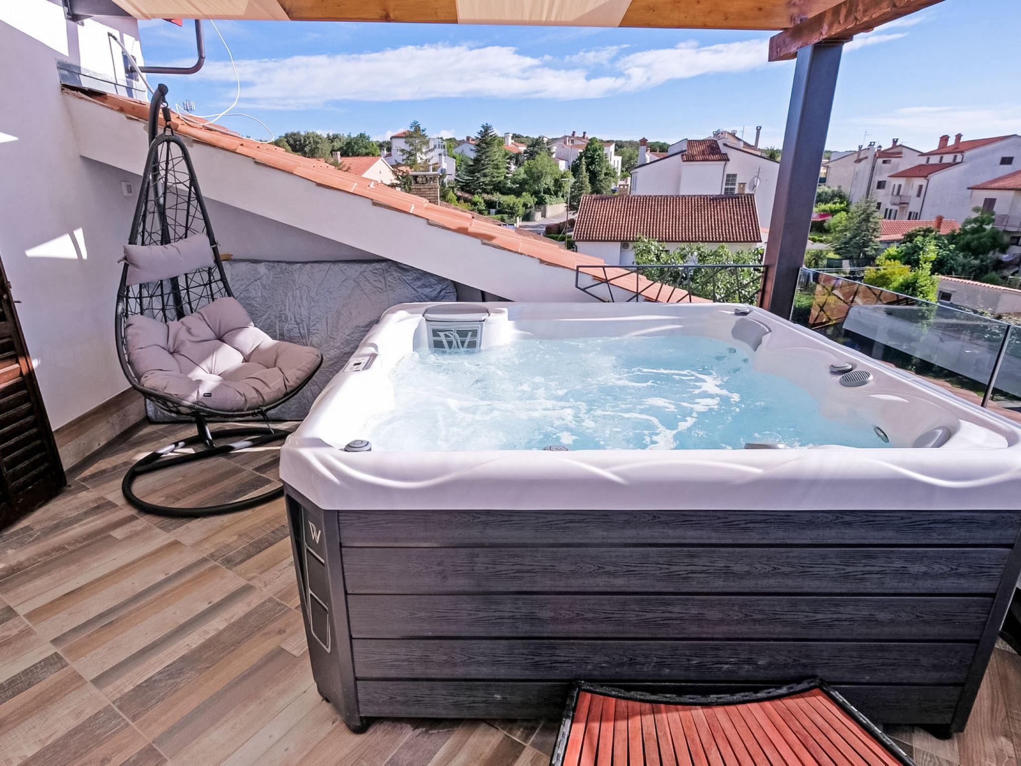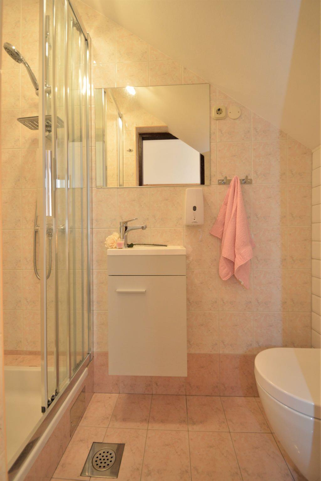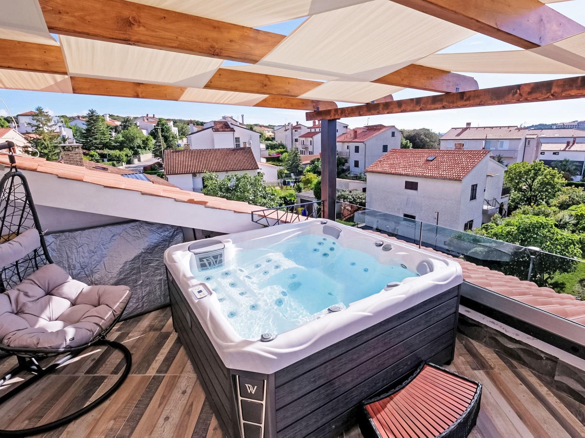 2-family house "Dragica", 3 storeys. 200 m from the centre of Pješcana Uvala, 5 km from the centre of Pula, 250 m from the sea, 250 m from the beach. For shared use: property 950 m2 (fenced), well-kept garden with trees. Barbecue. Private: hot tub. In the house: internet access. Parking (for 4 cars) on the premises. E-charging station. Shop 200 m, restaurant 50 m, bus stop 85 m, rocky beach 250 m. Marina 1 km. Groups of teenagers on request only. Please note: the owner lives in the same residence.