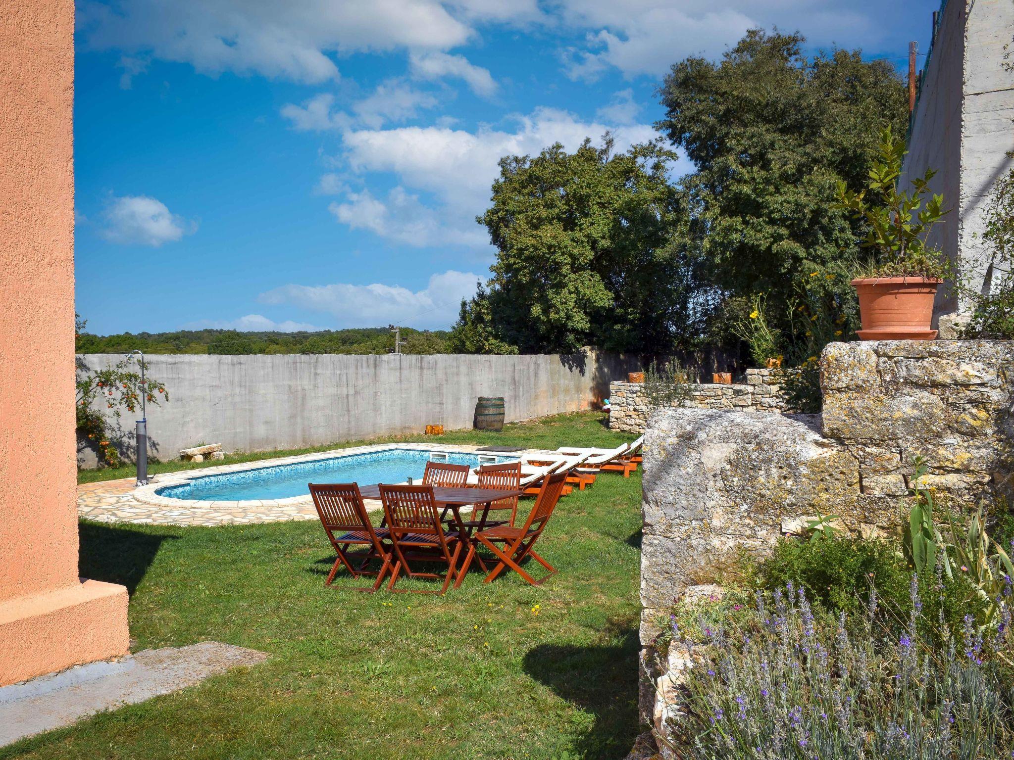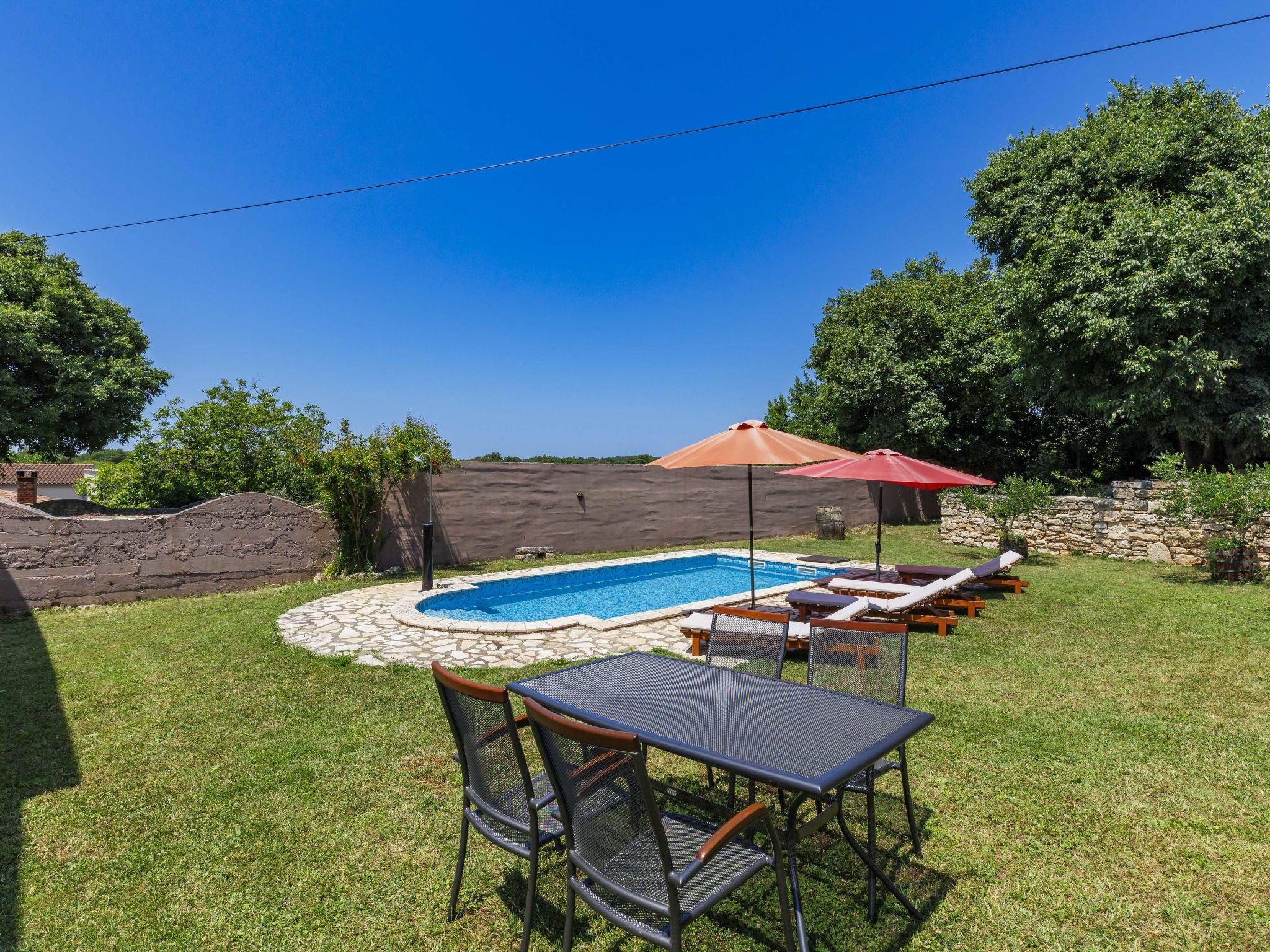 Single-family house "Laura", 2 storeys. In the resort 300 m from the centre of Valtura, on the outskirts, 10 km from the centre of Pula, 10 km from the sea. Private: property 800 m2 (fenced) with lawn and trees, swimming pool (24 m2, depth 130 cm, seasonal availability: 01.May. - 10.Oct.). Outdoor shower, garden furniture, barbecue. In the house: internet access, washing machine. Parking (for 2 cars) at the house on the premises. Shop 300 m, bus stop 450 m, pebble beach 12 km. Marina 11 km.