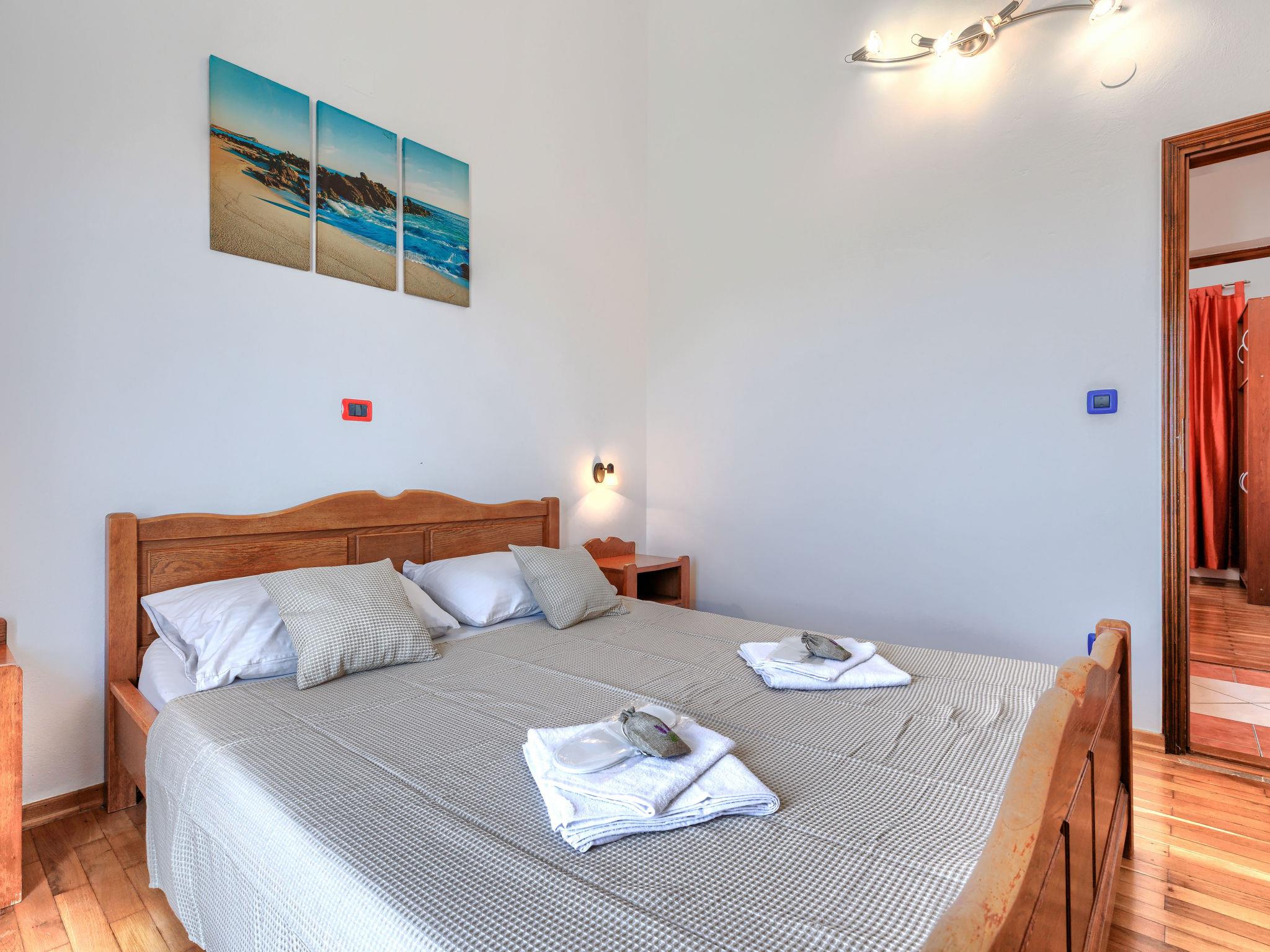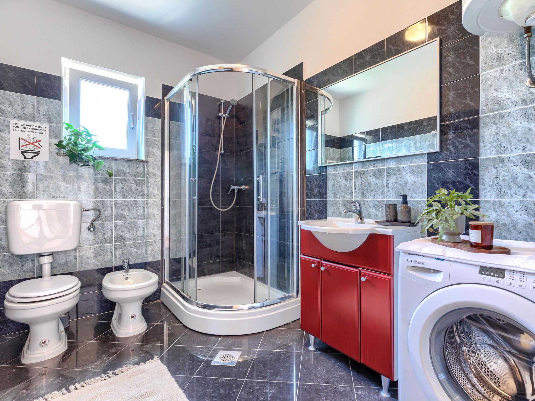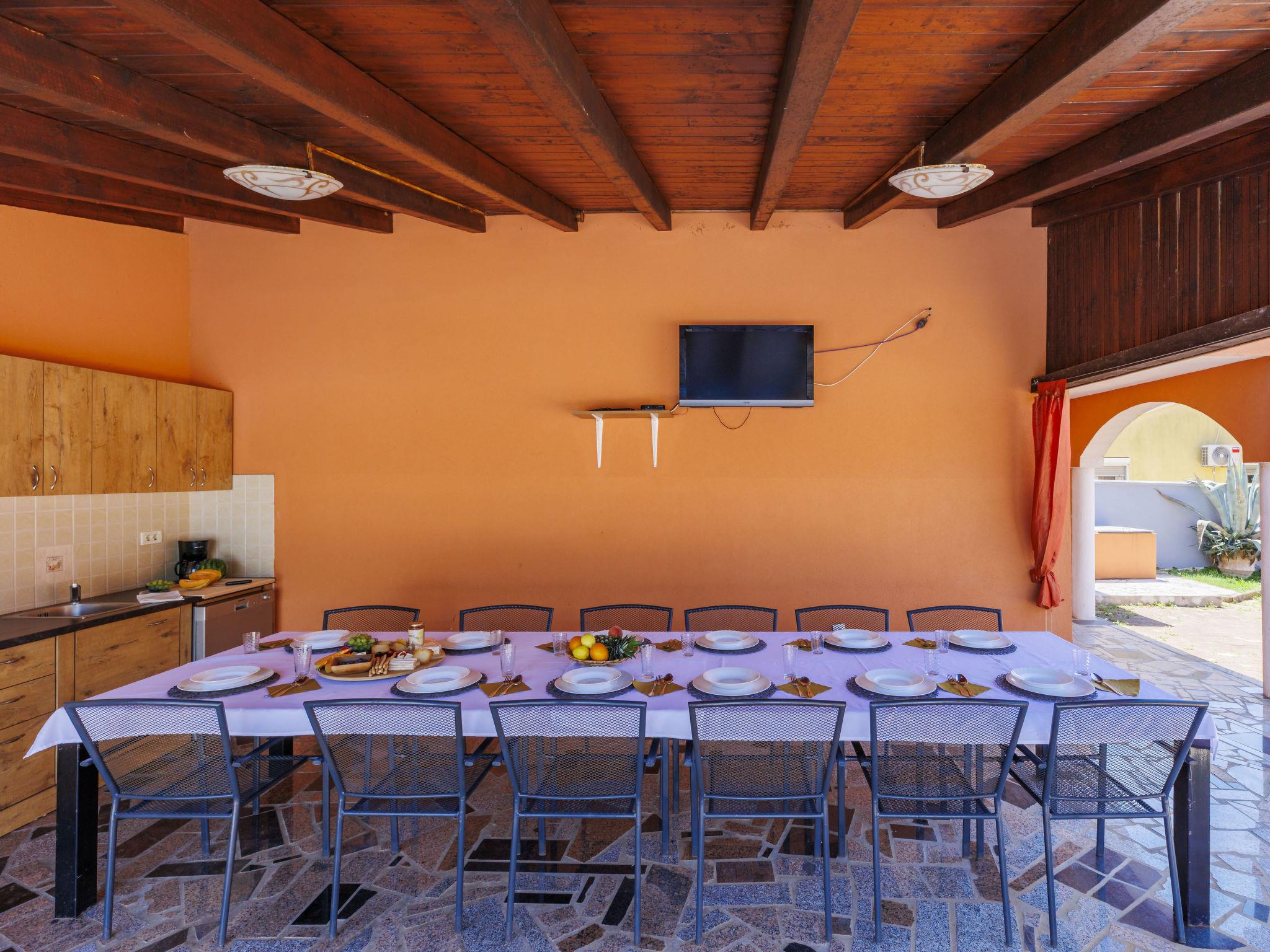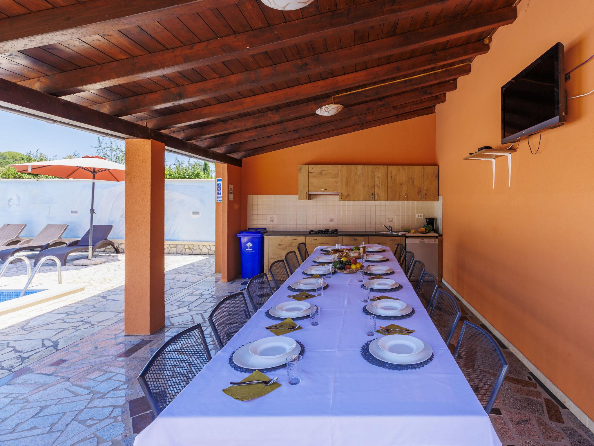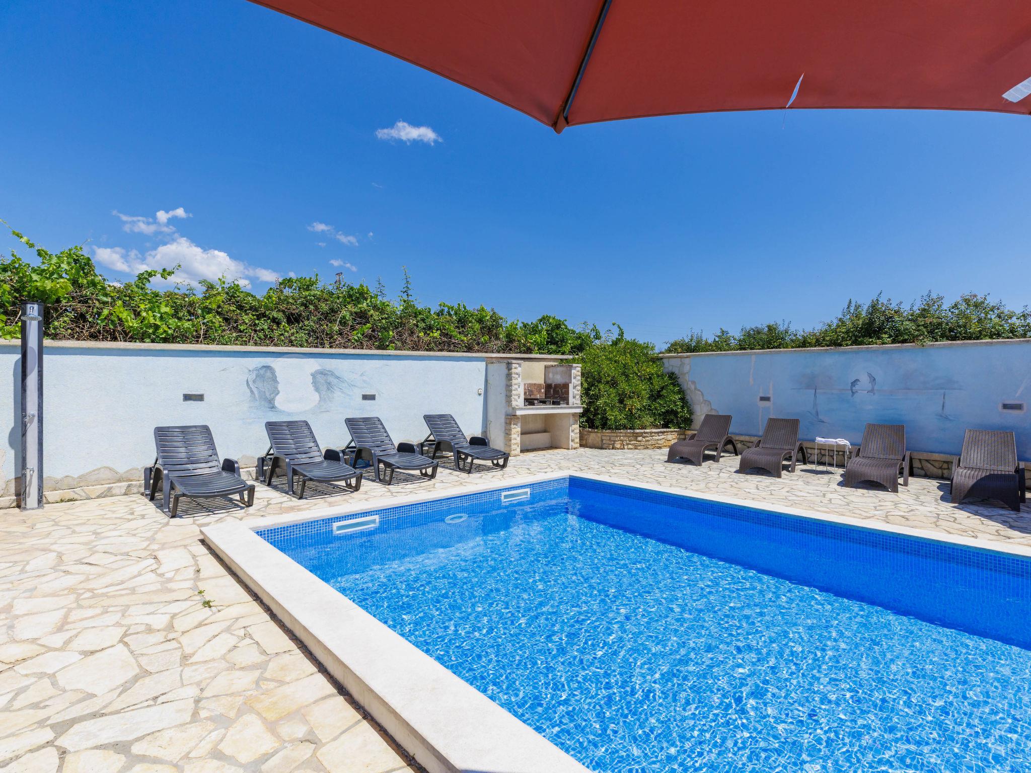 Single-family house "VIlla Eldina", 2 storeys. In the hamlet Škatari 4 km from the centre of Pula, 4 km from the sea, 4 km from the beach, in a cul-de-sac. Private: property 1'000 m2 (fenced) with lawn, swimming pool angular (8 x 4 m, depth 150 cm, seasonal availability: 13.May. - 07.Oct.). WC in the pool area, outdoor shower, barbecue (slide, swing). In the house: internet access, washing machine. Motor access to the house (200 m via unmade road). Parking (for 4 cars) at the house on the premises. Shop 1 km, restaurant 1 km, bus stop 300 m, pebble beach 4 km, rocky beach 4 km. Please note: airfield 8 km from the property. Outdoor kitchen (cooking stove, refrigerator).