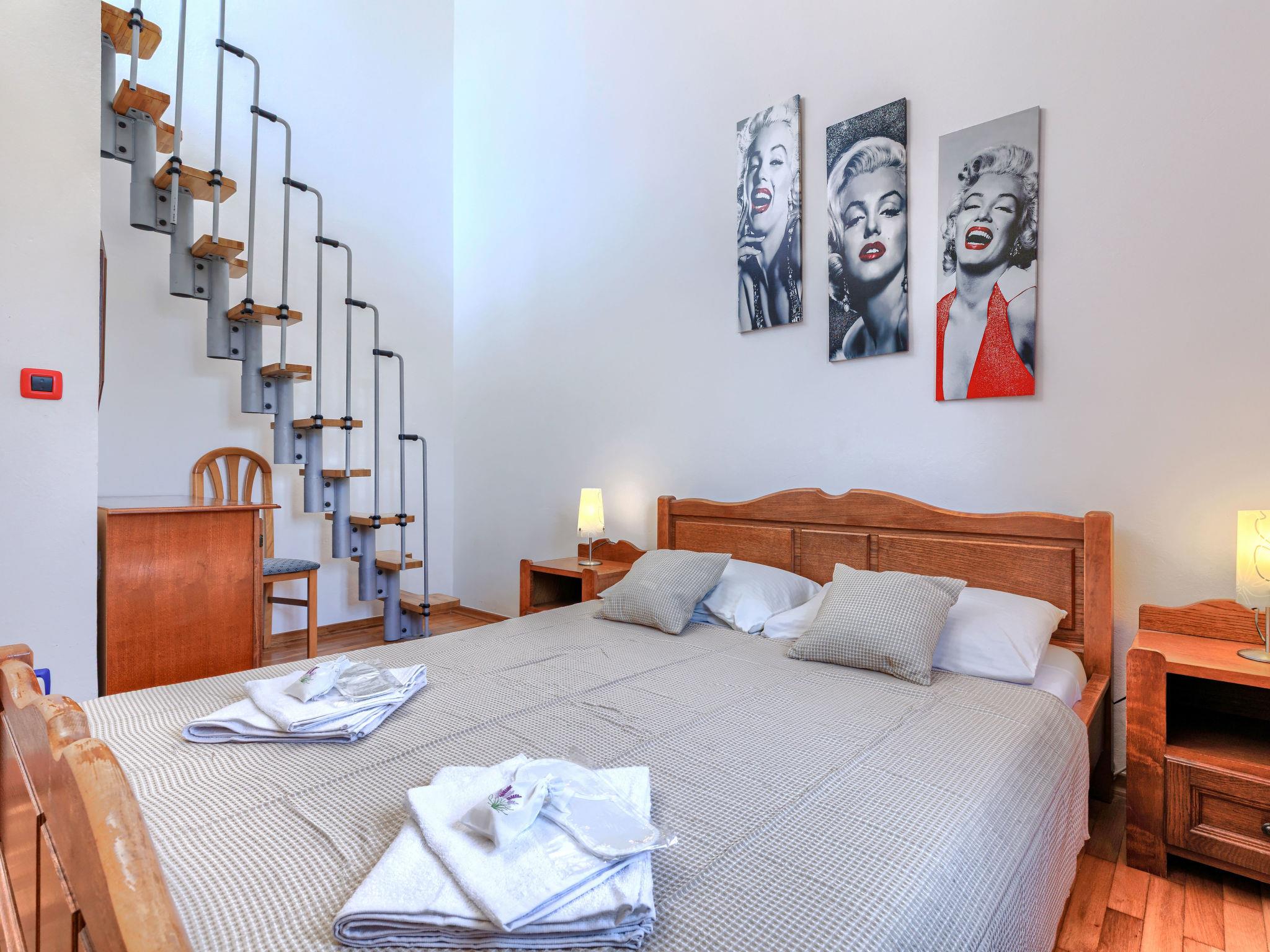 8-room house 200 m2 on 2 levels. Living room with satellite TV, DVD and air conditioning. Entrance hall with air conditioning. 1 room with 1 french bed (160 cm). Exit to the terrace. 1 room with 2 beds. Dining room. 1 room with 1 french bed (160 cm, length 200 cm). Open kitchen (1 hot plate, oven, dishwasher, 3 gas rings, toaster, kettle, microwave, freezer, electric coffee machine). Shower/WC, sep. WC. Upper floor: (exterior staircase) living/dining room with satellite TV, DVD and air conditioning. Entrance hall with air conditioning. 1 room with 1 french bed (160 cm). Exit to the balcony. 1 room with 1 french bed (160 cm). 1 room with 2 beds. Kitchen (4 hot plates, oven, toaster, kettle, electric coffee machine). Exit to the balcony. Shower/WC. No heating option. 2 balconies, terrace. Terrace furniture, deck chairs. Facilities: iron, baby cot. Internet (WiFi, free). Please note: non-smoking house.