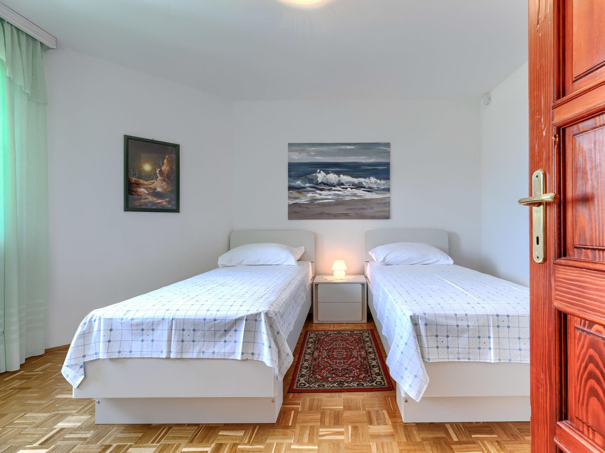 3-room apartment 100 m2 on 1st floor. Living/dining room with satellite TV and air conditioning. Exit to the balcony. 1 room with 1 double bed. Exit to the balcony. 1 room with 1 double bed. Open kitchen (1 hot plate, Gas stove, 3 gas rings, toaster, kettle, microwave, freezer, electric coffee machine). Sep. WC, bath/shower/WC with corner bath. Air-conditioning, forced-air heating. 3 balconies. Balcony furniture. Panoramic view. Facilities: washing machine. Internet (WiFi, free). Please note: non-smoking house. Private entrance.