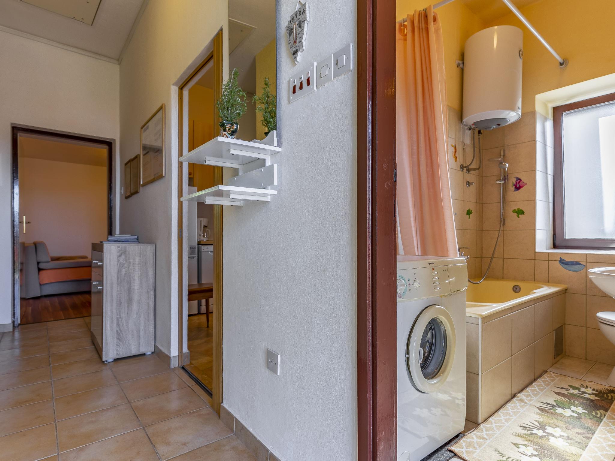 Banjole: 2-family house "Vladimir". In the centre of Banjole 7 km from the centre of Pula, 500 m from the sea, 500 m from the beach. For shared use: property 800 m2 (fenced) with lawn. Private: terrace, garden furniture, barbecue. In the house: internet access. Parking on the premises. Shop 20 m, restaurant 100 m, bus stop 300 m, pebble beach, rocky beach 500 m. Please note: the owner lives in the same residence. Airfield 14 km from the property. Footpath to the beach.