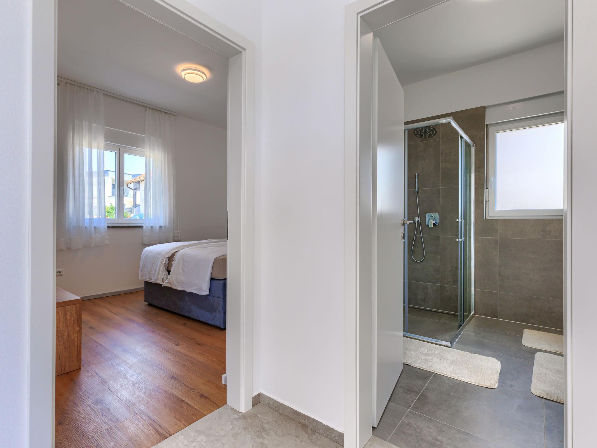 Peroj 10 km from Pula: Beautiful villa "Kliska", 2 storeys. 3.5 km from the centre of Fažana, in a quiet, sunny position, 600 m from the sea. Private: property 526 m2 (fenced) with lawn and wildlife garden, swimming pool angular (8 x 4 m, depth 140 cm, seasonal availability: 01.May. - 15.Oct.) with internal staircase. Outdoor shower, barbecue, pool maintenance by the owner/gardener. In the house: internet access, washing machine. Parking (for 3 cars). Grocery, restaurant 500 m, bus stop 1.7 km, pebble beach, rocky beach 600 m. Tennis 800 m, riding stable 1.5 km. Nearby attractions: Amphitheatre 10 km. Please note: airfield 12 km from the property.