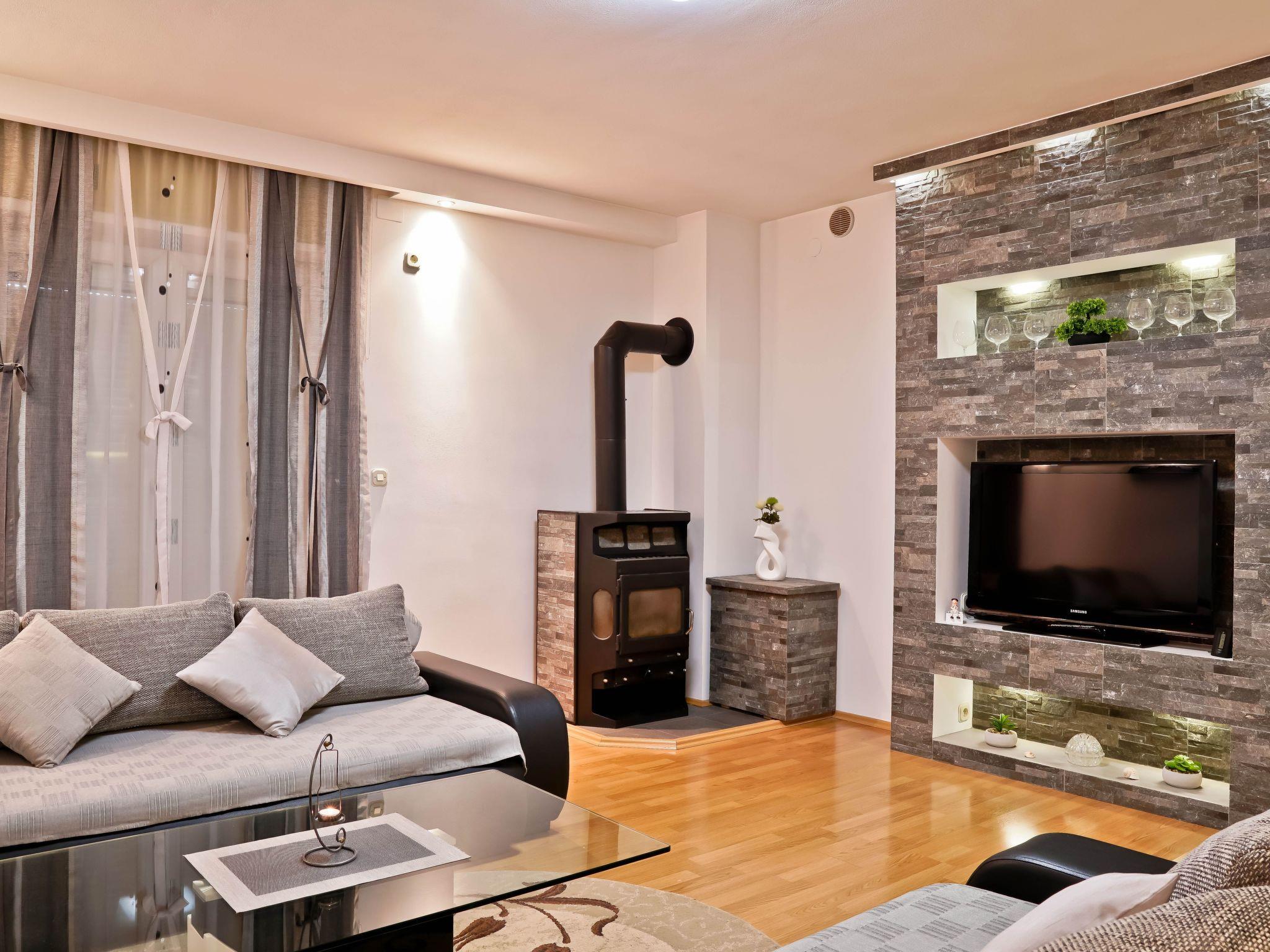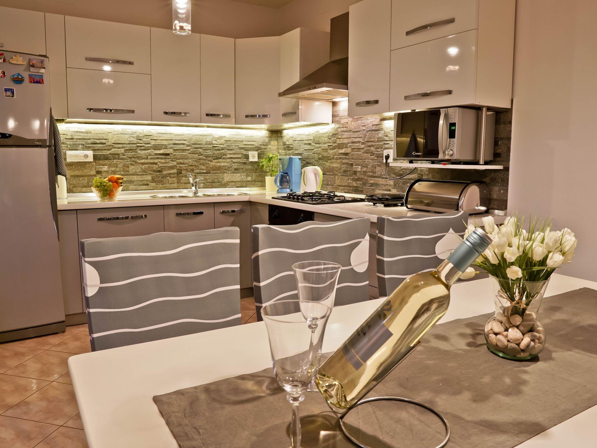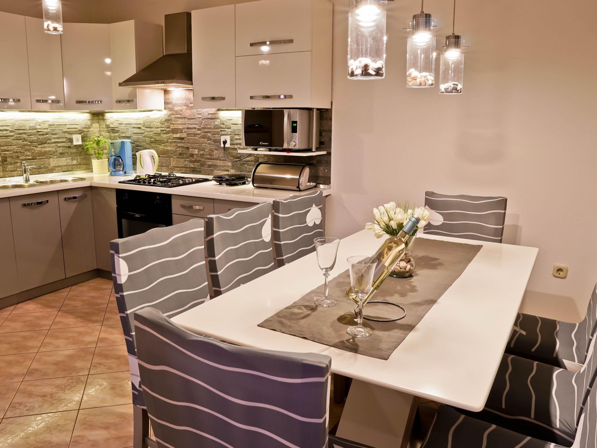 The interior of Apartment Suncica is thoughtfully designed to cater to your every need, ensuring a comfortable and hassle-free stay. Equipped with essential amenities such as air conditioning throughout, a dishwasher for your convenience and a washing machine for sole use within the property, everything is set up to make your stay as comfortable as possible. With three cozy bedrooms and two bathrooms equipped with showers, the apartment provides ample space and privacy for families or groups of friends. The kitchen is fully fitted with a gas cooker, electric kettle, filter coffee machine and a dishwasher, making meal preparation a breeze.