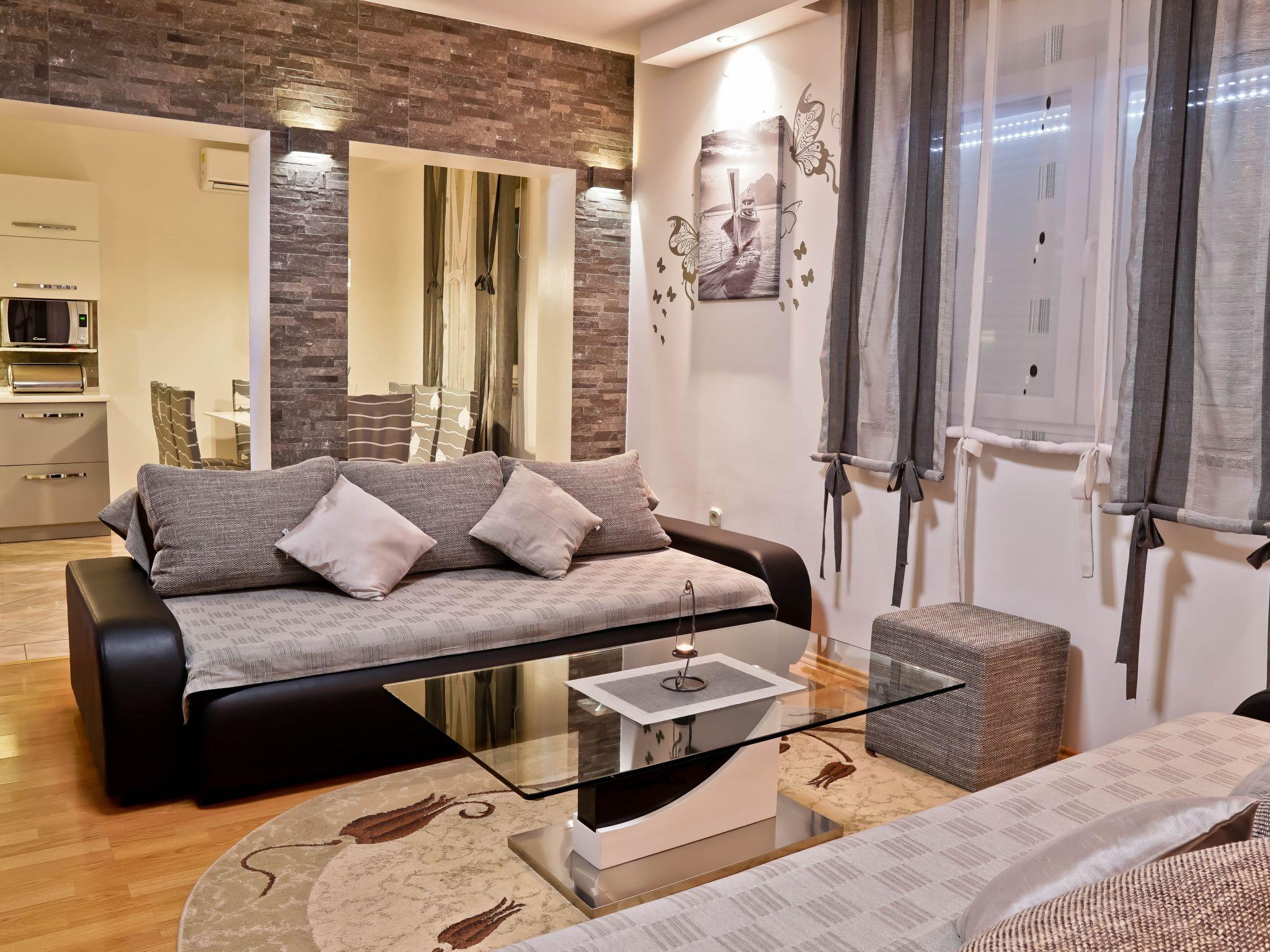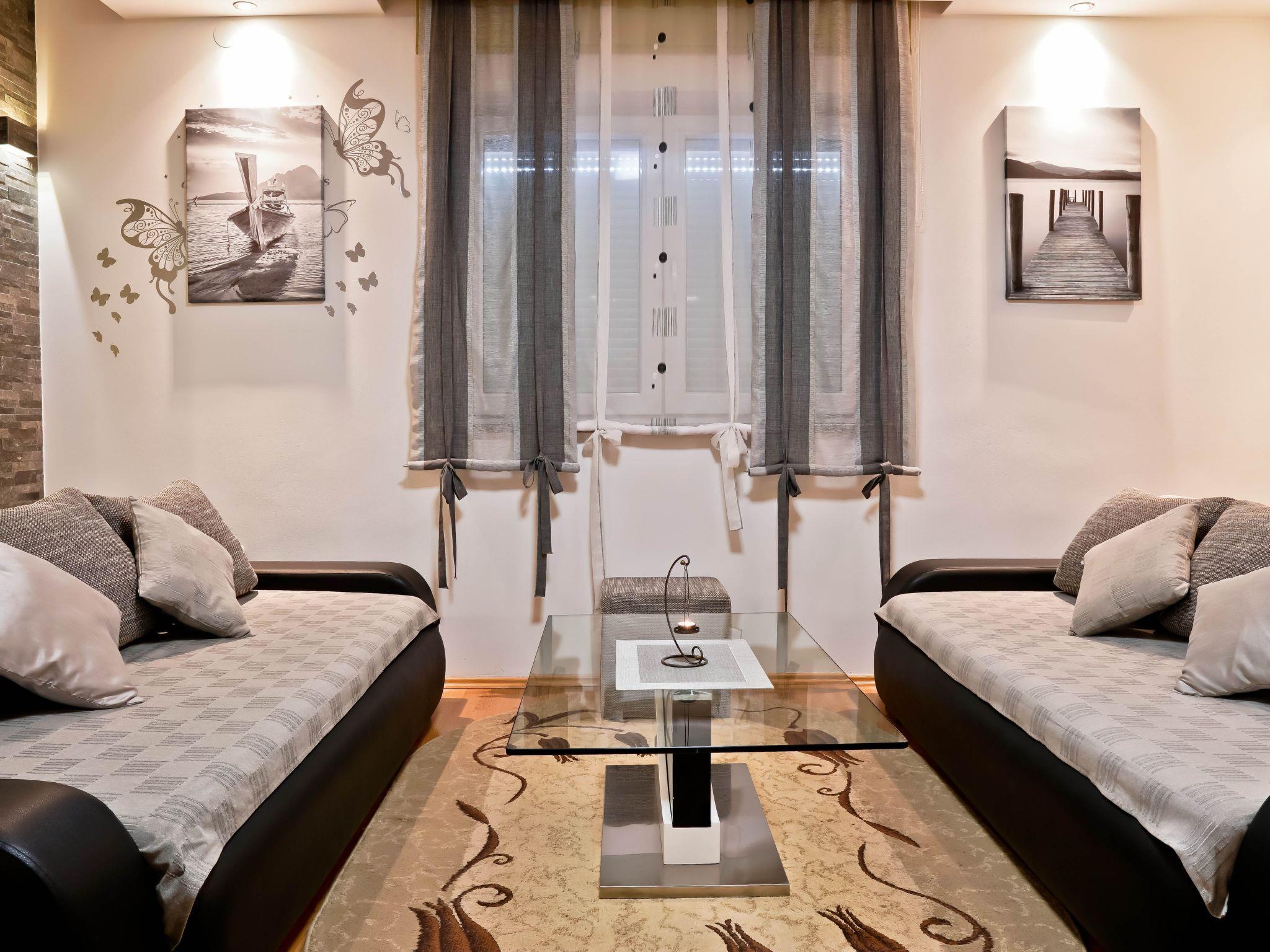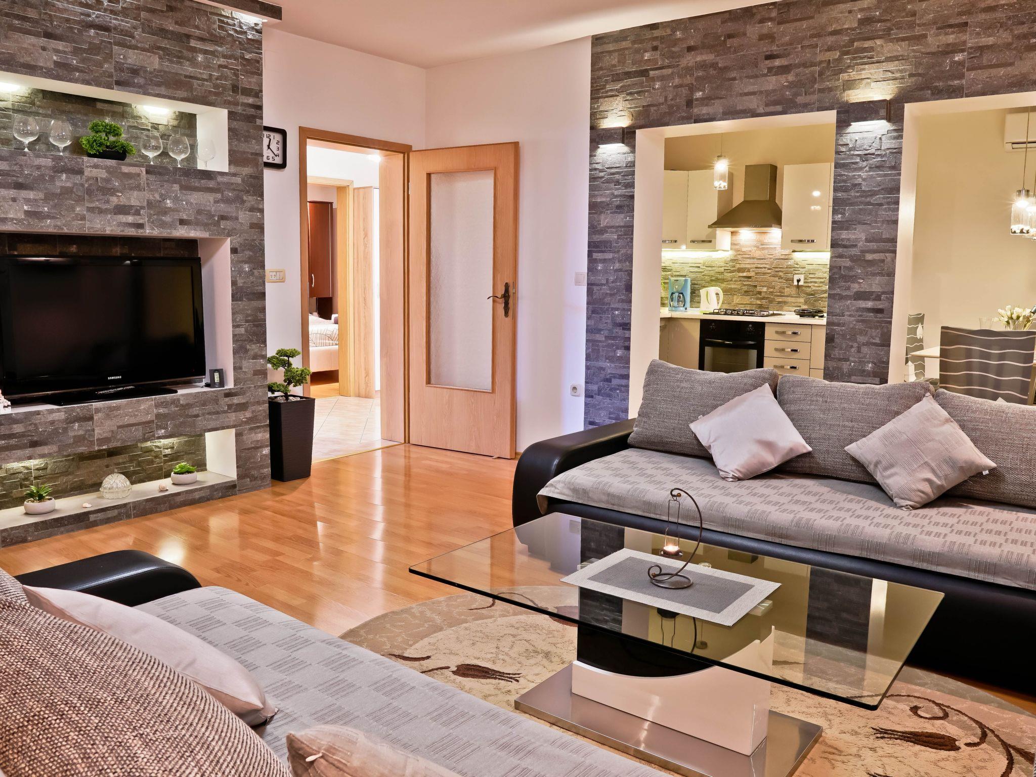 The interior of Apartment Suncica is thoughtfully designed to cater to your every need, ensuring a comfortable and hassle-free stay. Equipped with essential amenities such as air conditioning throughout, a dishwasher for your convenience and a washing machine for sole use within the property, everything is set up to make your stay as comfortable as possible. With three cozy bedrooms and two bathrooms equipped with showers, the apartment provides ample space and privacy for families or groups of friends. The kitchen is fully fitted with a gas cooker, electric kettle, filter coffee machine and a dishwasher, making meal preparation a breeze.