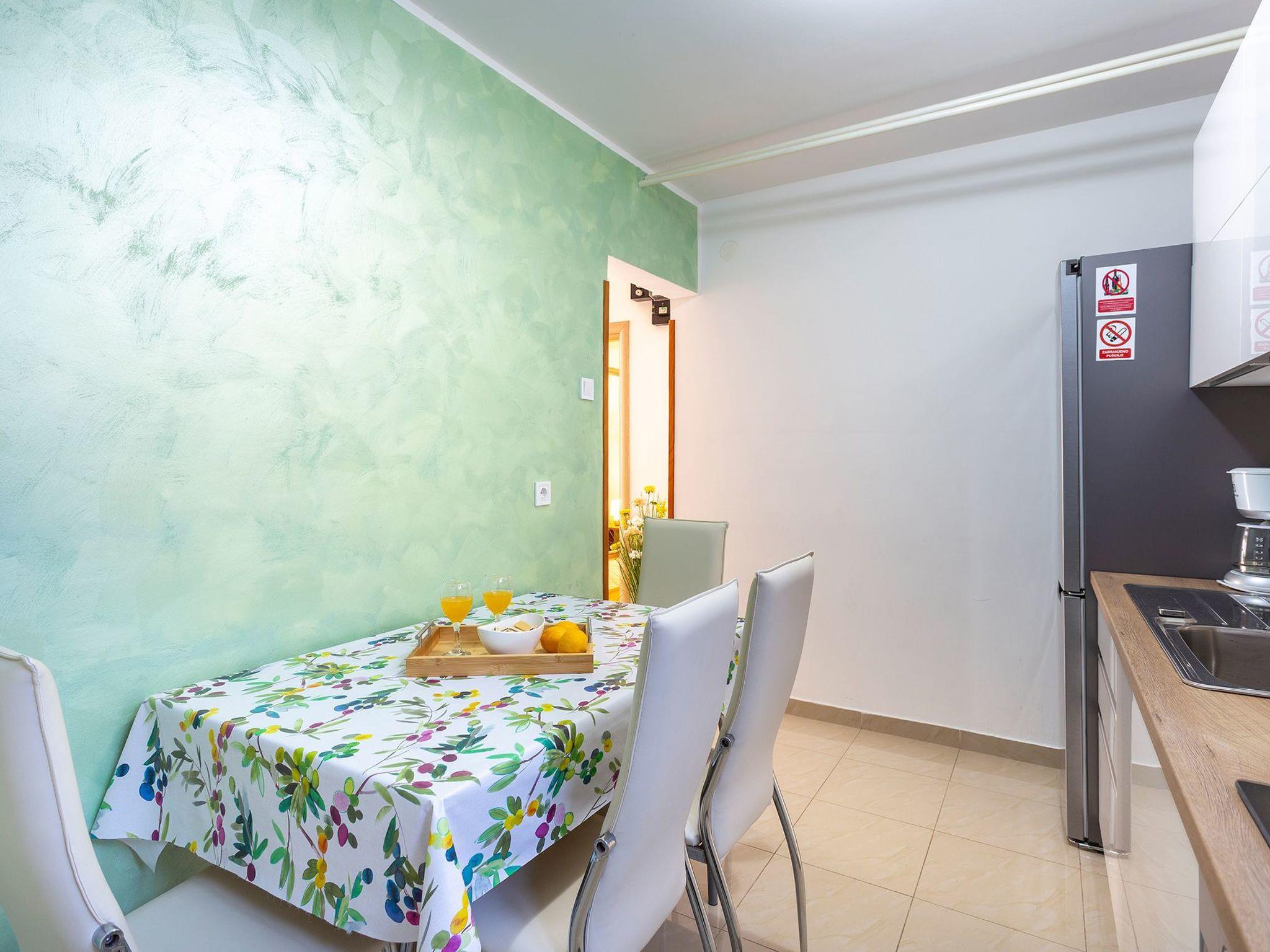 Indoors, Apartment Perka No.1 spans 51 square meters of elegantly appointed living space. It boasts two cozy double bedrooms, ensuring a comfortable stay for all guests. A modern bathroom equipped with a shower and washing machine adds to the convenience. The heart of the apartment is a spacious kitchen with a dining area, seamlessly flowing into a welcoming living room. From here, guests have direct access to the charming terrace, a perfect spot for morning coffee or evening relaxation. Key amenities like free WiFi, air conditioning, and on-street parking directly in front of the house enhance the comfort of your stay.