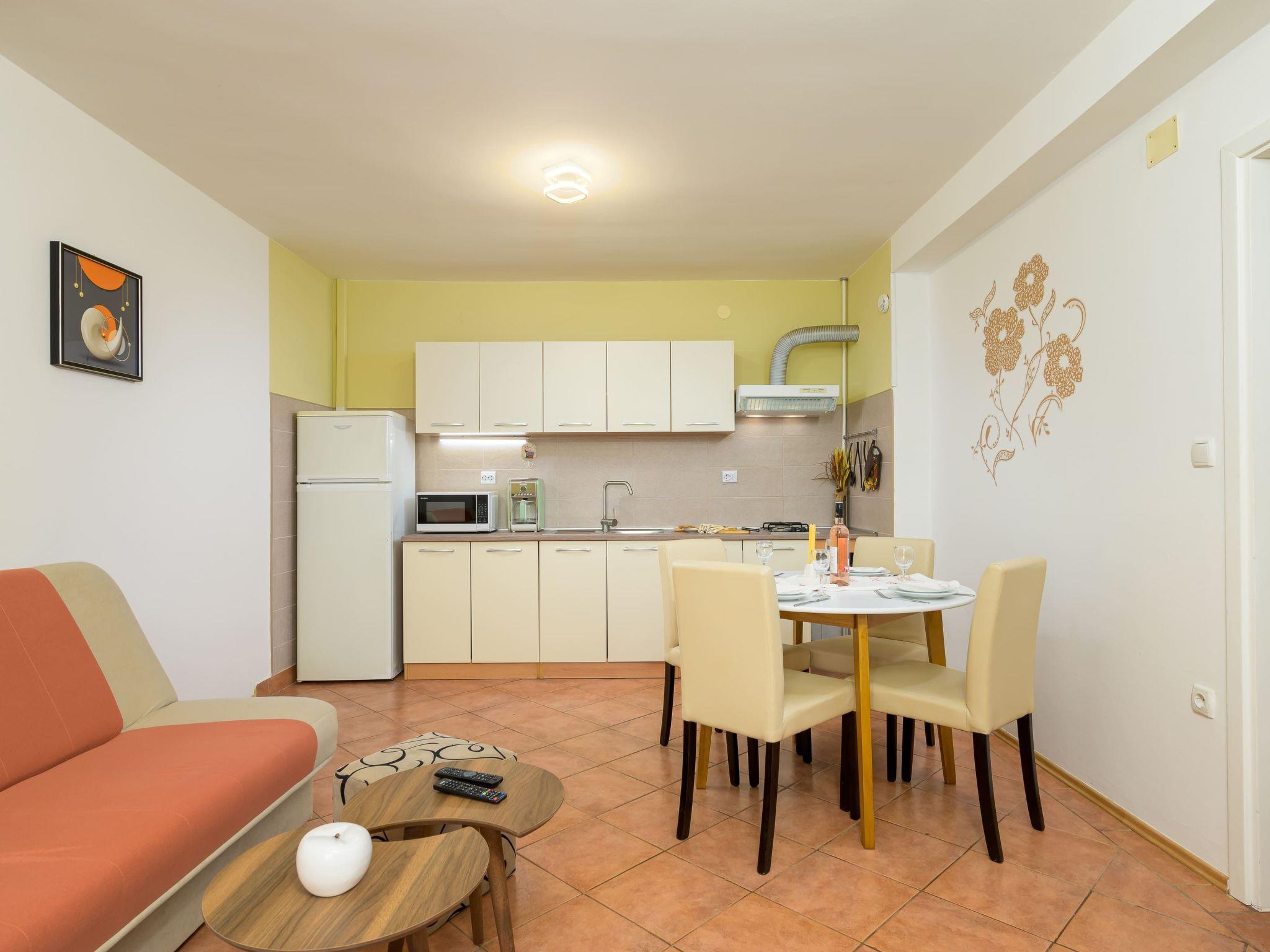 The exterior of Apartments Silvana is just as inviting, encompassing secured parking for 8-10 vehicles, both in front and at the rear of the property. Guests are encouraged to make the most of the lovely garden and barbecue facilities, providing a perfect setting for dining under the stars. With five apartments in total, each boasting a separate entrance, kitchen, bathroom, and balconies, the house is specially tailored for family vacations, promising exclusivity and privacy.