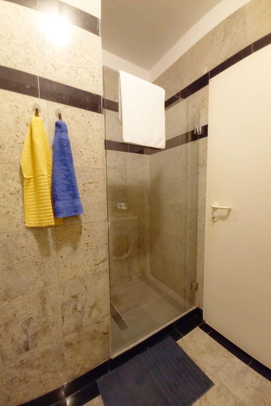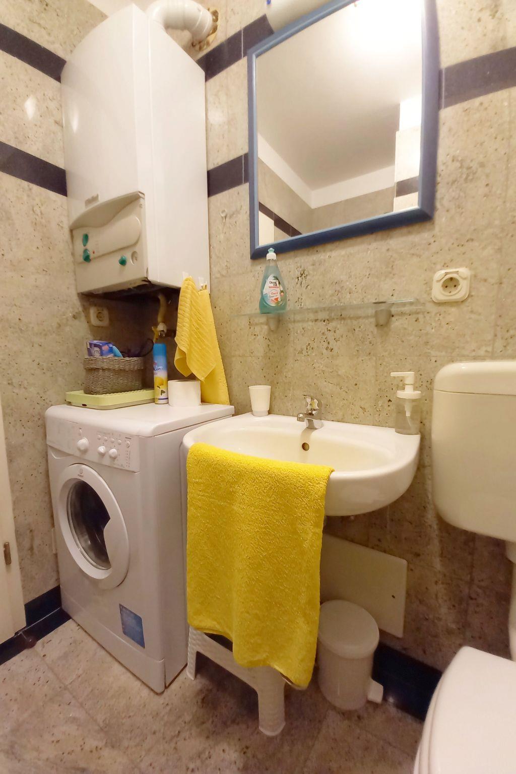 -bathroom (shower, wash basin, hair dryer, washing machine, WC)