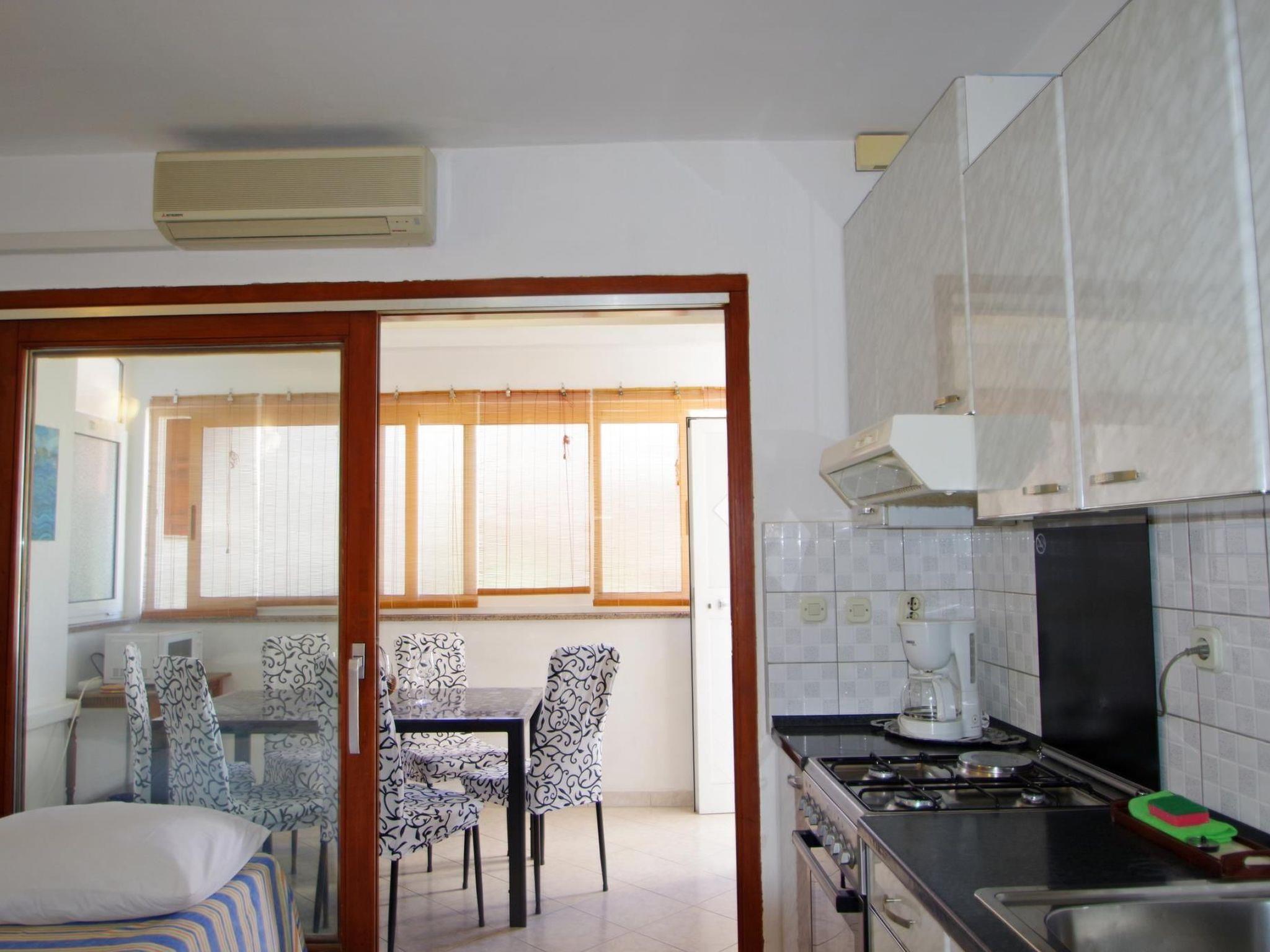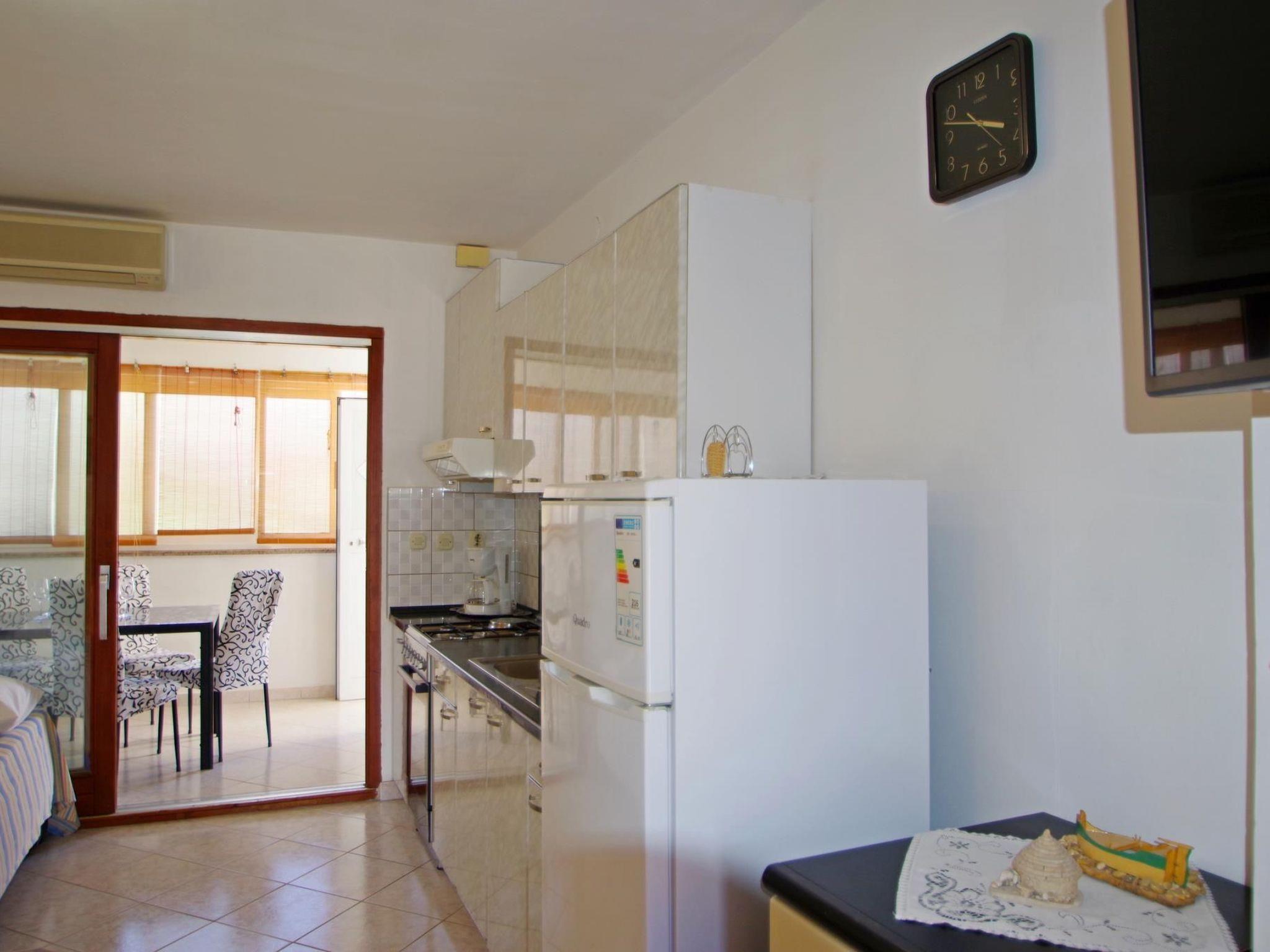 -kitchen (3 gas + 1 electrical cooking ring, oven, MW oven, coffee machine, air extractor, refrigerator with freezing section, toaster, dishes and utensils) and living room with 2x sitting/ sleeping couch (SAT TV)