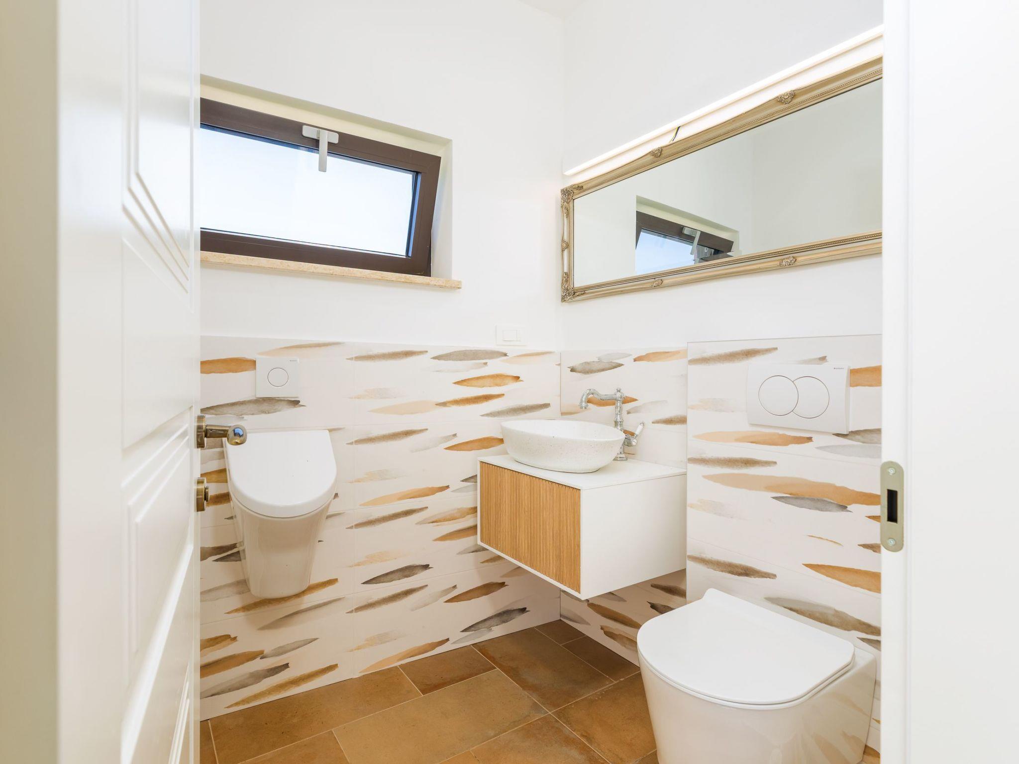 The interior of the villa looks like the pages of a luxury home decoration magazine – every piece of furniture has been carefully selected, every color thoughtfully coordinated, every detail imbued with style and warmth. Comfortable sofas, discreet lighting, elegant tones and a modernly decorated kitchen create the perfect ambiance for shared moments.