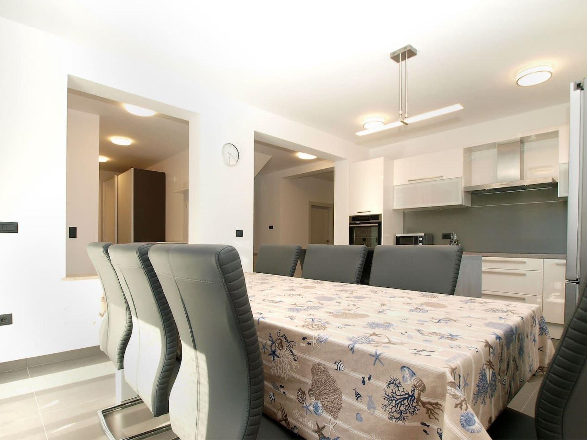 The villa is brand new, modern and well equipped. It is located in Pula, Croatia (Istrian Peninsula), 3 km from the city centre and the nearest beach. The villa offers seafront accommodation with a seasonal outdoor pool, garden, shared lounge and free WiFi. The property was built in 2019 and features air-conditioned accommodation with a terrace. The house has 8 balconies that allow you to enjoy the fresh air and nature. In front of the villa is a large 40 m² swimming pool with 14 sunbeds. The villa has 7 bedrooms, two living rooms, two kitchens and six bathrooms. There are 8 TVs with satellite channels. Wi-Fi is available everywhere. The kitchens are equipped with a dishwasher, microwave, washing machine, coffee machine, toaster and refrigerator. There are billiards, table football, table tennis and a children's playground.