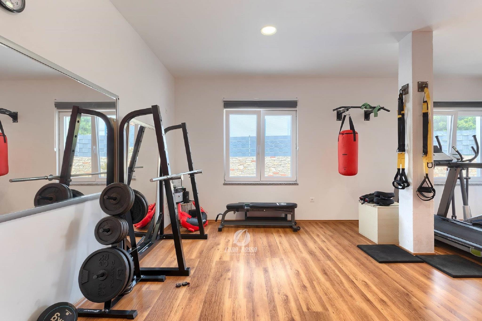 Dette komfortable feriehus med privat swimmingpool har to lejligheder lejet sammen, hvilket giver rigelig plads med to stuer, to køkkener, fire smukt møblerede soveværelser og to rummelige badeværelser, hvilket gør det ideelt til en stor familie eller gruppe af venner. Nyd faciliteter, herunder et indendørs fitnesscenter til din træningsrutine, en forfriskende swimmingpool med komfortable liggestole til afslapning og et grillområde til dejlige udendørs middage. Beliggende i den rolige landsby Šikici, tilbyder det et fredeligt tilflugtssted, mens det er bekvemt tæt på den pulserende by Pula, så du kan udforske dens rige historie, fantastiske arkitektur og smukke strande. Gå ikke glip af dette enestående feriehus og sørg for en perfekt ferie fyldt med afslapning, sjov og kvalitetstid.
