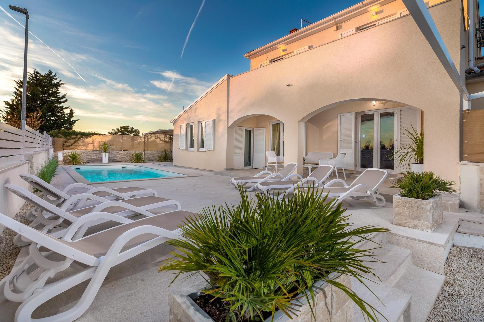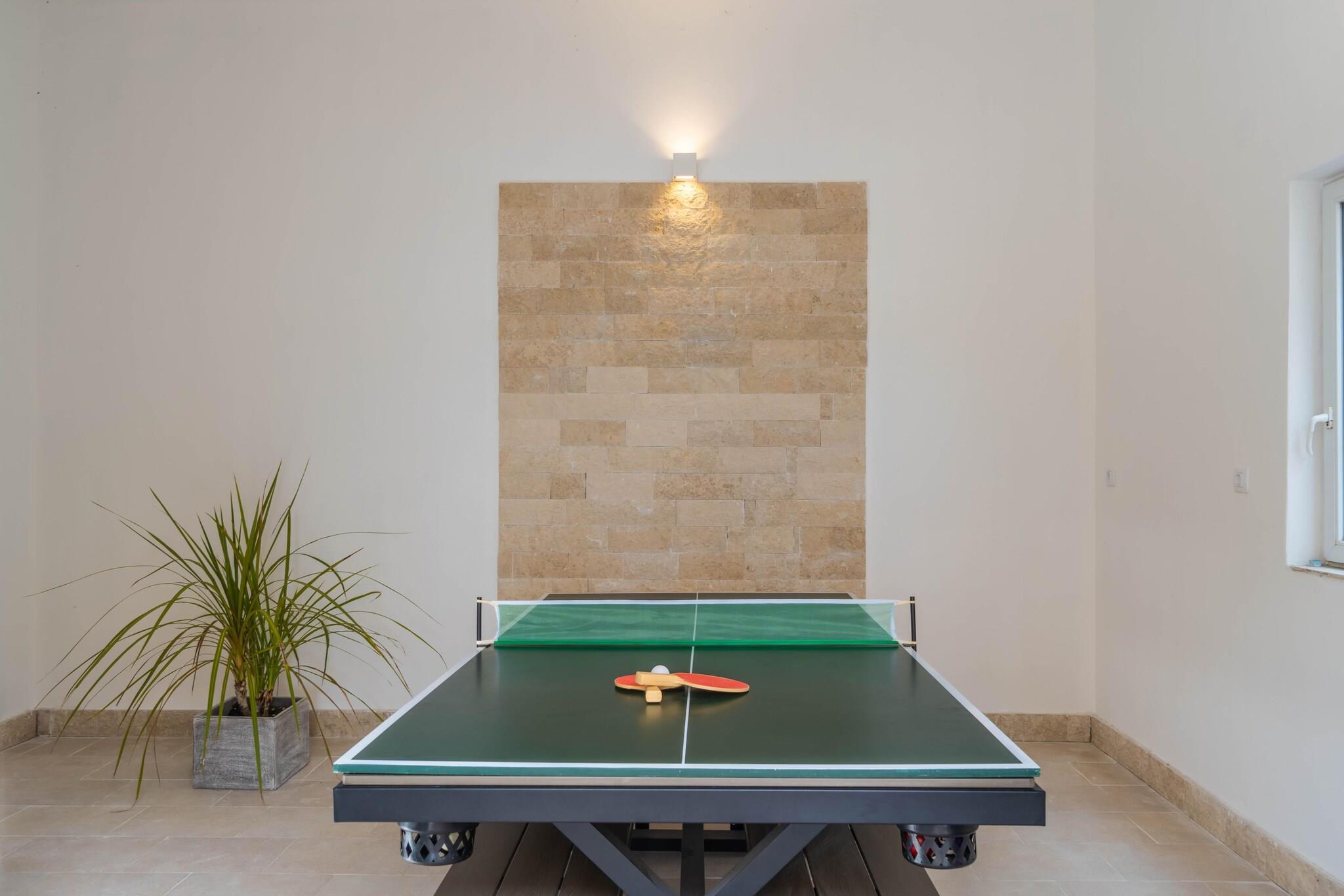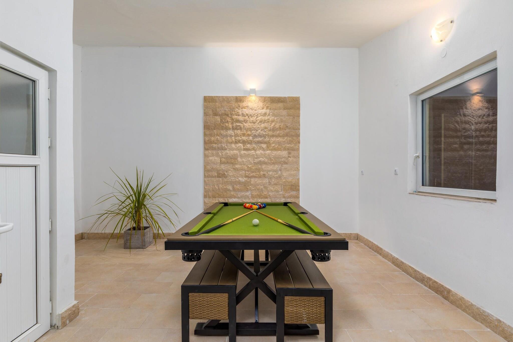 Stueetage: (Stue(enkeltsovesofa, Fjernsyn(fladskærm, parabol), pejs, sofahjørne), spisestue(spisebord), Køkken(elkedel, brødrister, komfur, kaffemaskine, ovn, mikrobølgeovn, opvaskemaskine , køle-fryseskab, , Wine glasses), soveværelse(dobbeltseng(160 x 200 cm)), soveværelse(enkeltseng(100 x 200 cm), enkeltseng(100 x 200 cm)), badeværelse(bruser, håndvask, toilet), terrasse(privat)) På 1. etage: (tekøkken, soveværelse(dobbeltseng(160 x 200 cm), klimaanlæg), soveværelse(dobbeltseng(160 x 200 cm), klimaanlæg), soveværelse(dobbeltseng(160 x 200 cm), klimaanlæg), badeværelse(badekar med bruser, håndvask, toilet, bidet), balkon) Sidebygning: (badeværelse(bruser, håndvask, toilet), opholdsrum(bordtennisbord, biljard)) bruser(udendørs), vaskemaskine, balkon, klimaanlæg, terrasse(privat), havemøbler, solstole, grill, parkering, liggestole, Parasol, swimmingpool(privat), strygebræt, strygejern, føntørrer, loungemøbler,