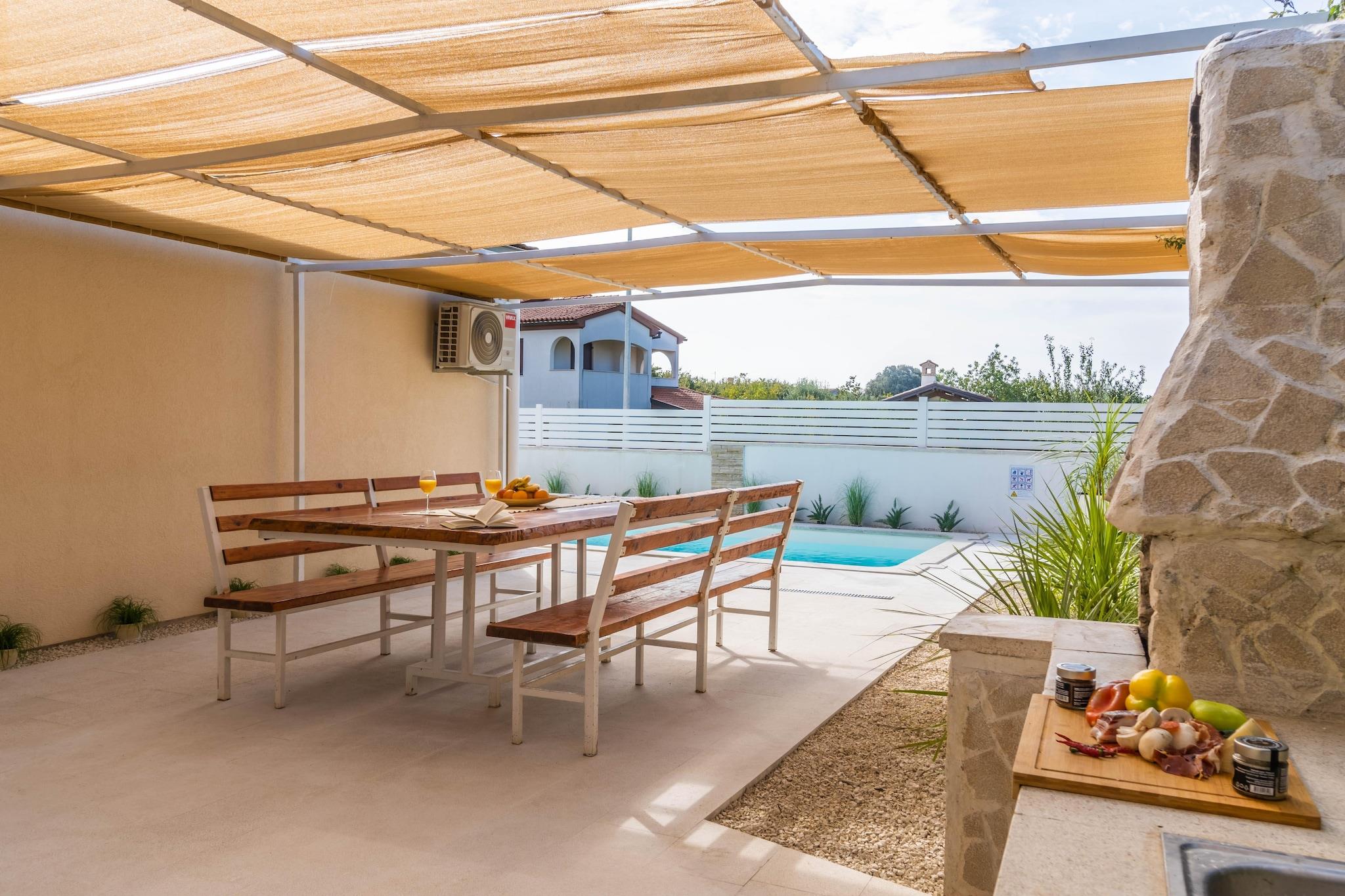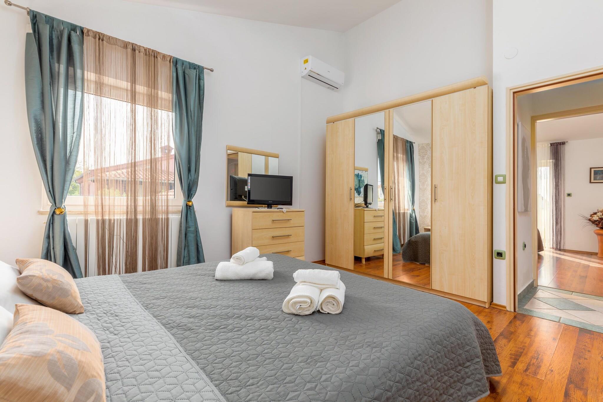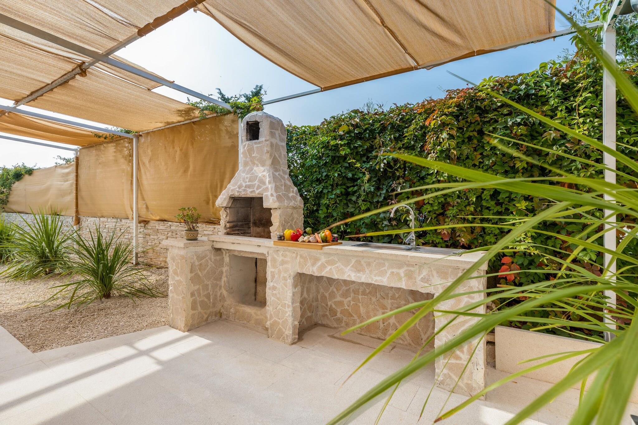 Stueetage: (Stue(enkeltsovesofa, Fjernsyn(fladskærm, parabol), pejs, sofahjørne), spisestue(spisebord), Køkken(elkedel, brødrister, komfur, kaffemaskine, ovn, mikrobølgeovn, opvaskemaskine , køle-fryseskab, , Wine glasses), soveværelse(dobbeltseng(160 x 200 cm)), soveværelse(enkeltseng(100 x 200 cm), enkeltseng(100 x 200 cm)), badeværelse(bruser, håndvask, toilet), terrasse(privat)) På 1. etage: (tekøkken, soveværelse(dobbeltseng(160 x 200 cm), klimaanlæg), soveværelse(dobbeltseng(160 x 200 cm), klimaanlæg), soveværelse(dobbeltseng(160 x 200 cm), klimaanlæg), badeværelse(badekar med bruser, håndvask, toilet, bidet), balkon) Sidebygning: (badeværelse(bruser, håndvask, toilet), opholdsrum(bordtennisbord, biljard)) bruser(udendørs), vaskemaskine, balkon, klimaanlæg, terrasse(privat), havemøbler, solstole, grill, parkering, liggestole, Parasol, swimmingpool(privat), strygebræt, strygejern, føntørrer, loungemøbler,