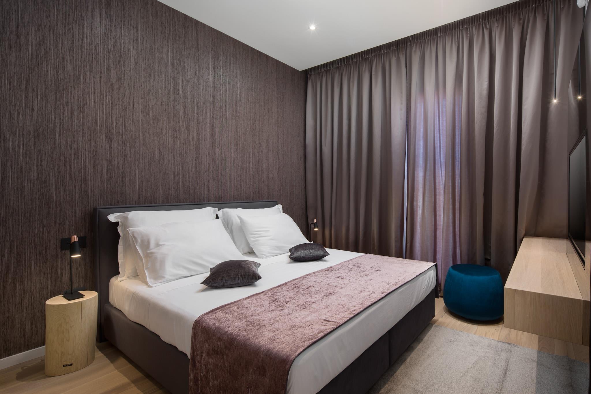 Denne smukke villa ligger i byen Vintijan, ikke langt fra den historiske by Pula! I den lukkede have finder du din opvarmede swimmingpool med boblebad, omgivet af en solterrasse med liggestole og en velholdt græsplæne. Med undtagelse af solbadning og svømning kan du også træne i fitnessen, gå i saunaen og spille bordtennis, billard eller spil på PS4. Villaen består af tre etager og har smukke møbler. Hvert soveværelse har eget badeværelse. Den stilfulde overdækkede terrasse er det perfekte sted for gode øjeblikke sammen. Fra terrassen på tredje sal du have en smuk havudsigt, og du kan nyde jacuzzien! Vinentusiaster kan kigge i villaens vinkælder. Stueetagen består af en stue, et åbent køkken, et soveværelse med en-suite badeværelse, et separat toilet og et vaskerum. På første sal er der to soveværelser med eget badeværelse, et legerum, en sauna og en overdækket altan med opholdsområde. På anden sal finder du et soveværelse med en-suite badeværelse, et separat toilet og en terrasse med jacuzzi og liggestole.