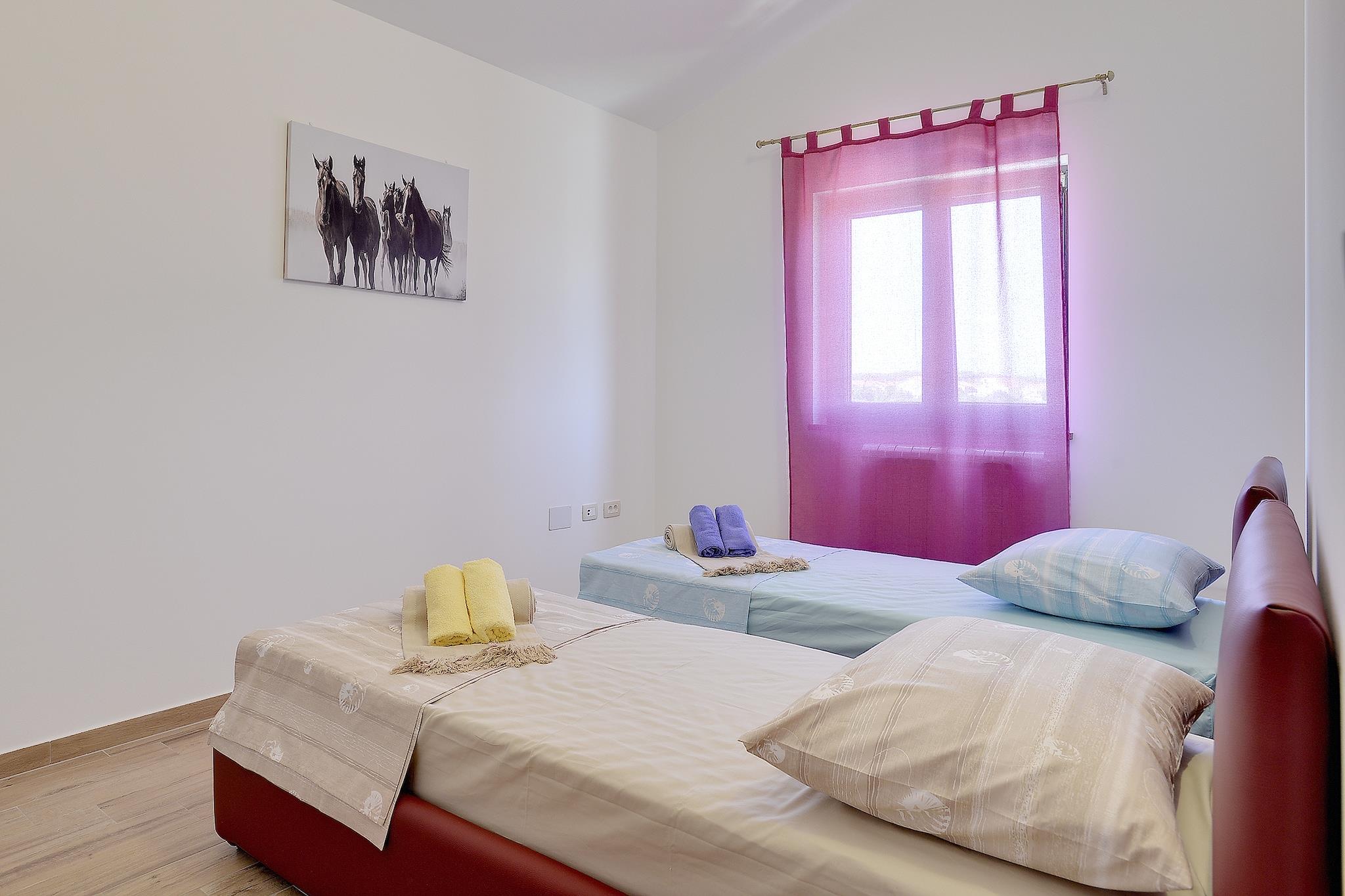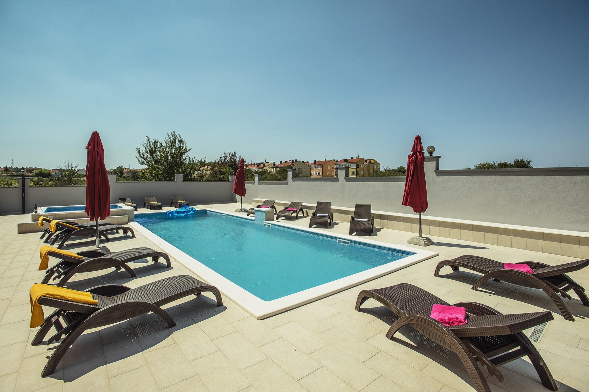 Perfekt til familier eller venner, der vil fejre ferie sammen! Denne fritliggende villa med privat pool består af to komfortable lejligheder og ligger i et roligt boligområde kun 5 minutters kørsel fra centrum af Pula. Den nærmeste strand ligger 4 km væk, et supermarked og en restaurant ligger i gåafstand fra villaen. I den lukkede have ligger swimmingpoolen med boblebad; liggestole og parasoller er tilgængelige samt en grill, bordtennis og bordfodbold! I stueetagen finder du en stue med opholdsområde, et åbent køkken med spisebord, fire soveværelser, to badeværelser, separat toilet og en overdækket terrasse med havemøbler. På første sal finder du en stue med opholdsområde, et åbent køkken med spisebord, tre soveværelser, et badeværelse og en overdækket balkon med havemøbler.