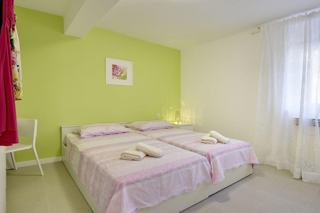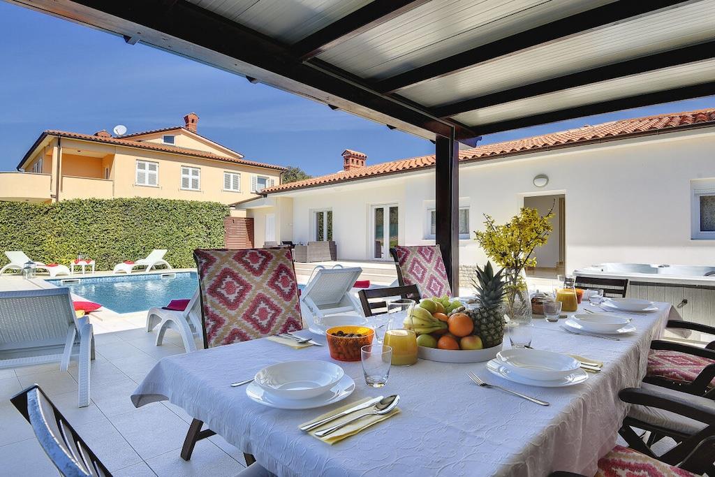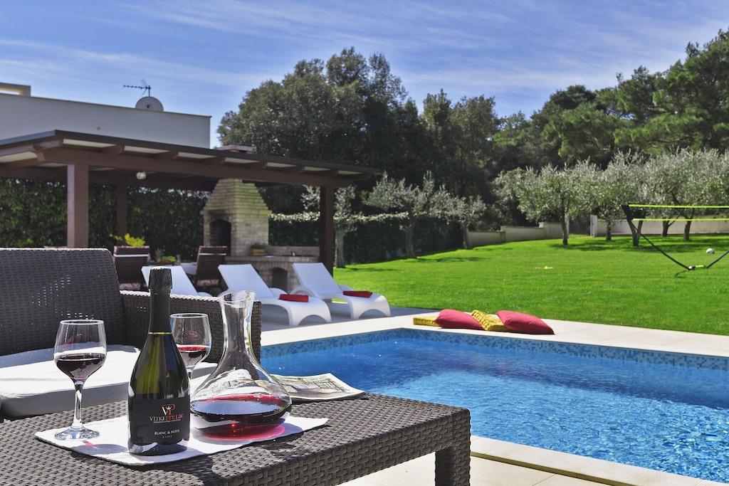Villa Lorin ligger i en rolig del af Štinjan nær skoven, hvor I kan nyde dejlige sommeraftener. Villaen er også velegnet til ophold i lavsæsonen, når dagene er køligere, og poolen kan opvarmes. Villaen har fire soveværelser, hver med badeværelse. Et soveværelse ligger i stueetagen med separat indgang, mens de andre soveværelser ligger på første sal. Der er et lille fitnessrum i stueetagen, og der er tre tennisbaner 50 meter fra huset. På den vestlige side af huset er der en skov, der er velegnet til morgenløbetur, og der er også et udendørs fitnesscenter.