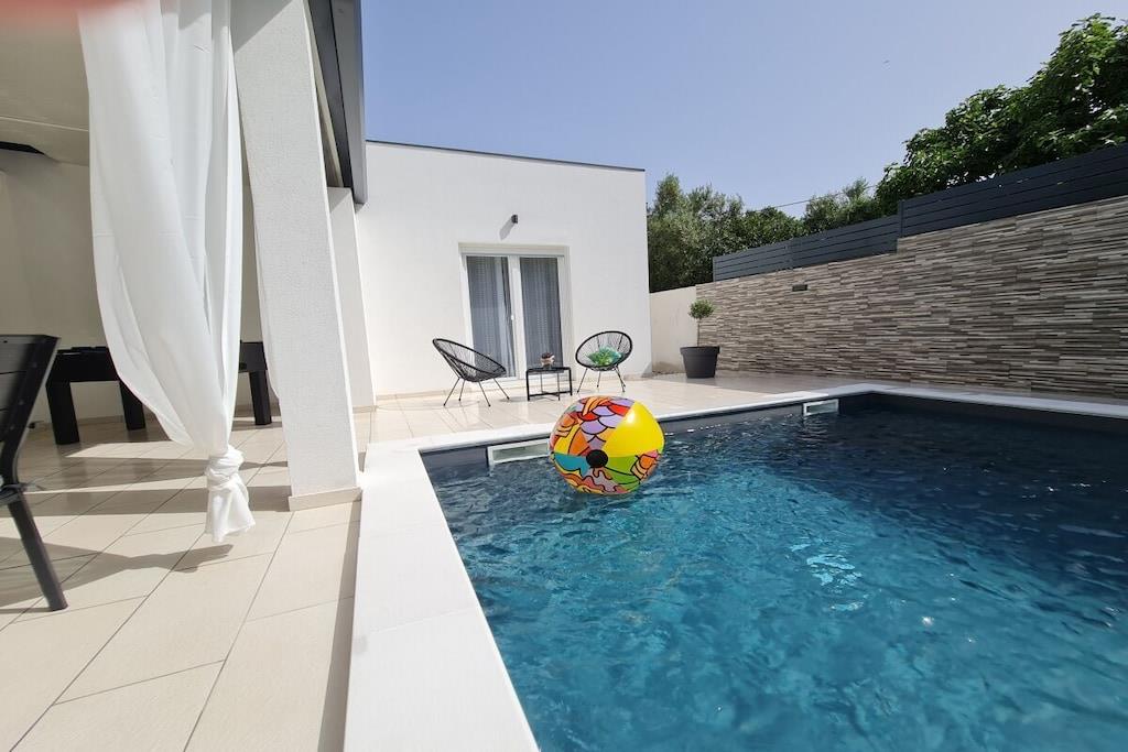 Villa Insieme II har to moderne soveværelser med kingsize-senge, begge med eget badeværelse. Stuen og køkkenet åbner ud til en terrasse med pool og frodig have. Der er tre private parkeringspladser foran huset. Afstanden til Pula centrum er 4,5 km, og stranden er 1,8 km.