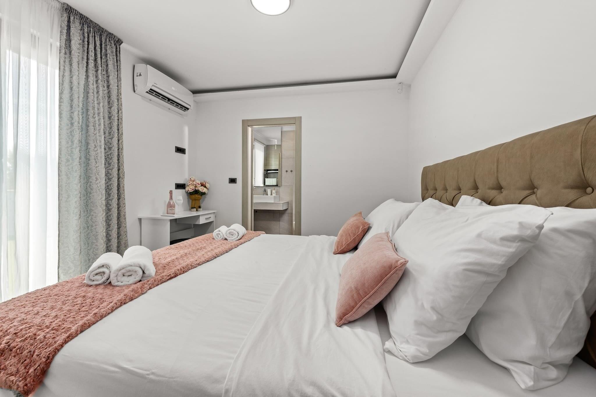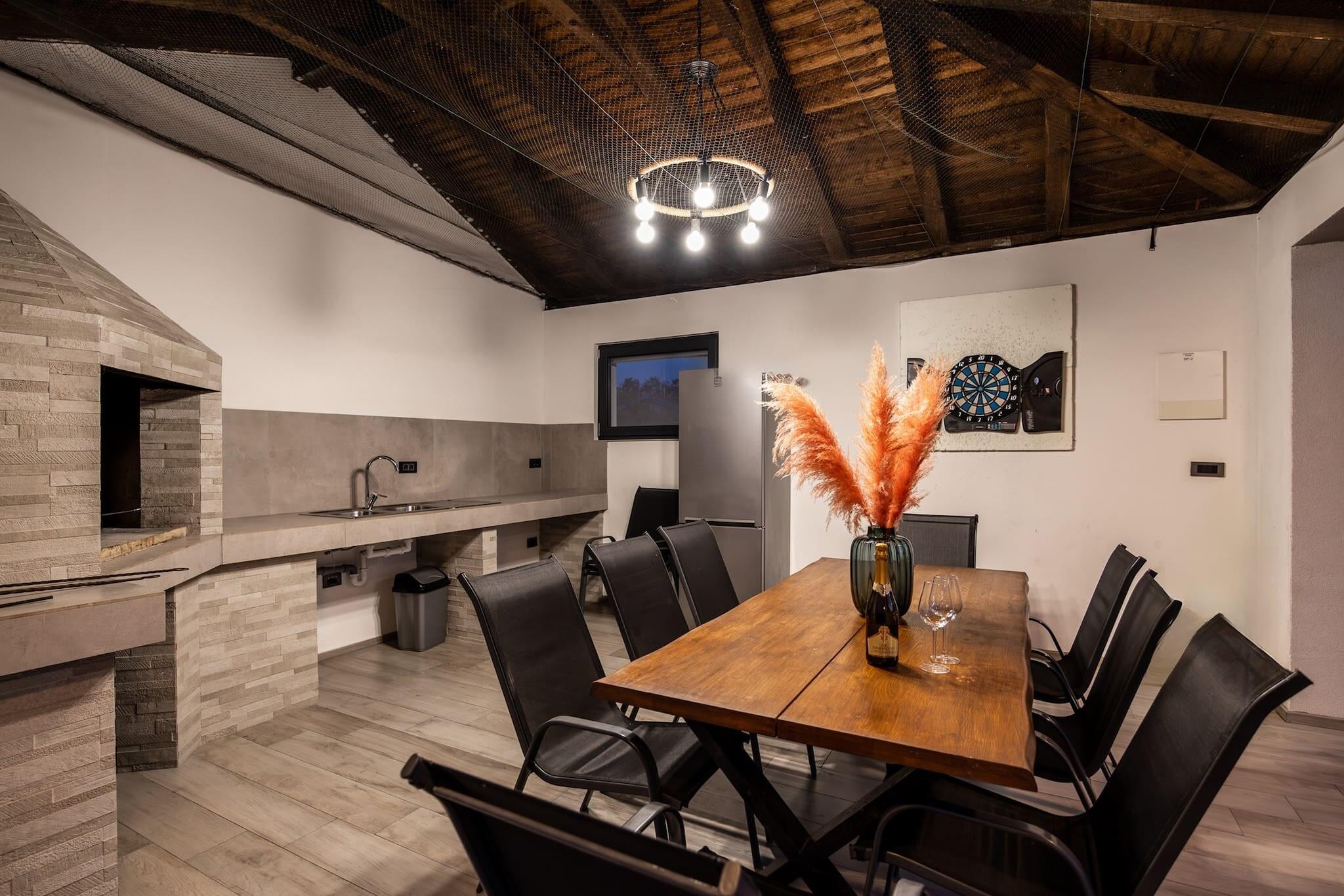 Beliggende i et fredeligt område af Pula tilbyder denne charmerende villa en fredfyldt flugt, mens den er tæt på byens attraktioner. Gæsterne vil nyde adgang til en privat oplyst swimmingpool, en solterrasse med liggestole, en udendørs spiseplads og grillfaciliteter. Poolen er i drift fra 15. maj til 15. oktober, og automatiseret belysning forbedrer udendørsoplevelsen ved solnedgang og maksimerer afslapning. Ejendommen er familievenlig og kan komfortabelt rumme op til otte gæster i fire soveværelser med dobbeltsenge, med mulighed for at yderligere to børn kan sove på en sofa. En barneseng er også tilgængelig uden ekstra beregning for spædbørn. Underholdning er rigeligt med faciliteter såsom dart, bordfodbold, badmintonudstyr, en PS4-konsol, gynger, en rutsjebane og et lille legehus for børn, hvilket sikrer, at gæster i alle aldre har masser at lave. Gratis privat parkering er tilgængelig på stedet for din bekvemmelighed, hvilket gør det nemt at udforske de smukke omkringliggende områder. Pula er kendt for sin gamle romerske arv, især det imponerende amfiteater og andre historiske steder som Sergius' triumfbue og Augustus-templet. Byen byder også på fantastiske strande og uspoleret natur, med Hidrobaza stenstrand i nærheden til svømning og afslapning. Campo Grill, kendt for sine lækre kødretter, ligger kun 1 kilometer væk. Pulas pulserende centrum, cirka 4 kilometer væk, byder på en række museer, gallerier, barer og restauranter. Med Pula Lufthavn kun 8 km væk og et busstoppested 500 meter fra villaen er det nemt at komme til regionens attraktioner.