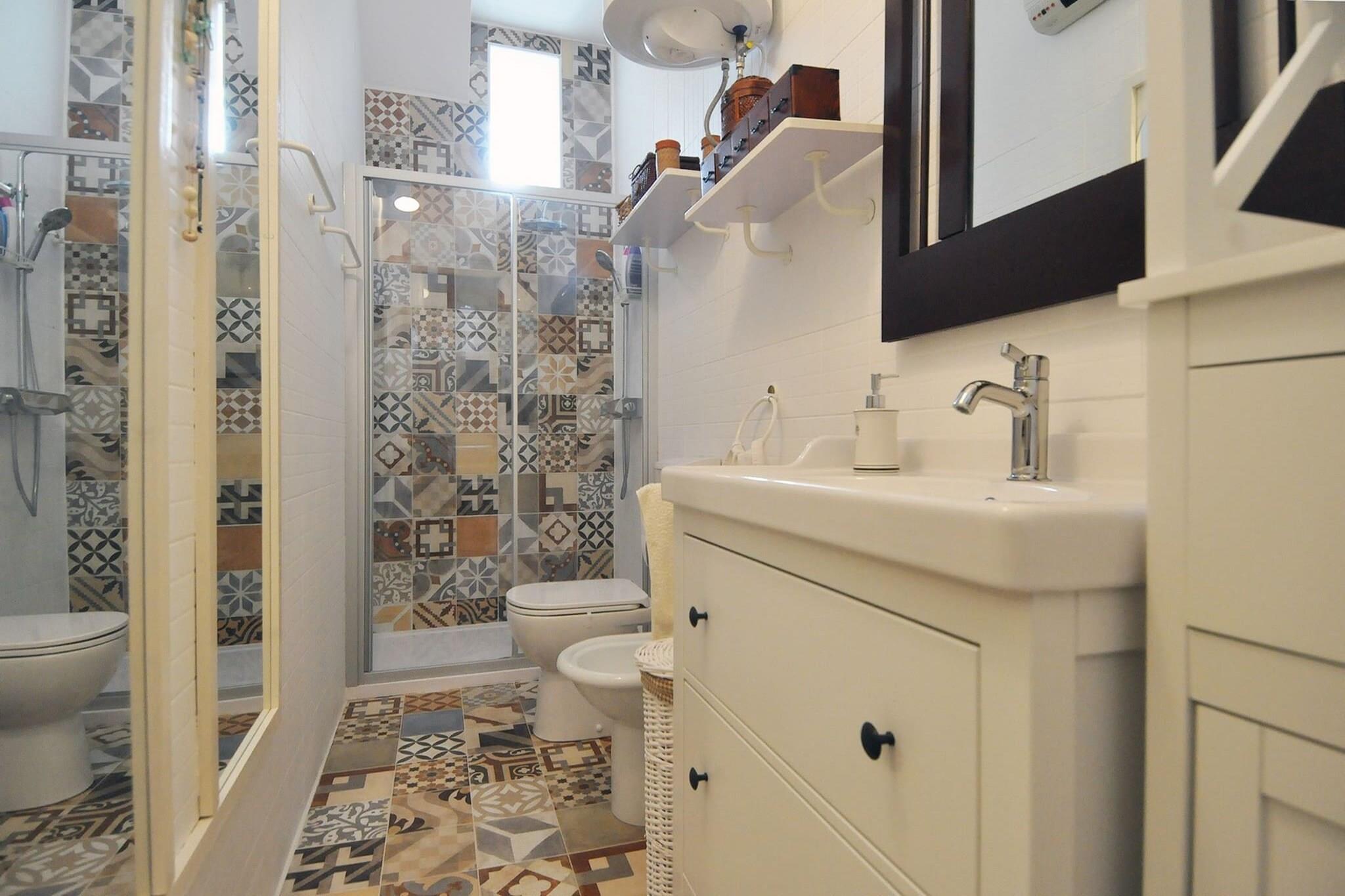 På 1. etage: (Køkken(kogeplade, elkedel, brødrister, kaffemaskine, ovn, mikrobølgeovn, opvaskemaskine , køleskab, fryser, ), stue / spisestue(dobbeltsovesofa, Fjernsyn, spisebord, sofahjørne), soveværelse(dobbeltseng), soveværelse(enkeltseng, enkeltseng), badeværelse(bruser, toilet, bidet), badeværelse(bruser, toilet, bidet), Internetadgang) vaskemaskine, balkon, patio, klimaanlæg, strygebræt, strygejern, føntørrer, ,